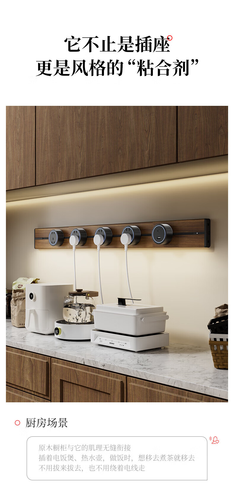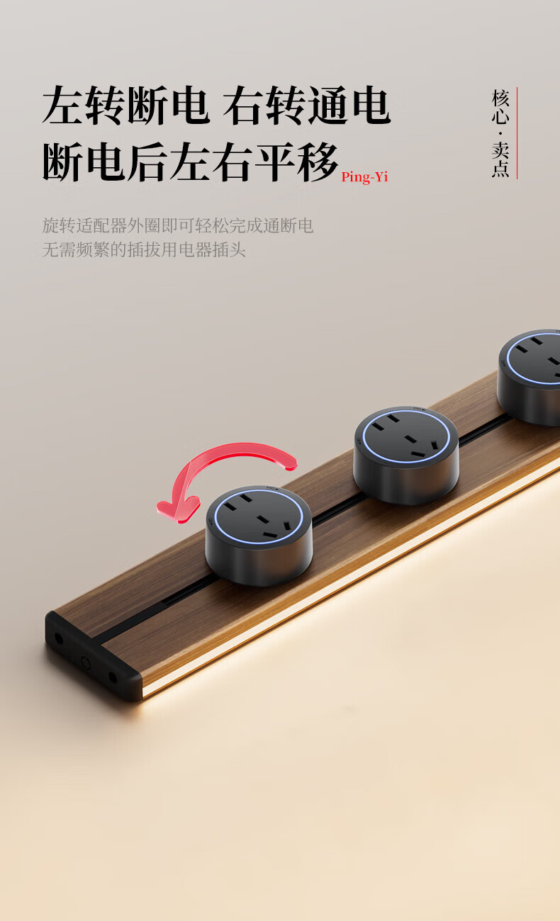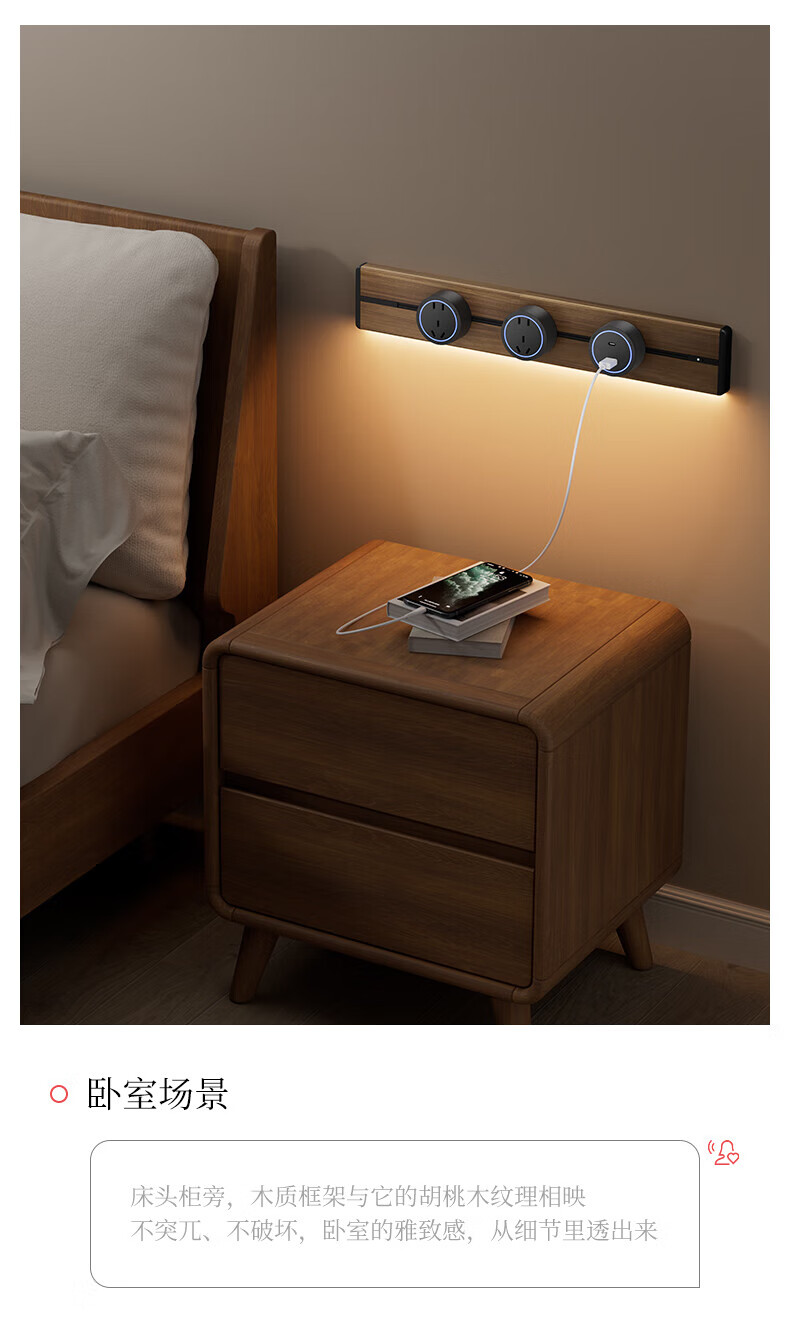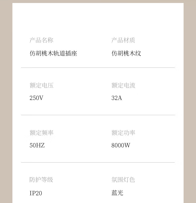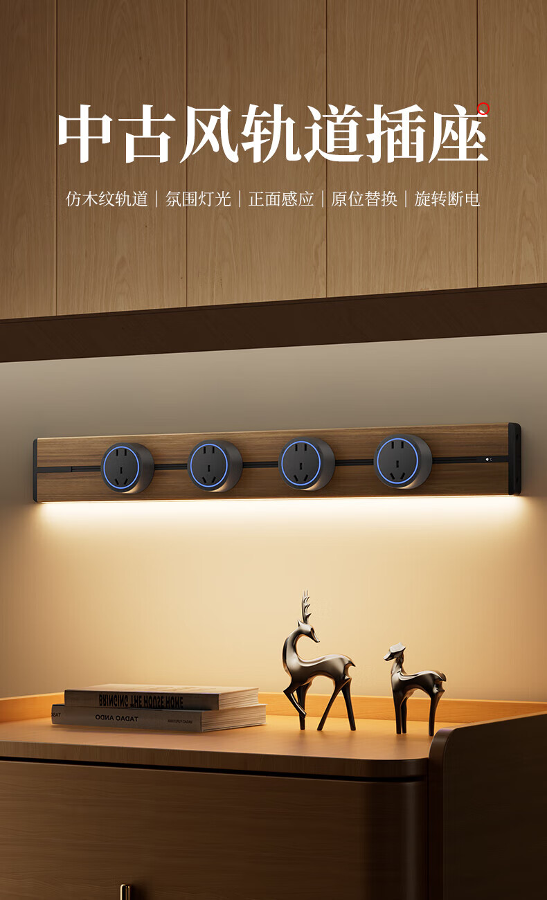 国际电工木纹复古轨道插座带感应灯中古风可移动电力滑轨家用厨房墙壁电源 【木纹带感应灯款】50cm+3个大五孔