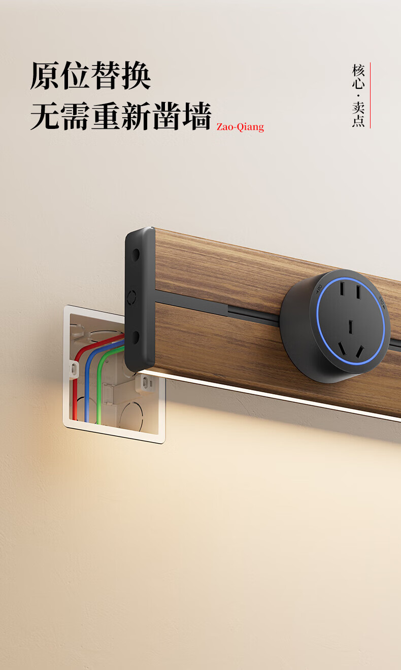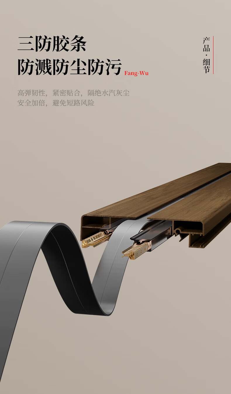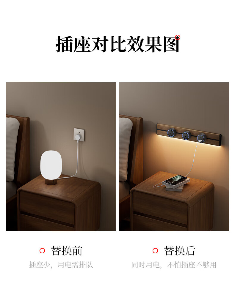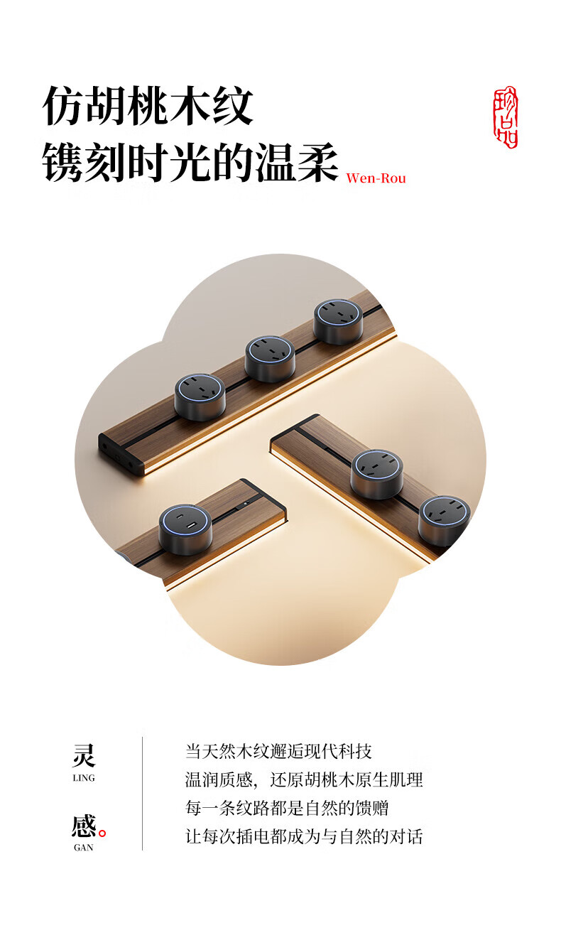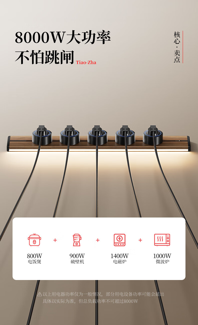 国际电工木纹复古轨道插座带感应灯中古风可移动电力滑轨家用厨房墙壁电源 【木纹带感应灯款】50cm+3个大五孔