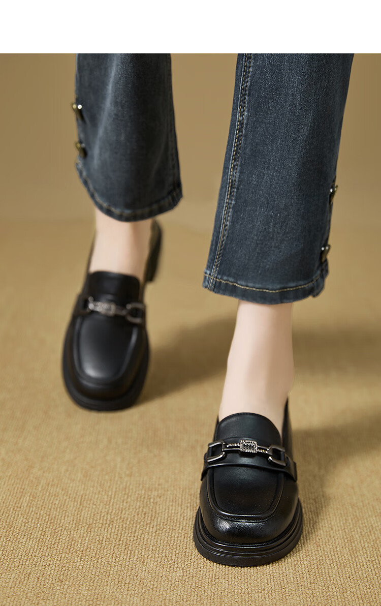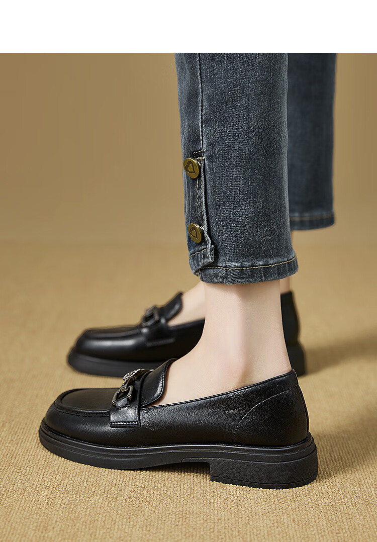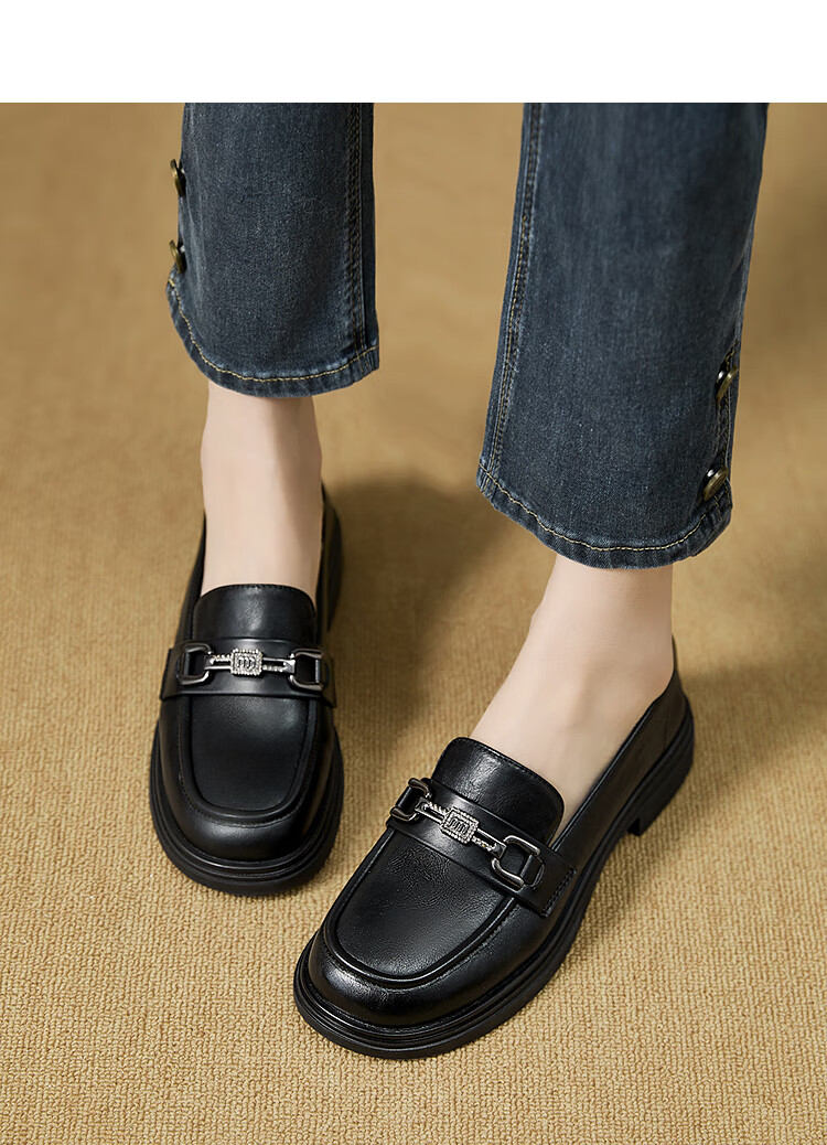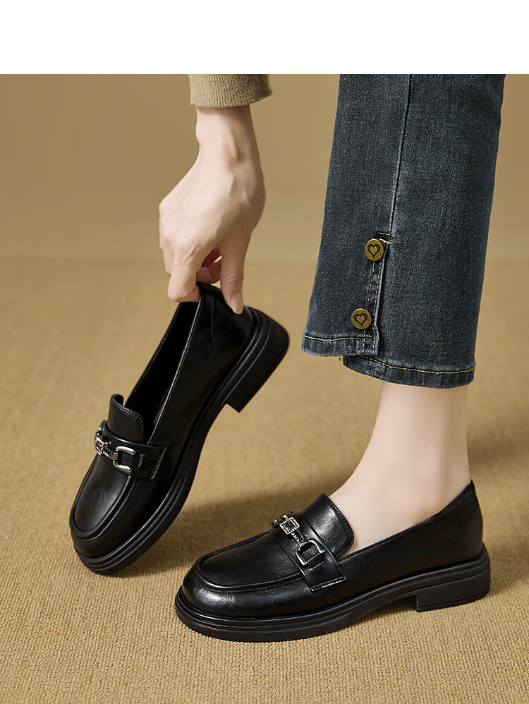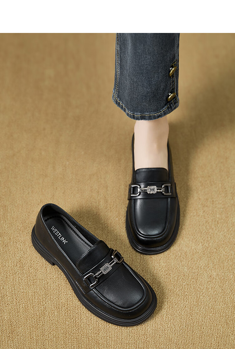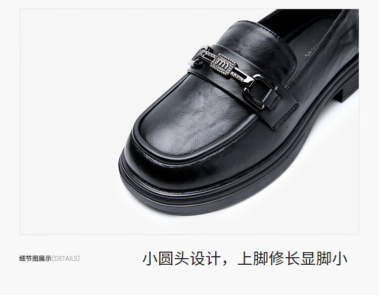西遇乐福鞋女2025新款秋季金扣单鞋不累脚通勤低跟小皮鞋 黑色 (预售10月31日) 39 (245)