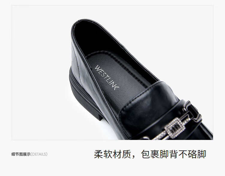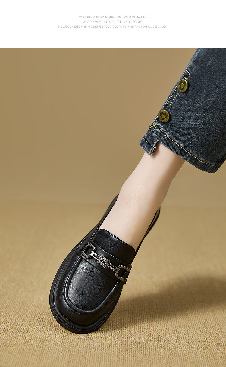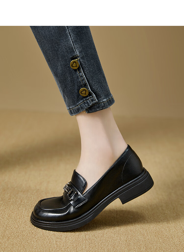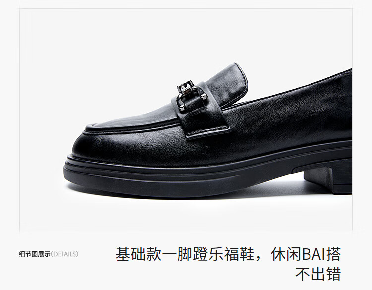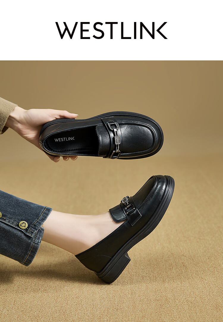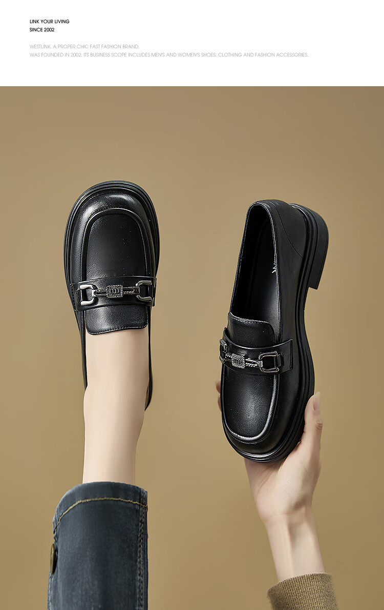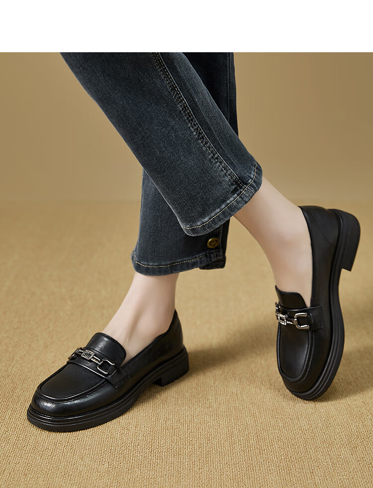 西遇乐福鞋女2025新款秋季金扣单鞋不累脚通勤低跟小皮鞋 黑色 (预售10月31日) 39 (245)