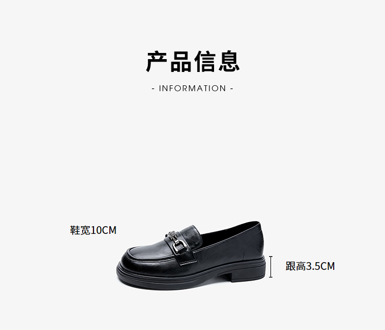 星期六学院风高跟乐福鞋女2025秋季新款大圆头粗跟皮鞋SSD3111493 黑色 34