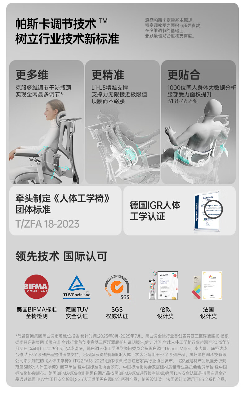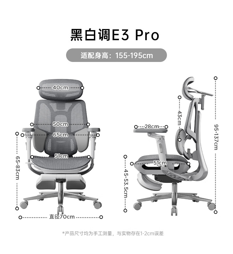 黑白调E3Pro人体工学椅电脑椅子办公电竞椅人工力学座椅【罗永浩推荐】