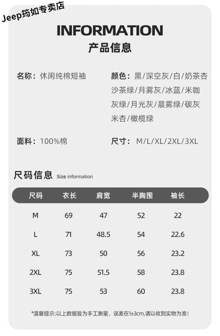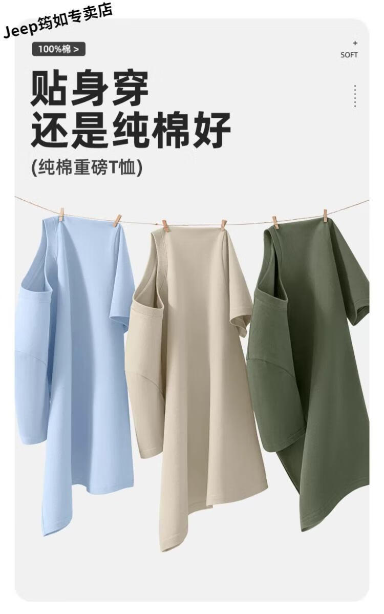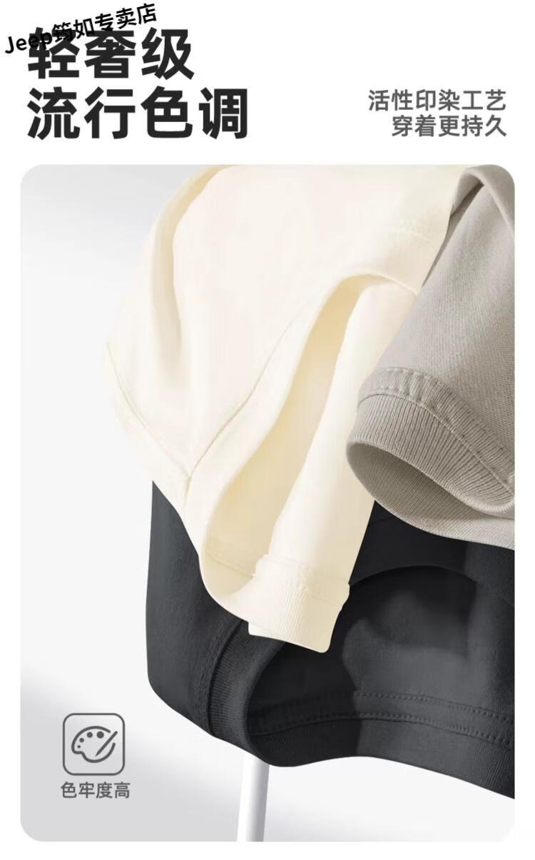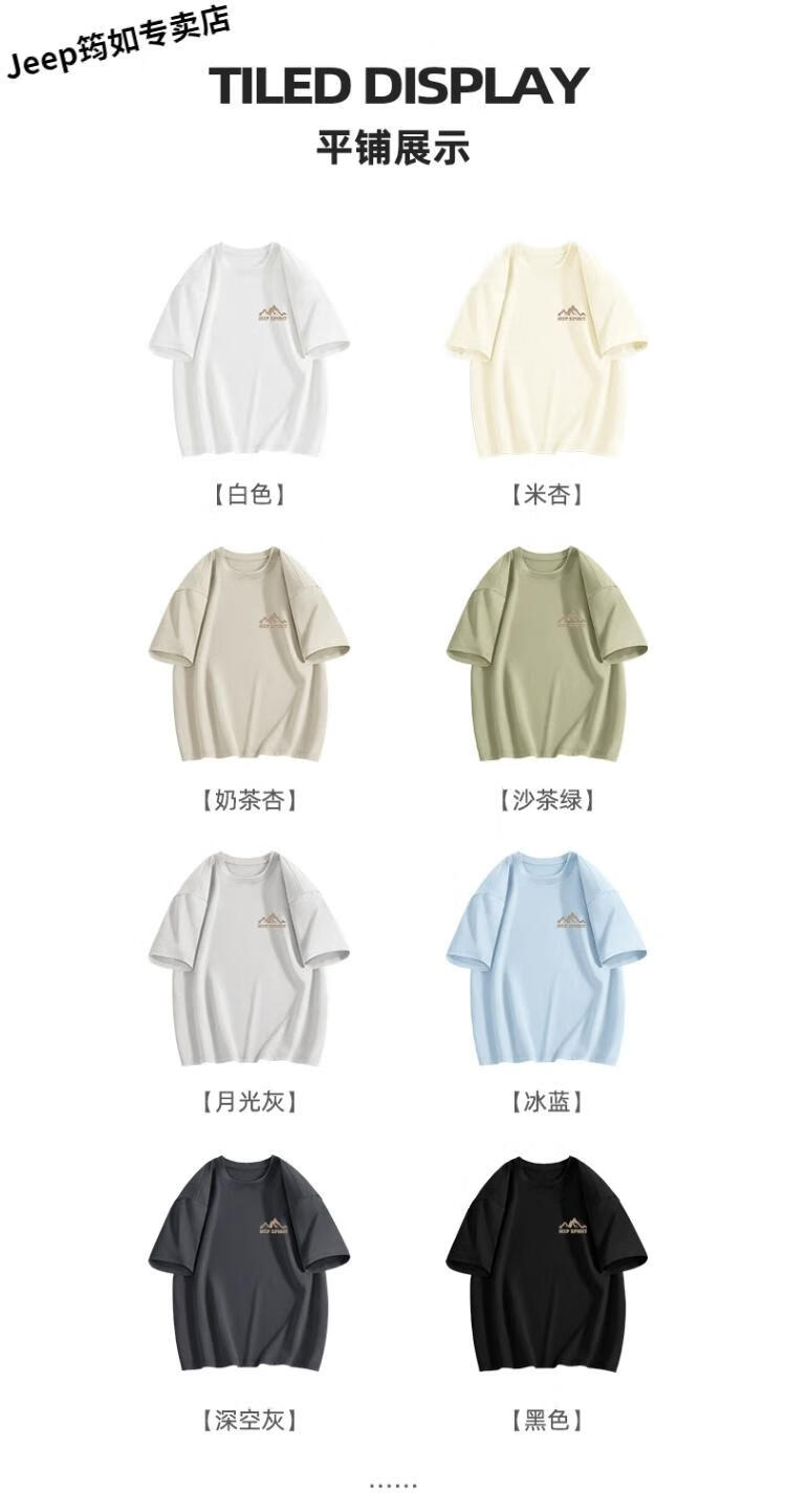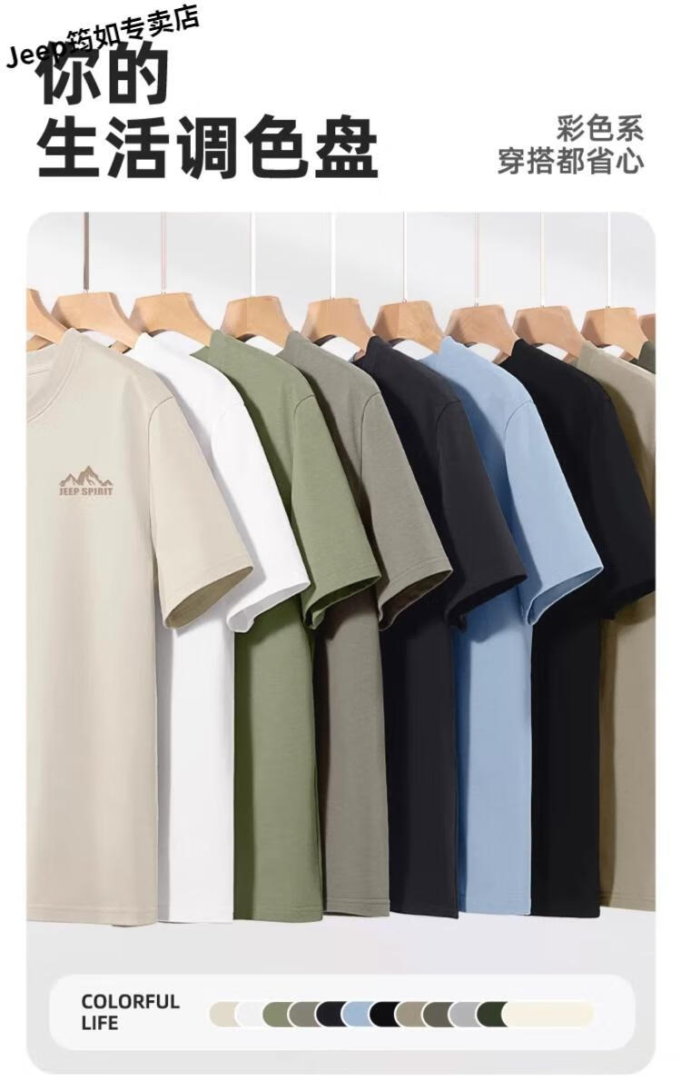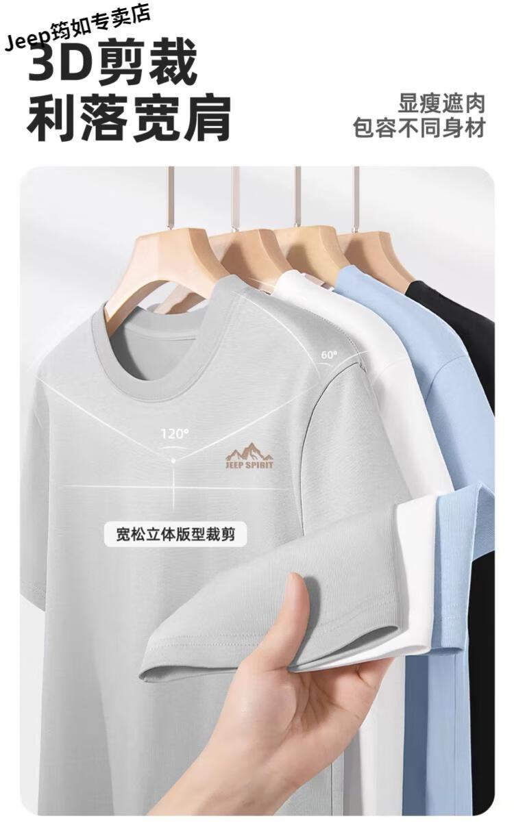 吉普(JEEP)品牌士短袖T恤25新款夏季上衣男纯棉透气重磅男款衣服 【纯棉】jp山野标K月雾灰 2XL 185 (体重160-180斤)
