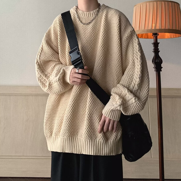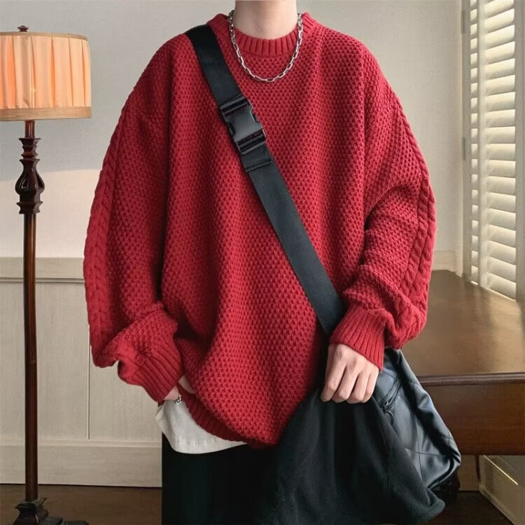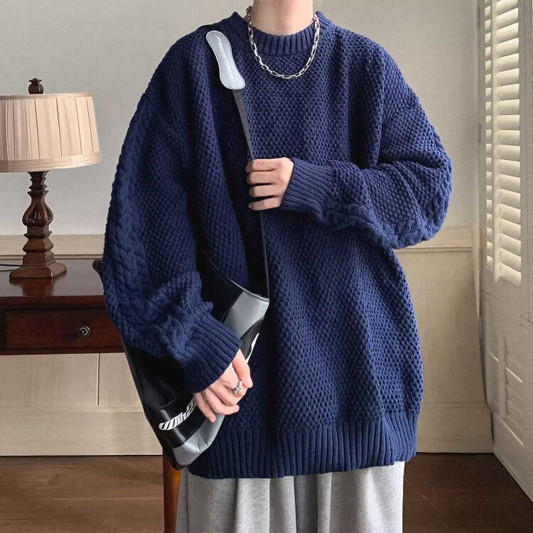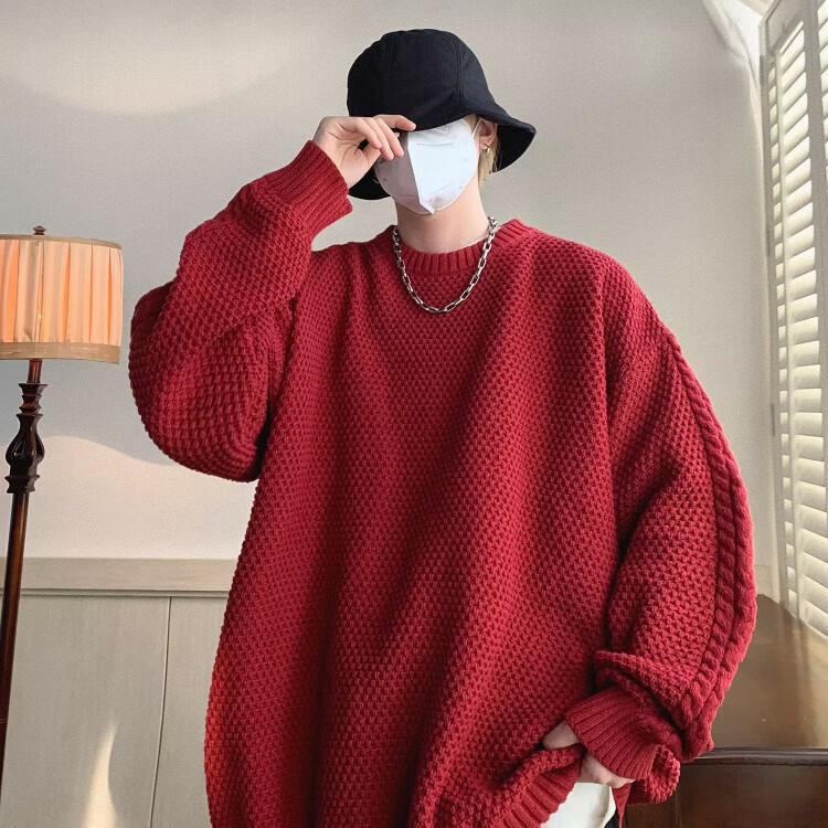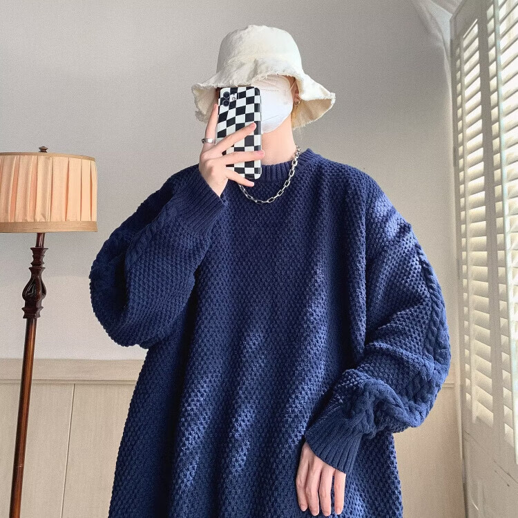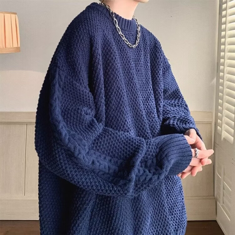POUM喜庆本命年红色毛衣美式复古秋冬季外套潮牌oversize慵懒风针织衫 XHWP-Y203蓝色 3XL