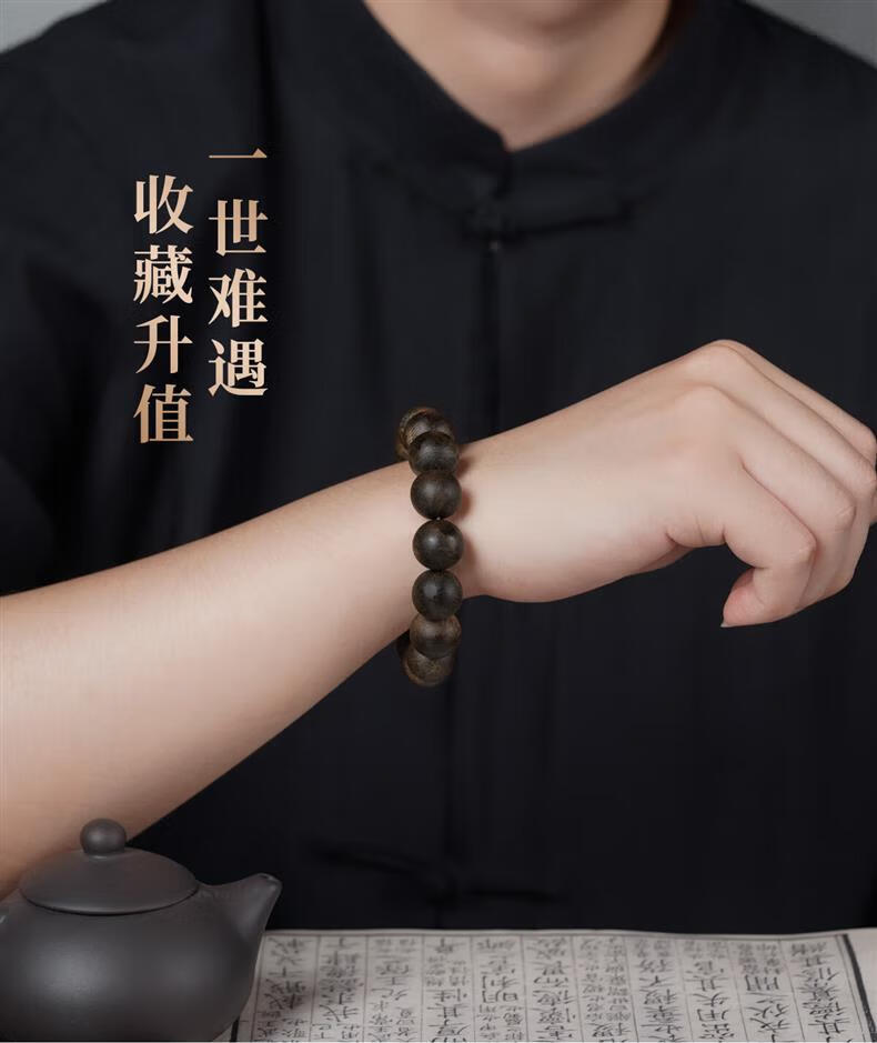 耕鸿越南芽庄白奇楠沉香天然正宗高端棋楠孤品沉水收藏级黑油老料文玩 白棋楠芽庄14mm单圈