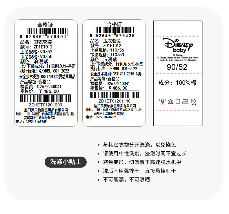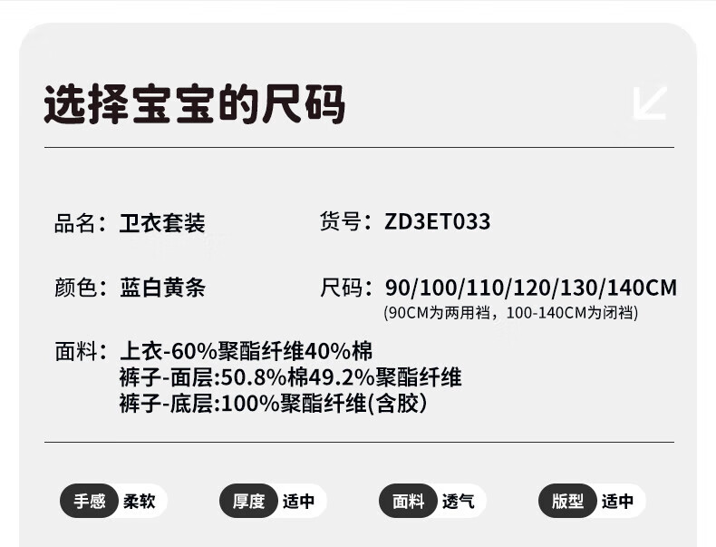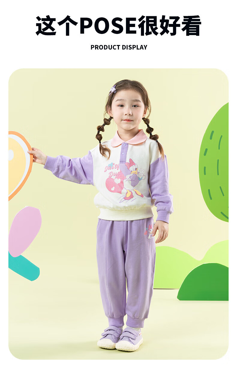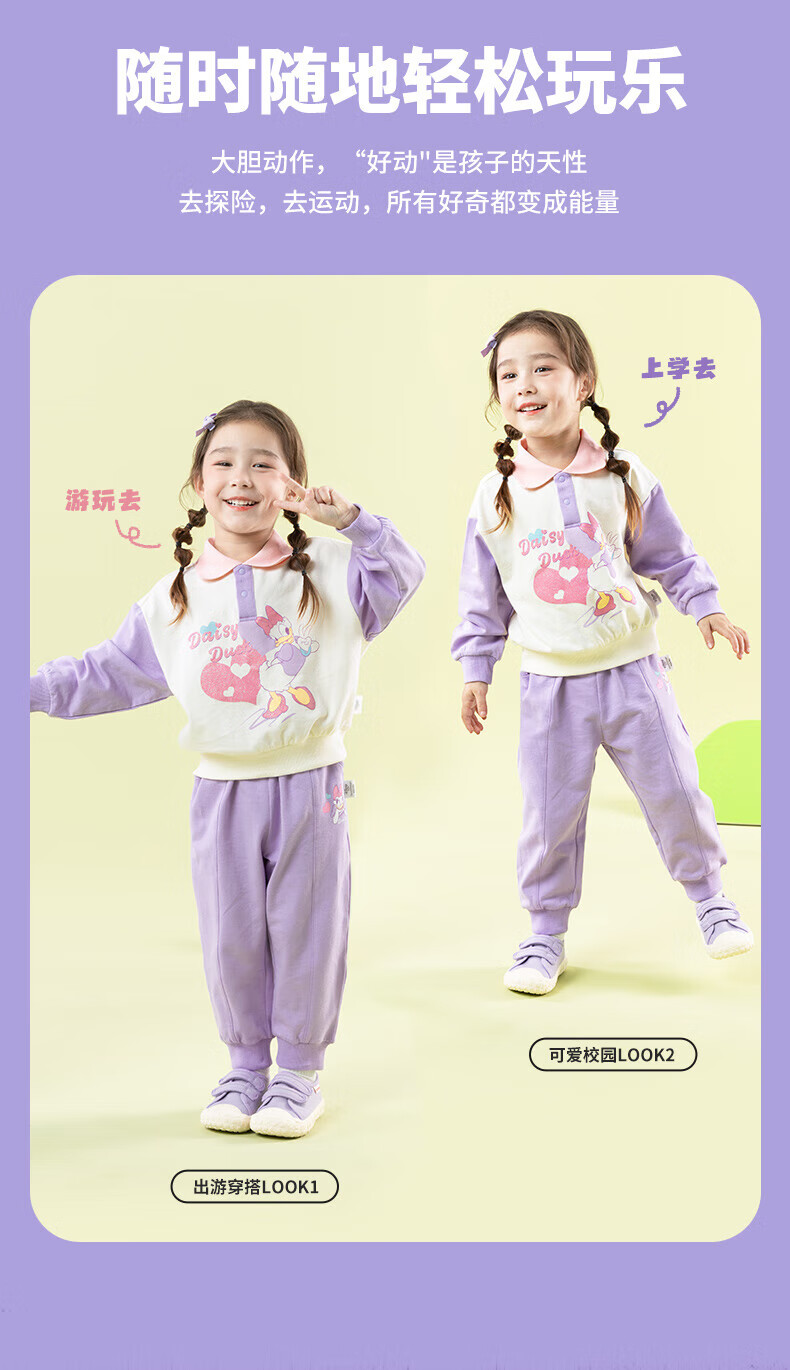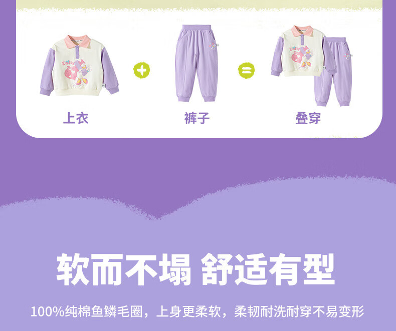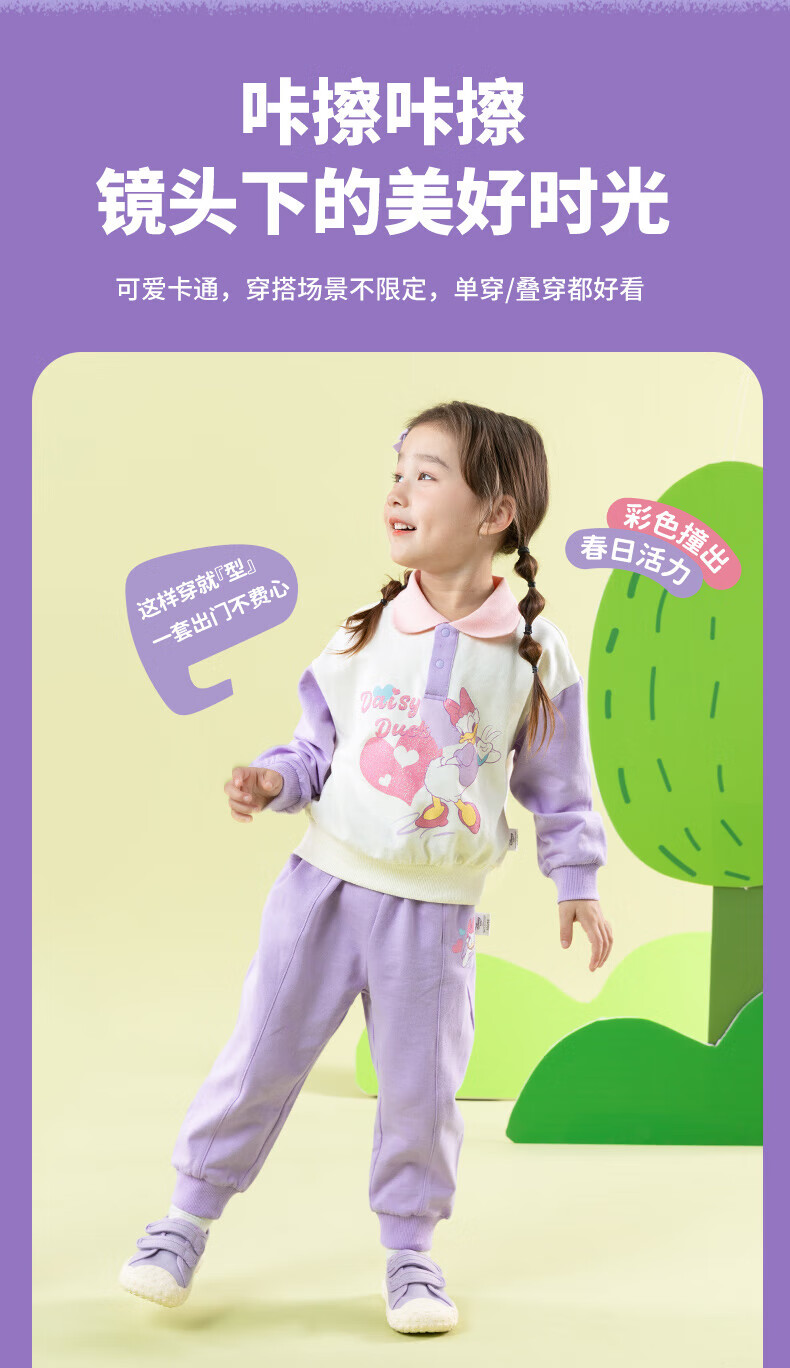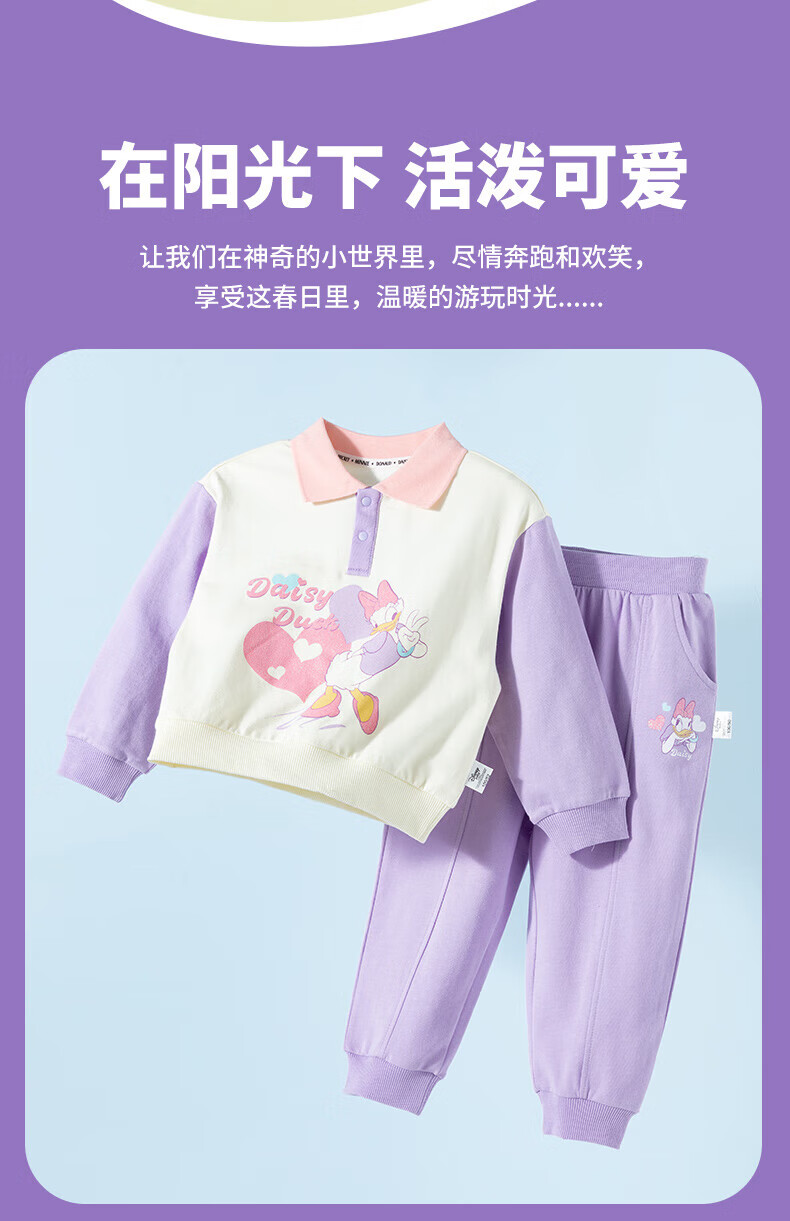 迪士尼(Disney)秋季男女儿童米奇时尚百搭休闲纯棉耐磨亲肤舒适保暖新款卫衣套装 ZD3ET002杏白灰蓝 120
