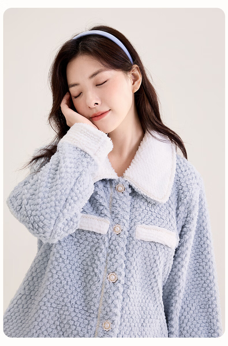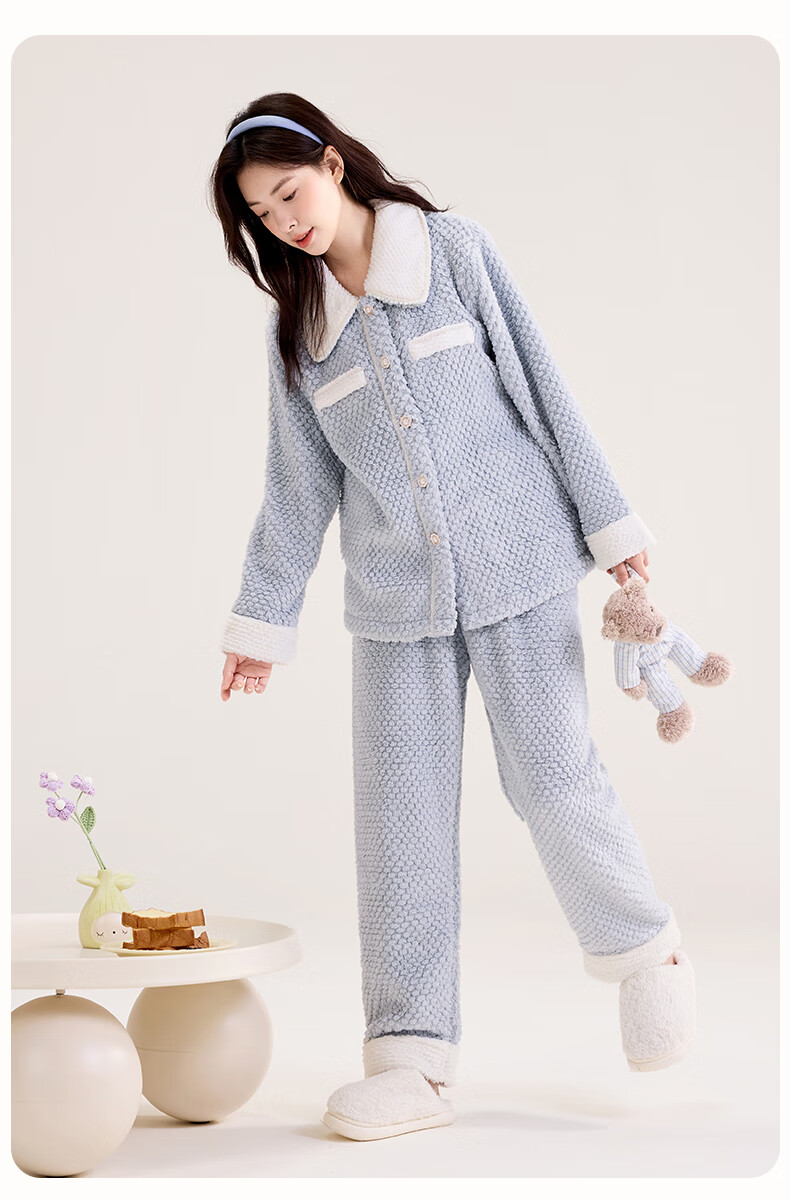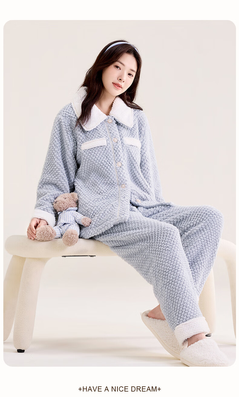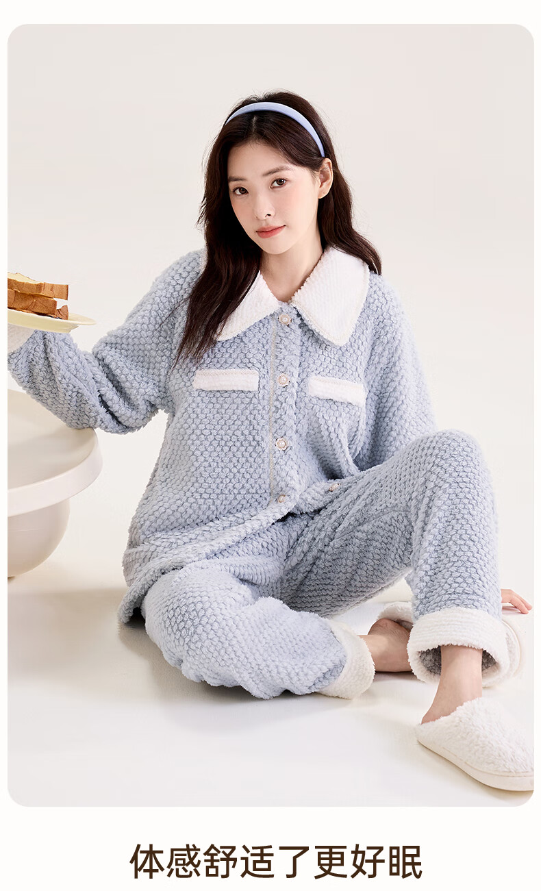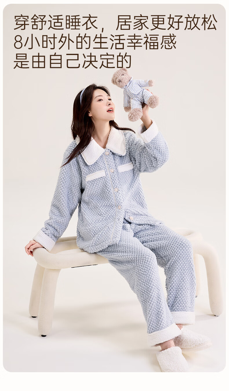 玛伦萨(manza)珊瑚绒睡衣女秋冬季加绒加厚保暖可外穿长袖长裤女士家居服套装 香芋紫 L