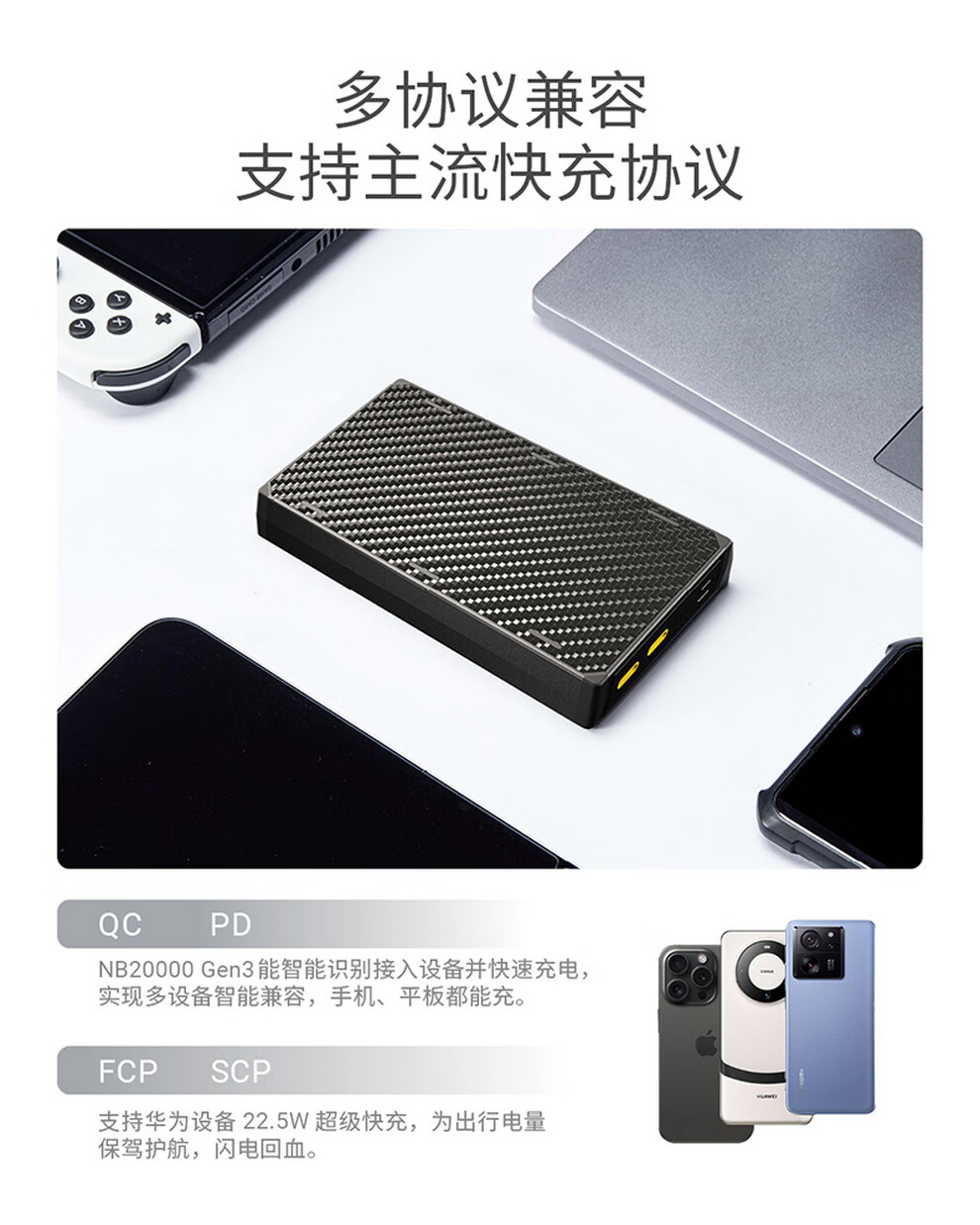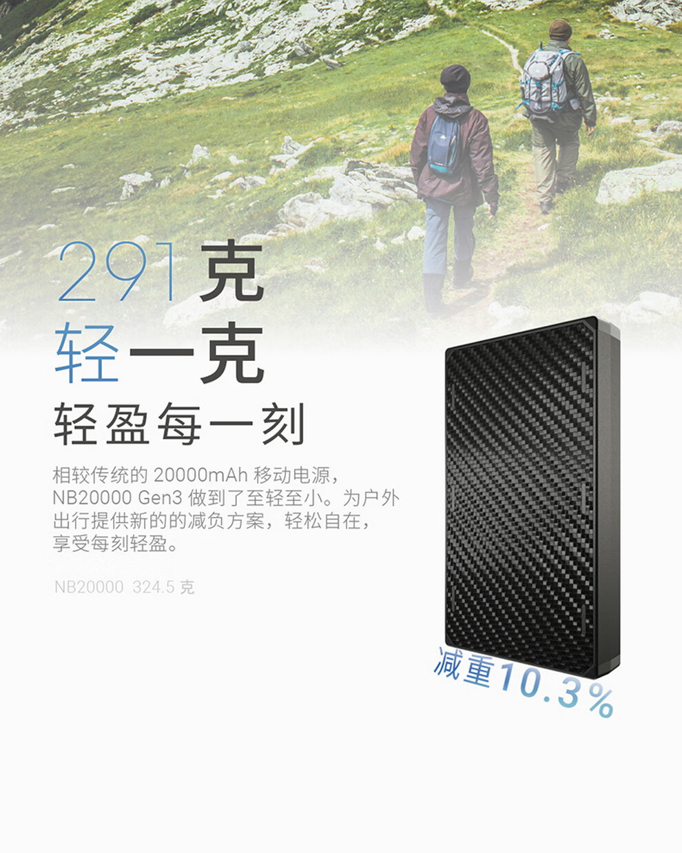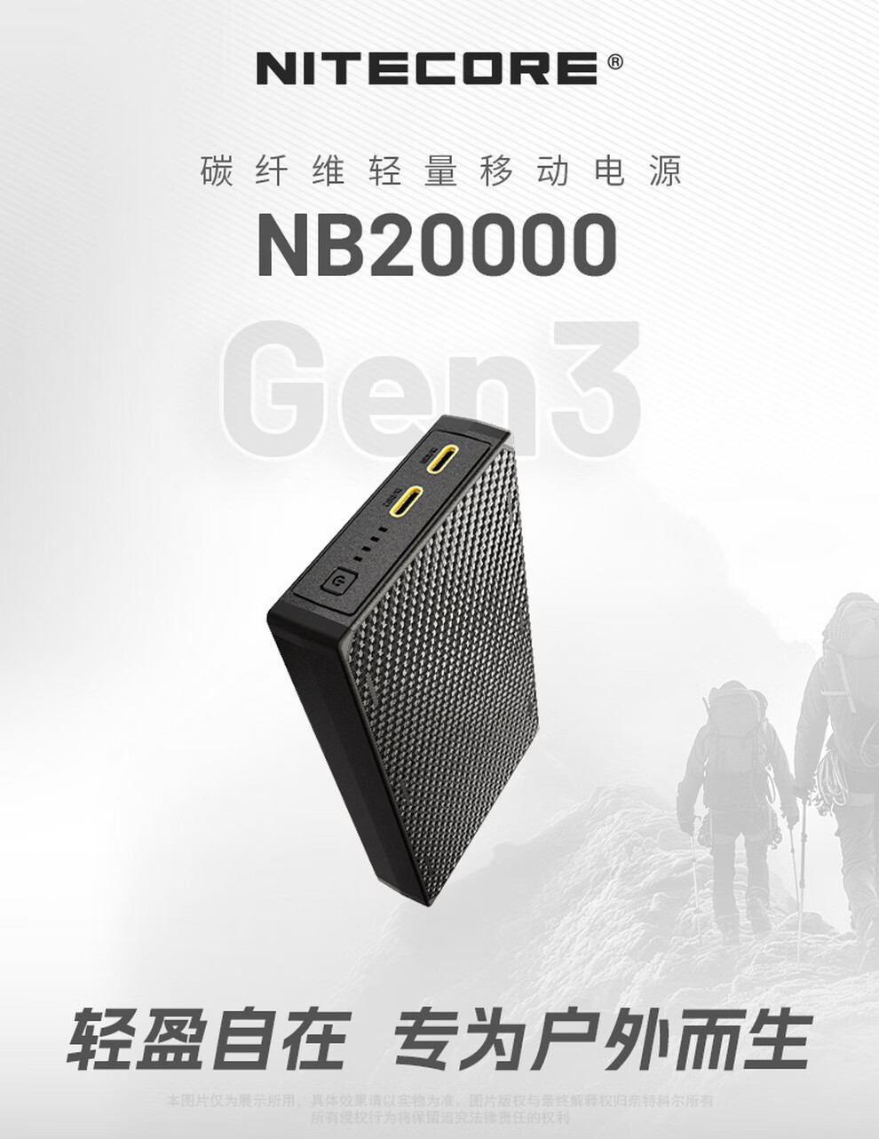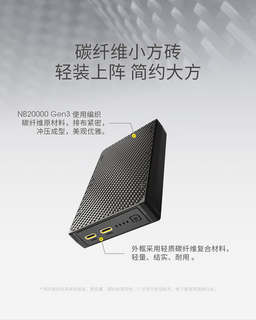奈特科尔(NITECORE)3C认证可上飞机NB20000碳纤维快充移动电源大容量超薄户外充电宝 NB20000 GEN3第三代