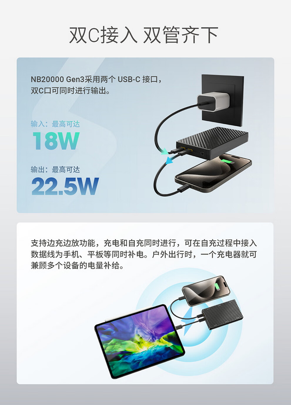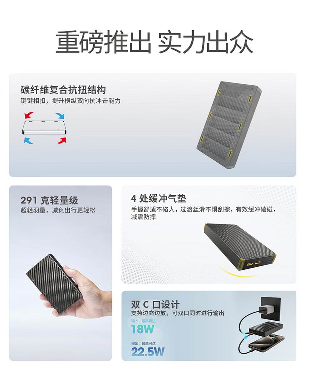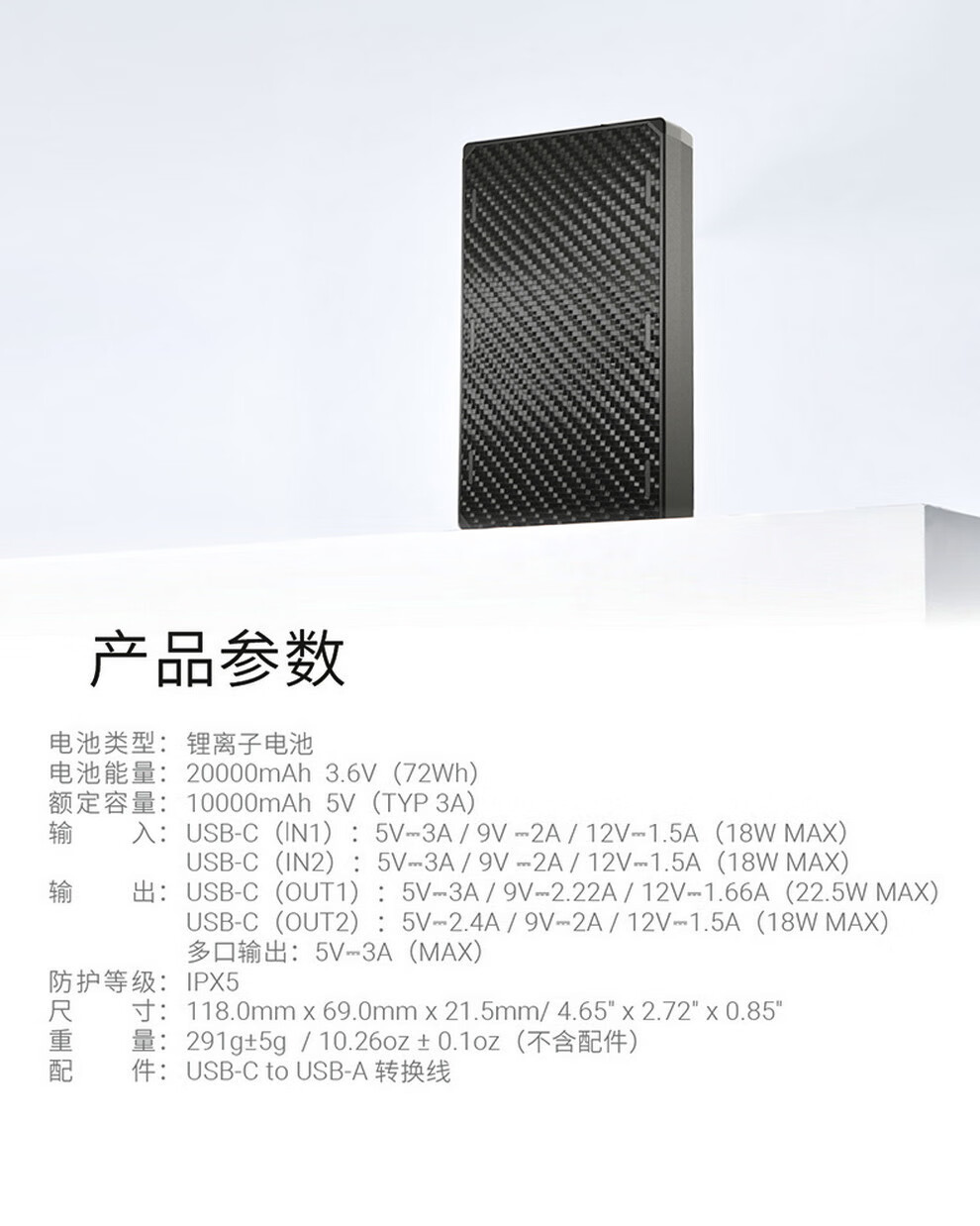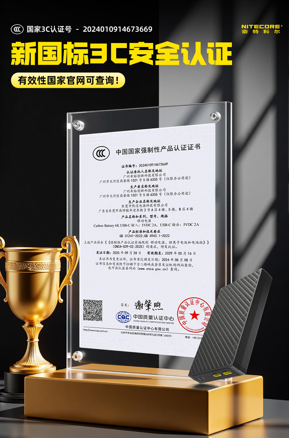 奈特科尔(NITECORE)3C认证可上飞机NB20000碳纤维快充移动电源大容量超薄户外充电宝 NB20000 GEN3第三代