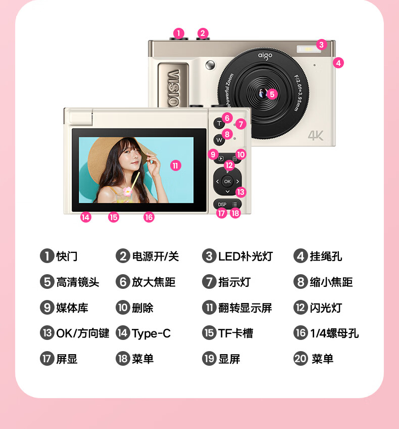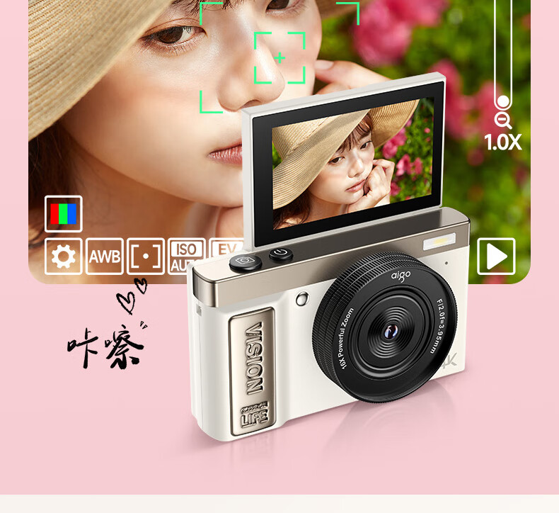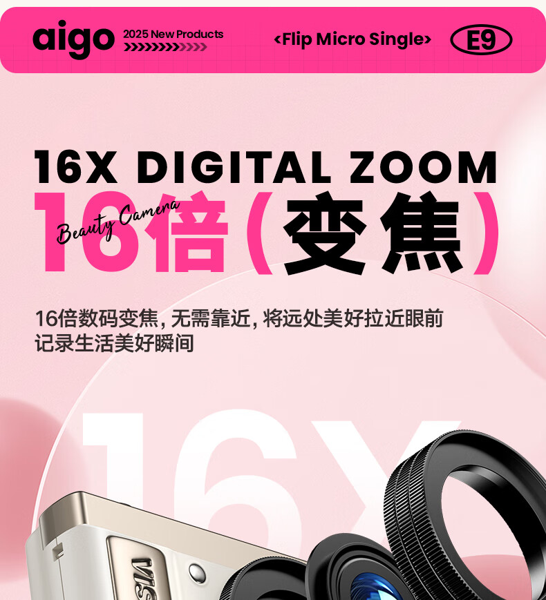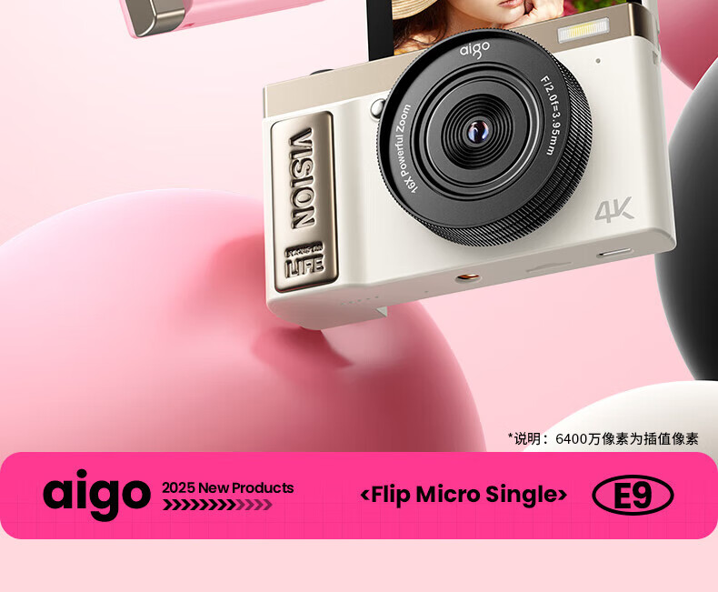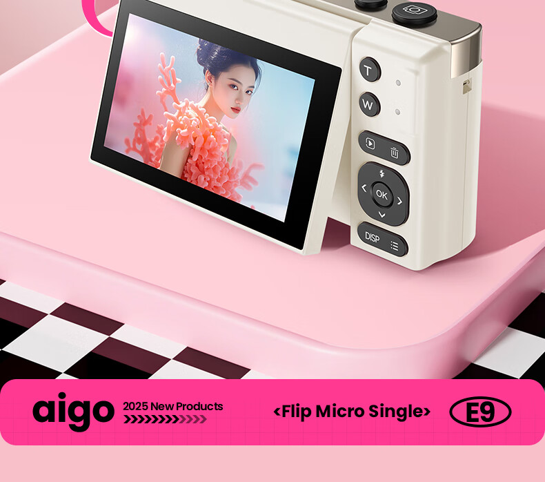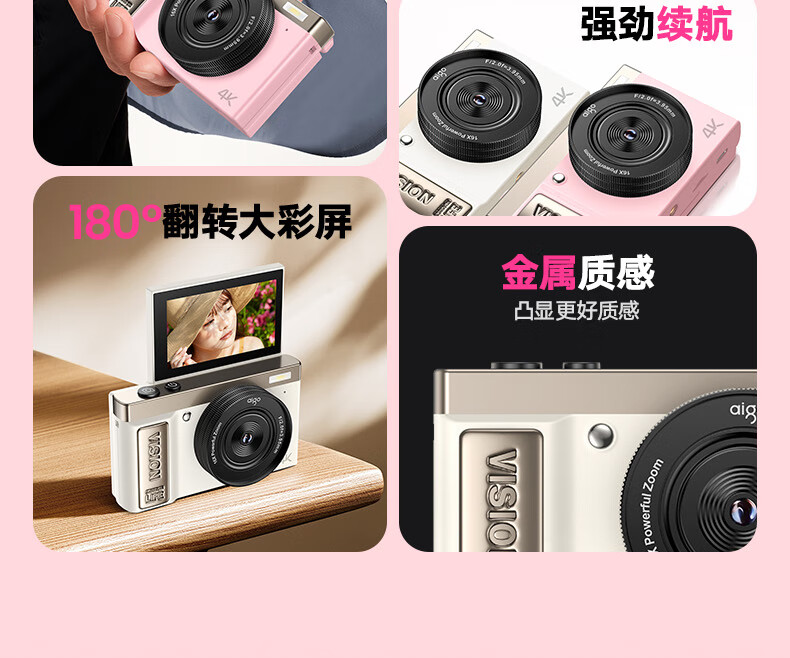 aigo爱国者E9/D9数码相机ccd平替入门级微单旅游便携学生高中生高清可传手机复古儿童卡片机女生翻盖 粉色【配微距+广角镜头】 128G【约拍12000张照片】