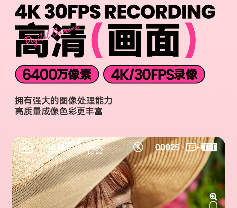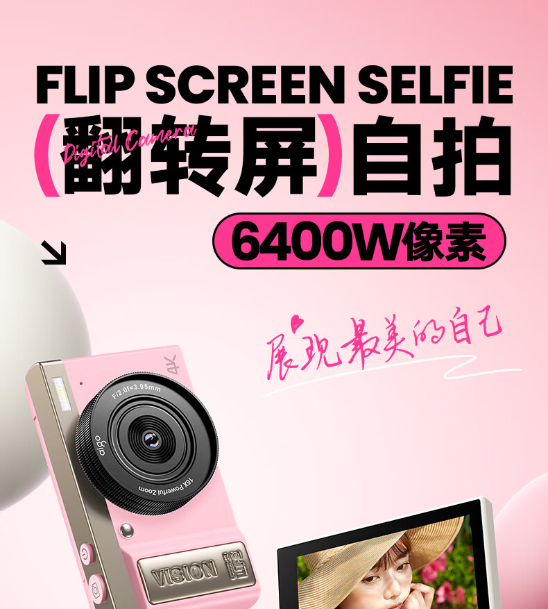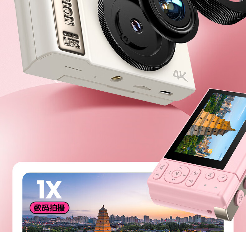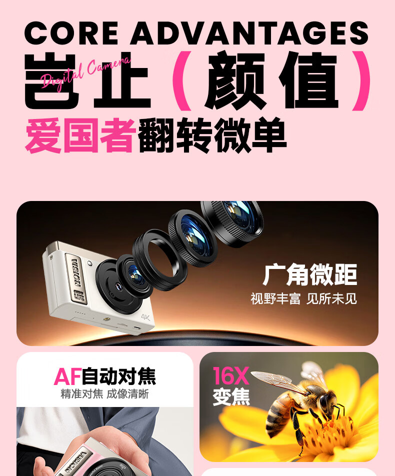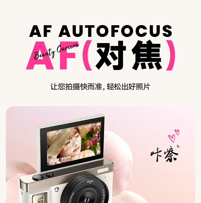 aigo爱国者E9/D9数码相机ccd平替入门级微单旅游便携学生高中生高清可传手机复古儿童卡片机女生翻盖 粉色【配微距+广角镜头】 128G【约拍12000张照片】