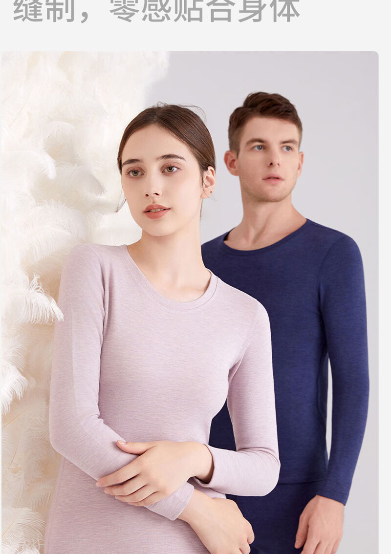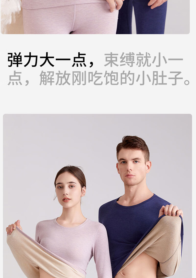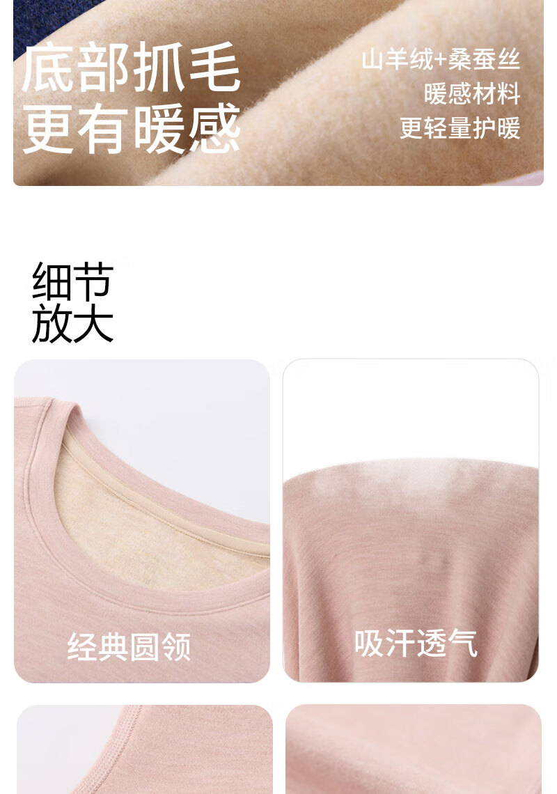 Cofni羊绒蚕丝保暖内衣套装男女同款加绒加厚圆领无痕秋衣秋裤德绒保暖 高档礼盒装:男款深幕蓝1套 3XL:女145-165斤/男175-200斤