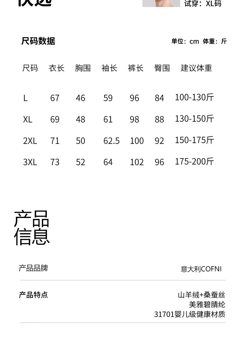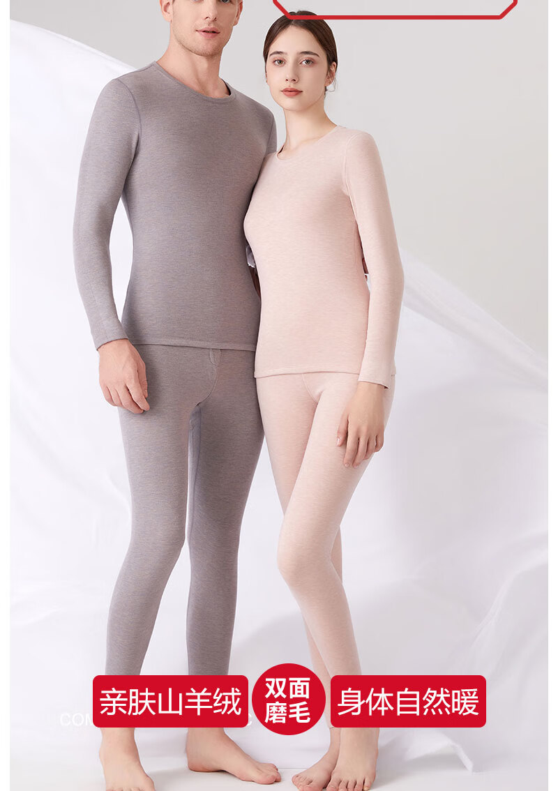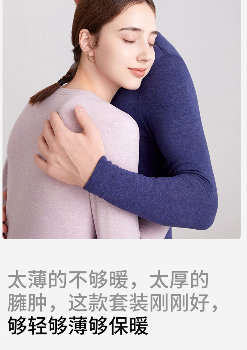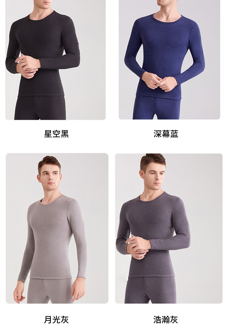 Cofni羊绒蚕丝保暖内衣套装男女同款加绒加厚圆领无痕秋衣秋裤德绒保暖 高档礼盒装:男款深幕蓝1套 3XL:女145-165斤/男175-200斤