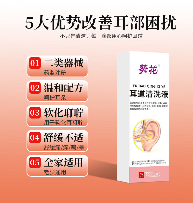 葵花医用耳耵聍清洗器耳鸣滴耳液神经性耳聋嗡嗡响听力下降药止鸣神器 单盒装【不划算】20ml/盒