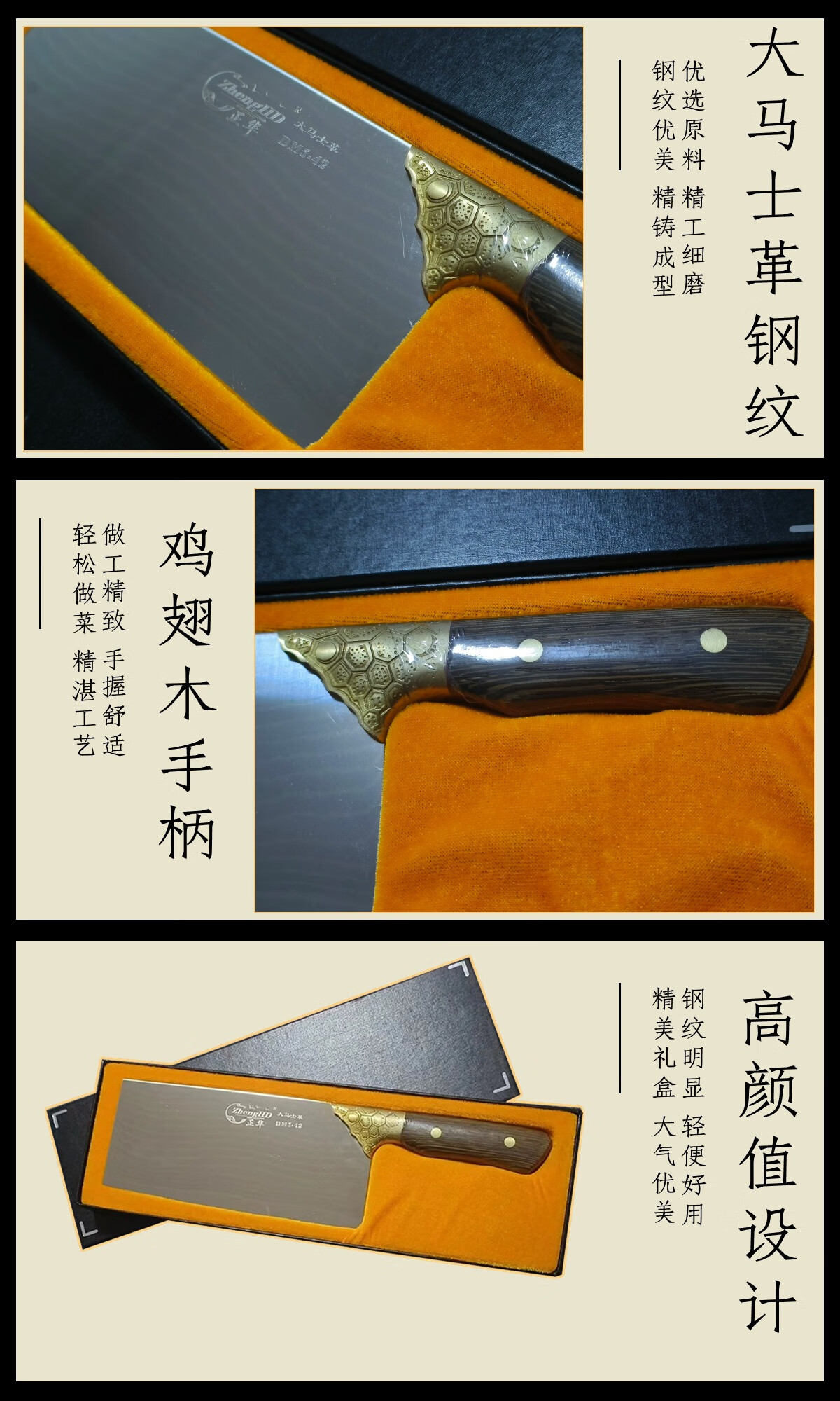 大足龙水正华大马士革钢菜刀锋利家用切片刀切肉切菜刀厨房刀具 大马士革切片刀