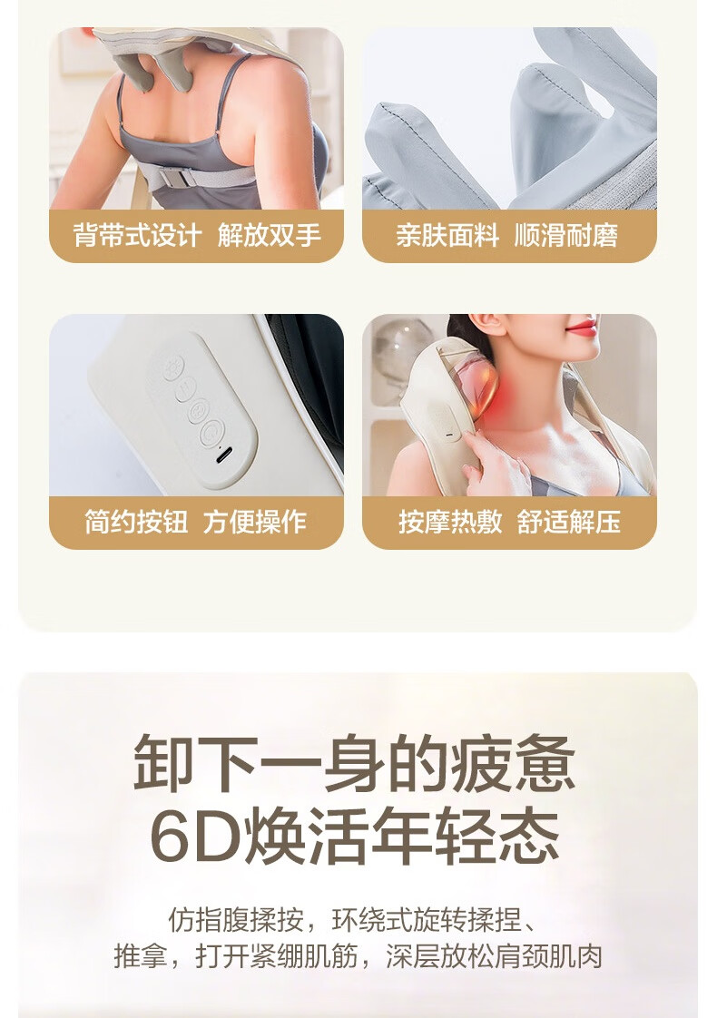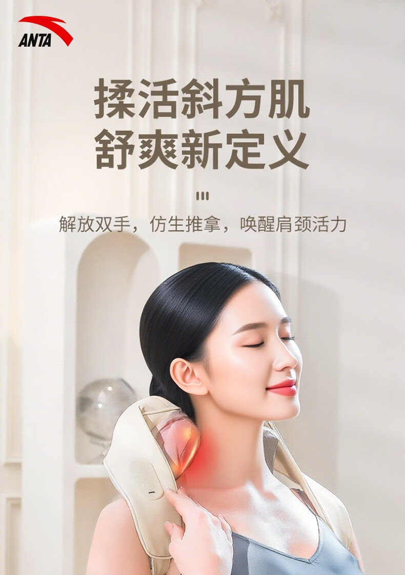 安踏颈椎肩颈按摩器斜方肌全身颈椎腰背部多功能披肩揉捏家用送礼 6D旗舰款【肩颈同按/仿生揉捏/缓解疲惫】