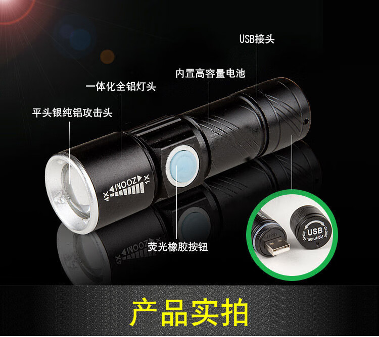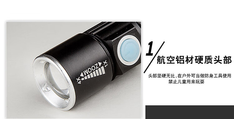 微笑鲨夜魂强光手电筒超长续航户外充电应急灯家用变焦远射激光探照灯 夜光长款-M80灯芯【8电】