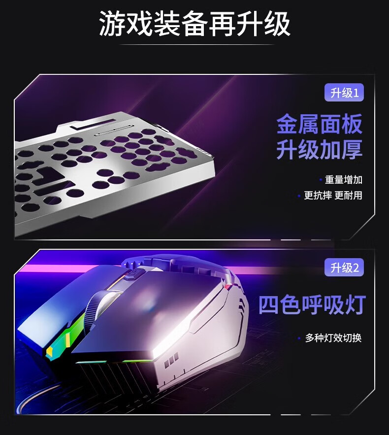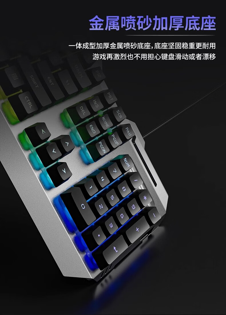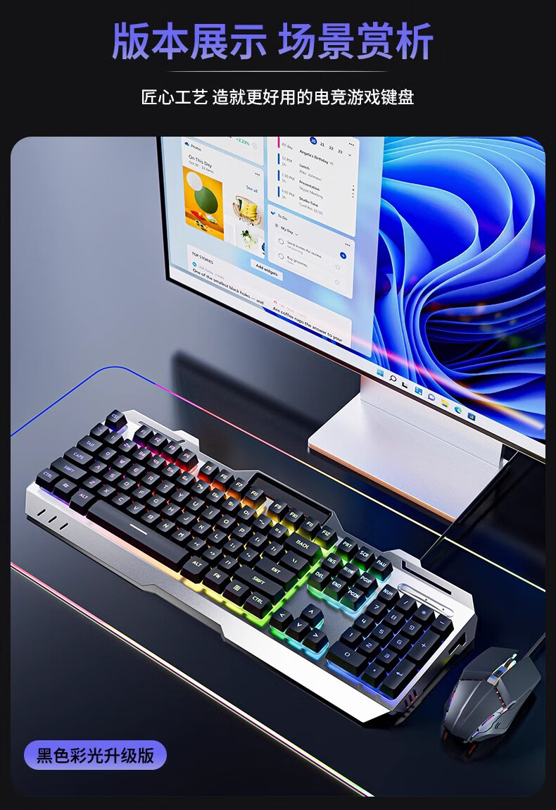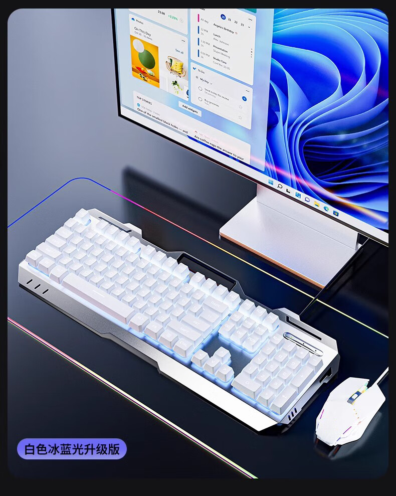 黑暗武士真机械手感键盘鼠标套餐台式电脑有线键盘电脑电竞游戏键鼠高颜值 (白色升级版【字符蓝光+金属面板】)