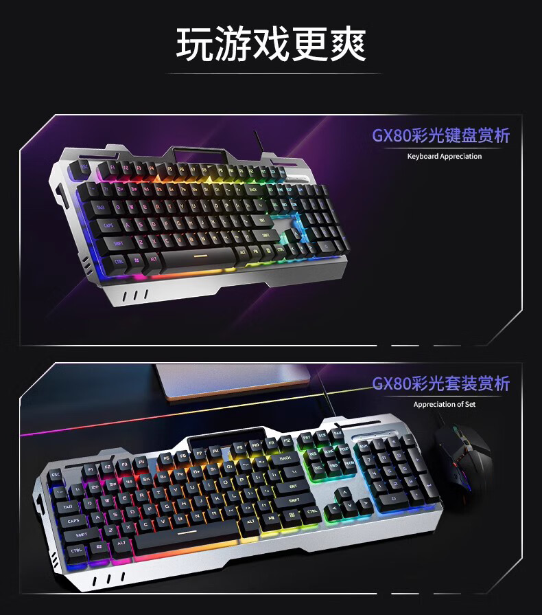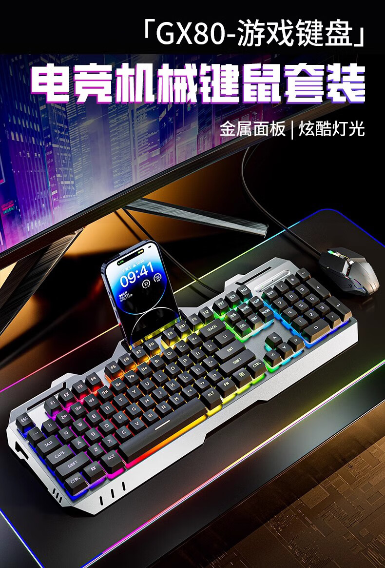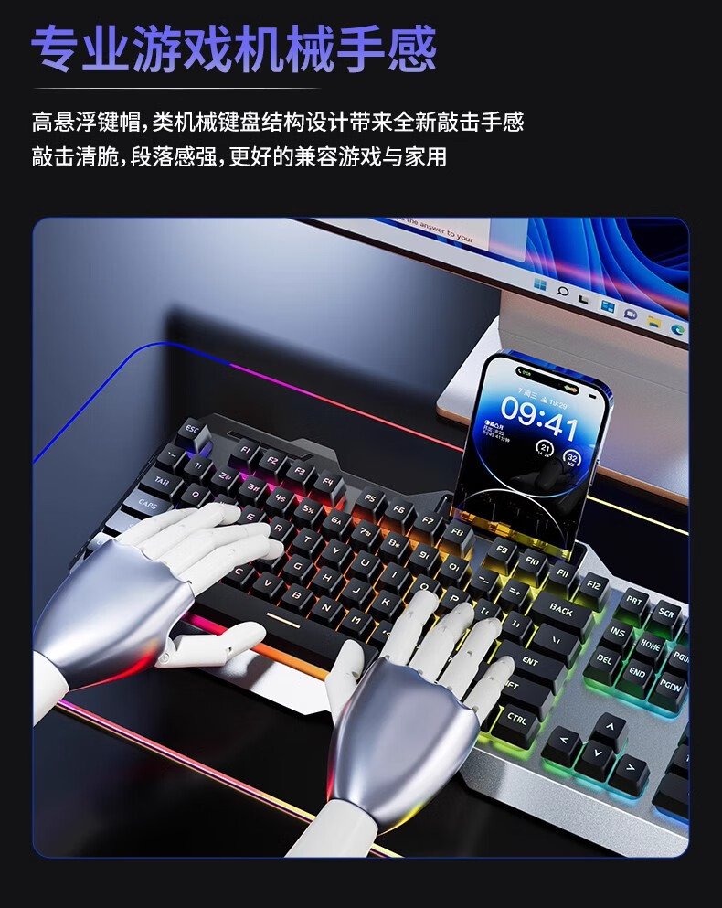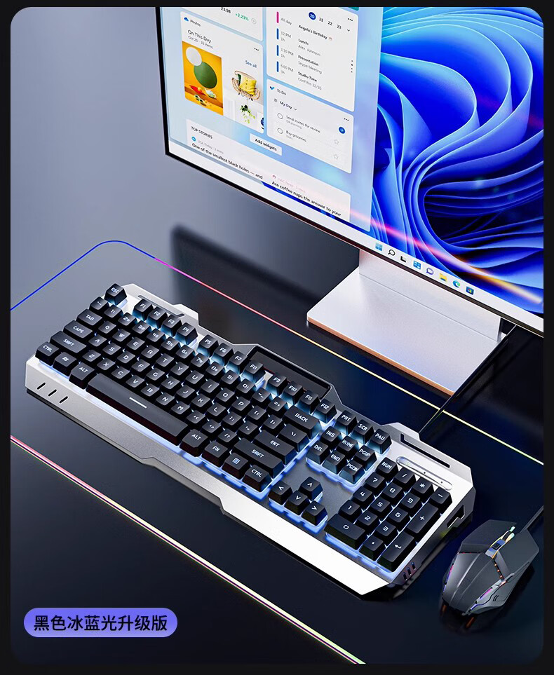 黑暗武士真机械手感键盘鼠标套餐台式电脑有线键盘电脑电竞游戏键鼠高颜值 (白色升级版【字符蓝光+金属面板】)