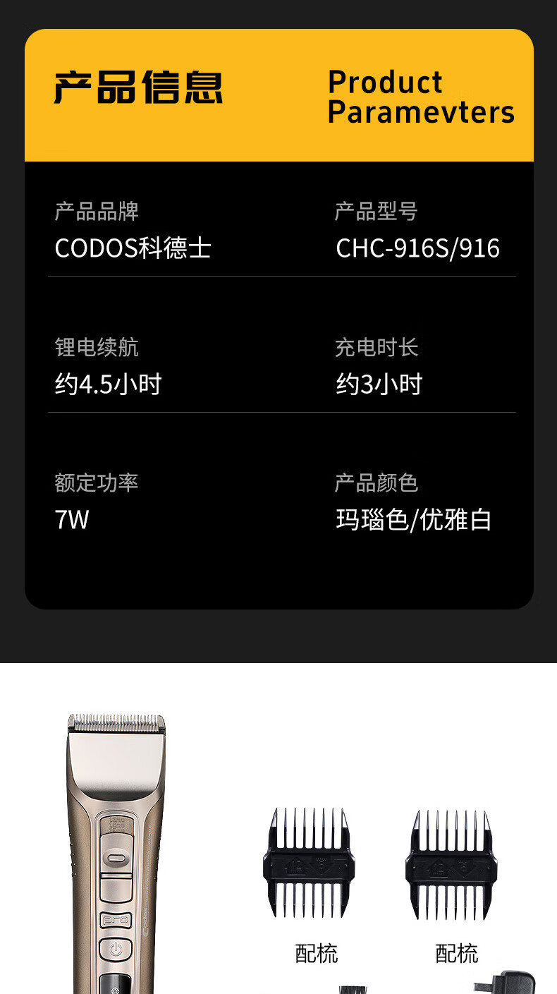 科德士(Codos) 科德士(Codos)专业理发器发廊用剃头刀电动推子成人 电量显示CHC-916S 916标配