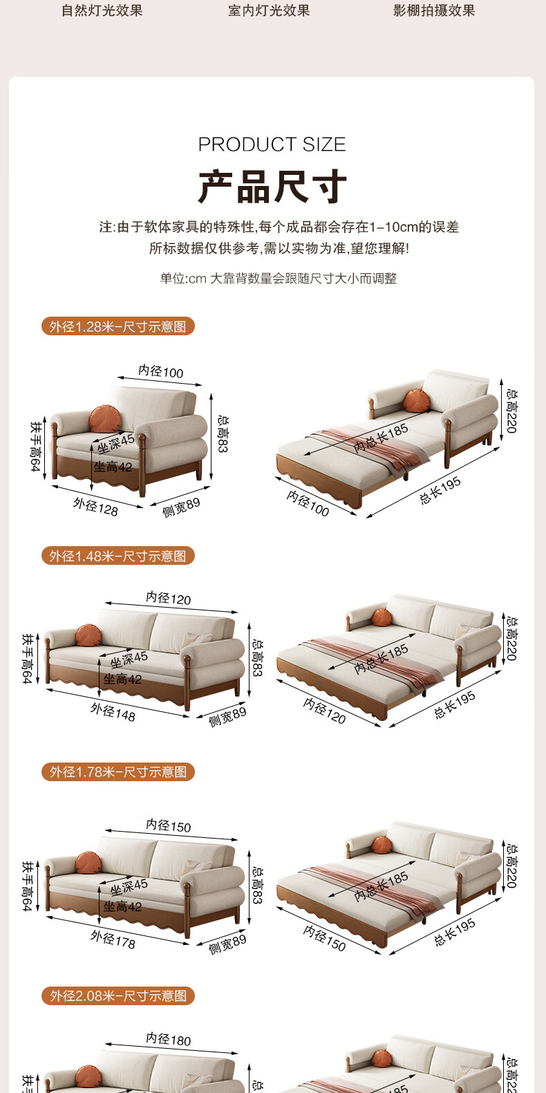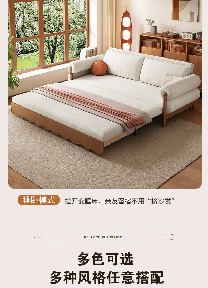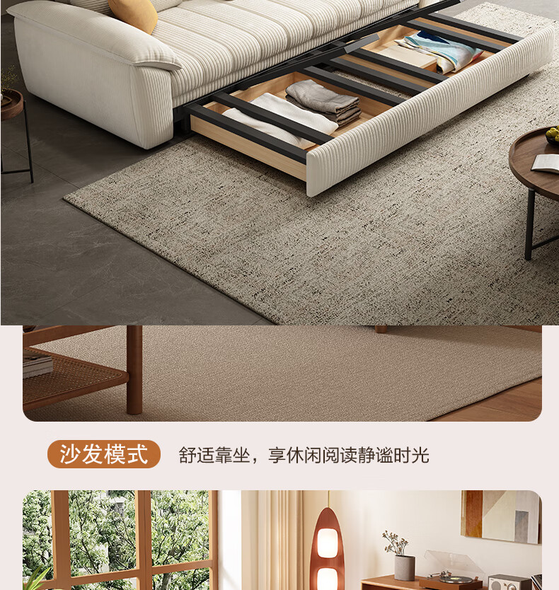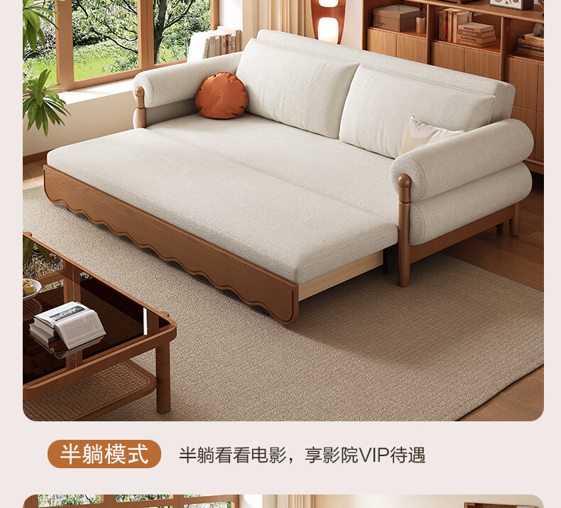 泽贤阁2025新款现代简约多功能折叠沙发一体两用客厅小户型懒人沙发 【新款猫抓皮+实木脚】米黄 【抑菌乳胶款】2*1.2米(2腰枕2扶手)