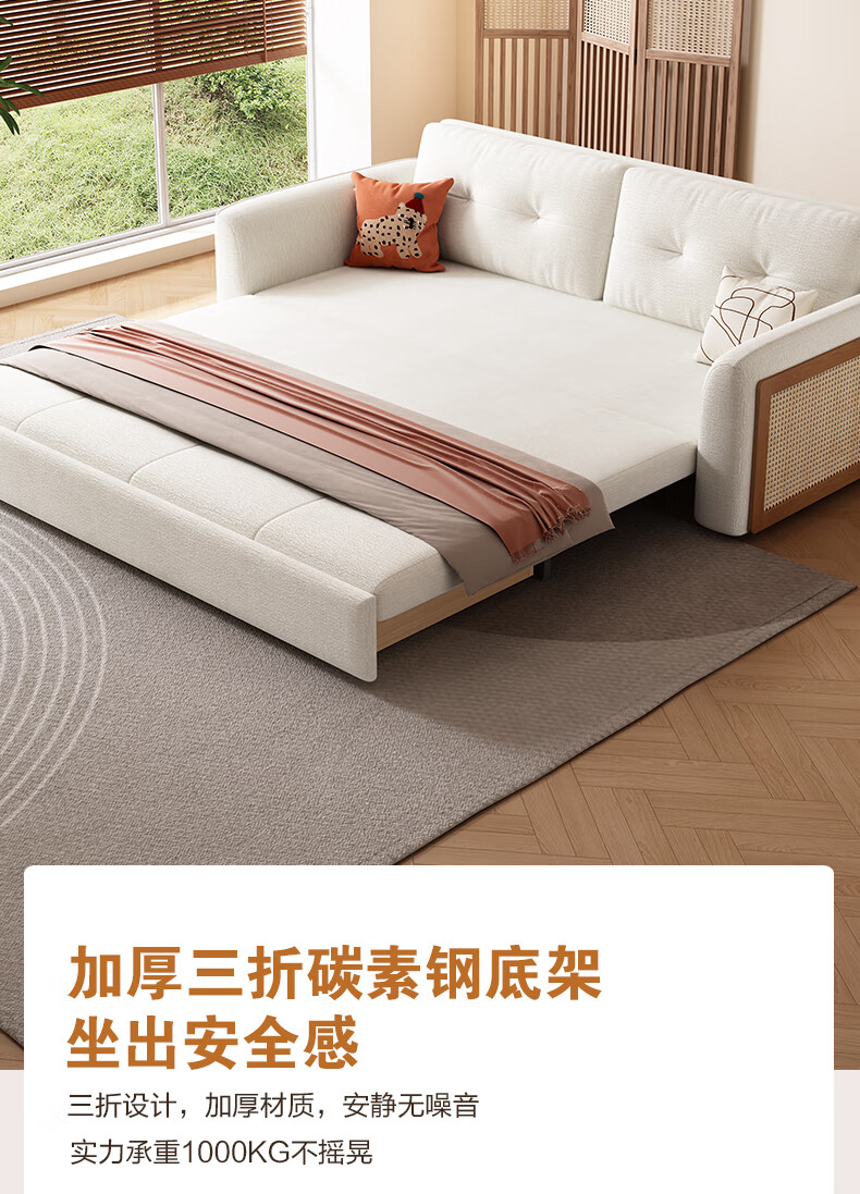 清茵阁2025新款现代简约多功能沙发床两用可折叠沙发床客厅小户型沙发床 【新款猫爪皮+实木脚】米黄 【抑菌乳胶款】升级款2*1.2米(2腰枕2扶手)