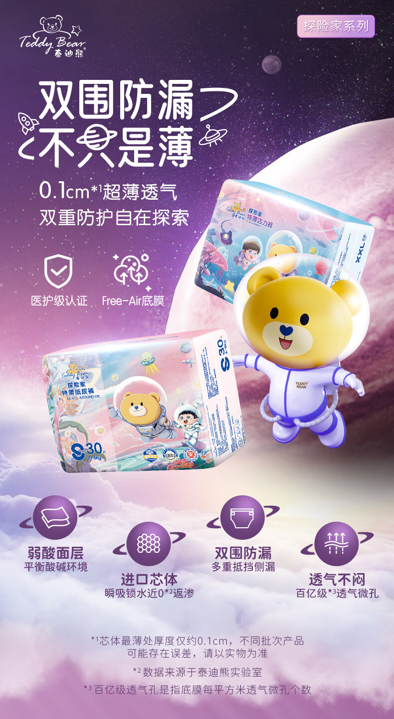 泰迪熊(Teddy Bear)探险家特薄拉拉裤XXL28片(15kg以上)婴儿尿不湿超薄透气医护级
