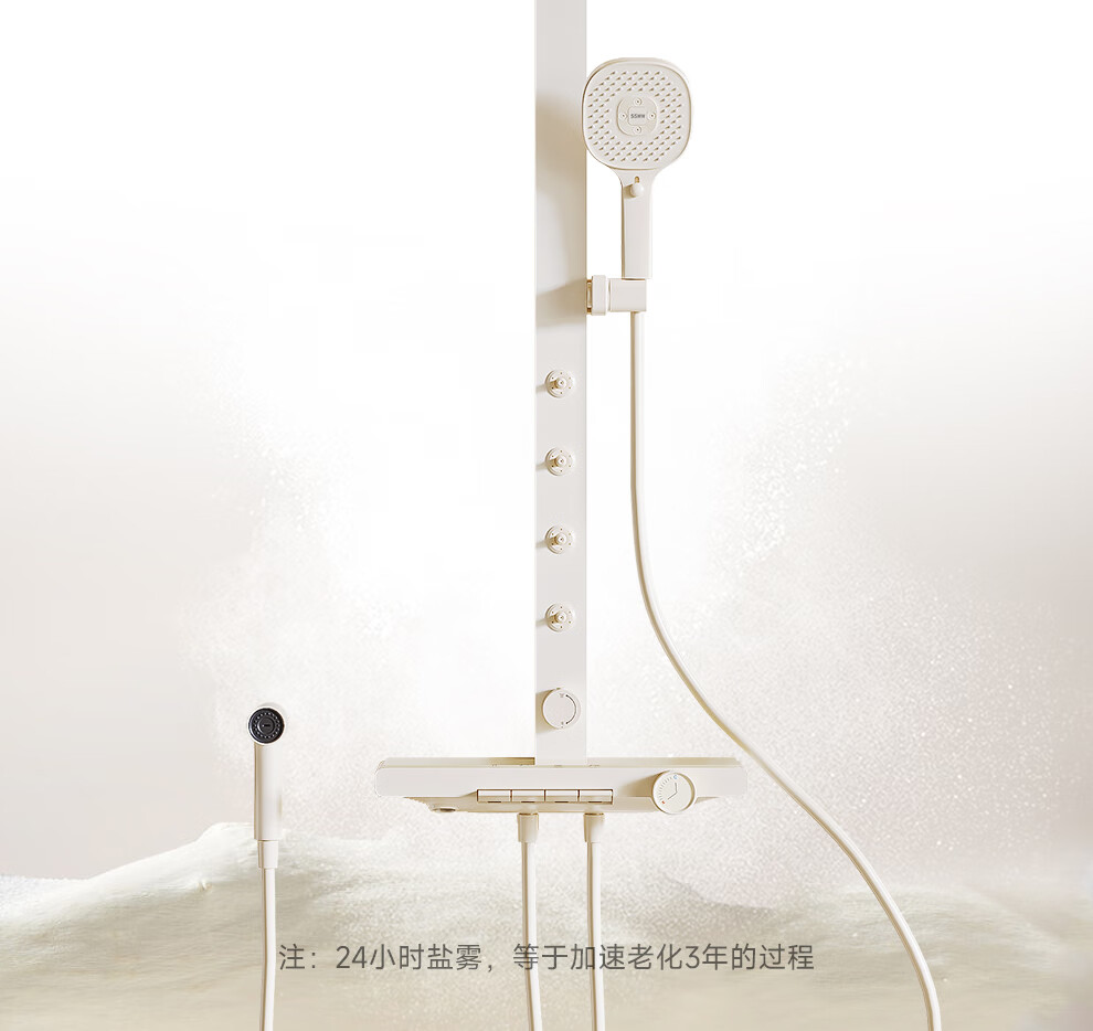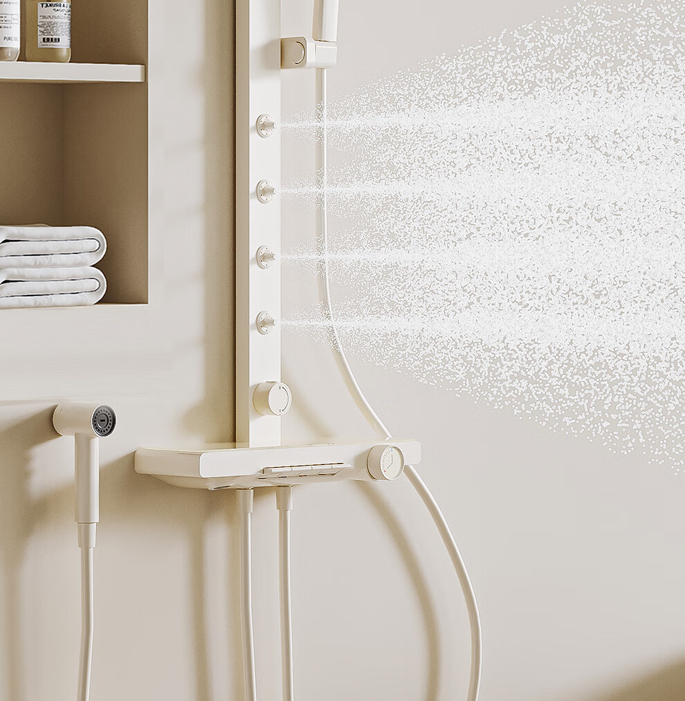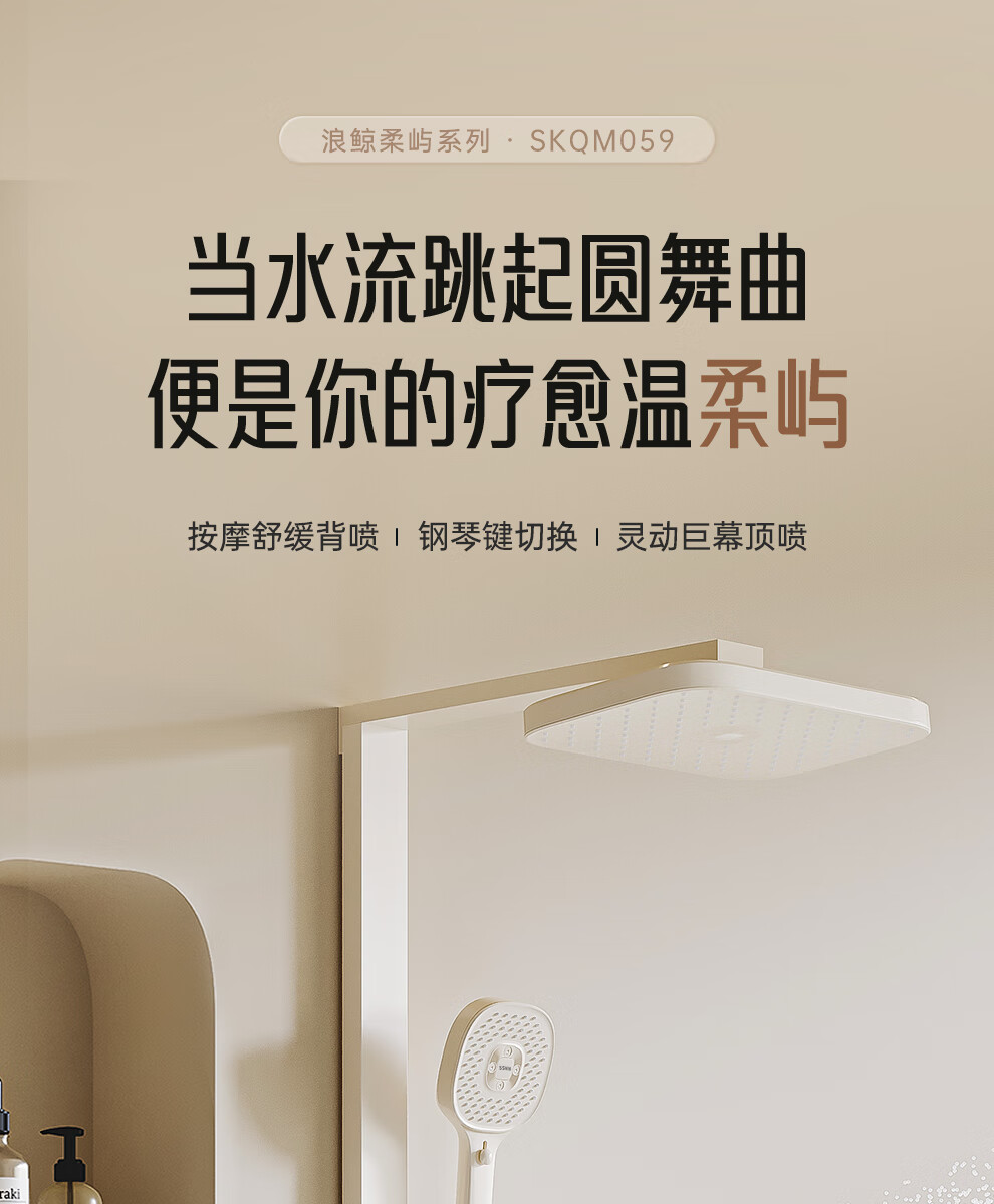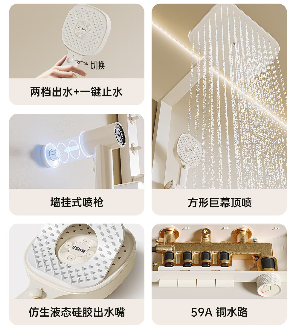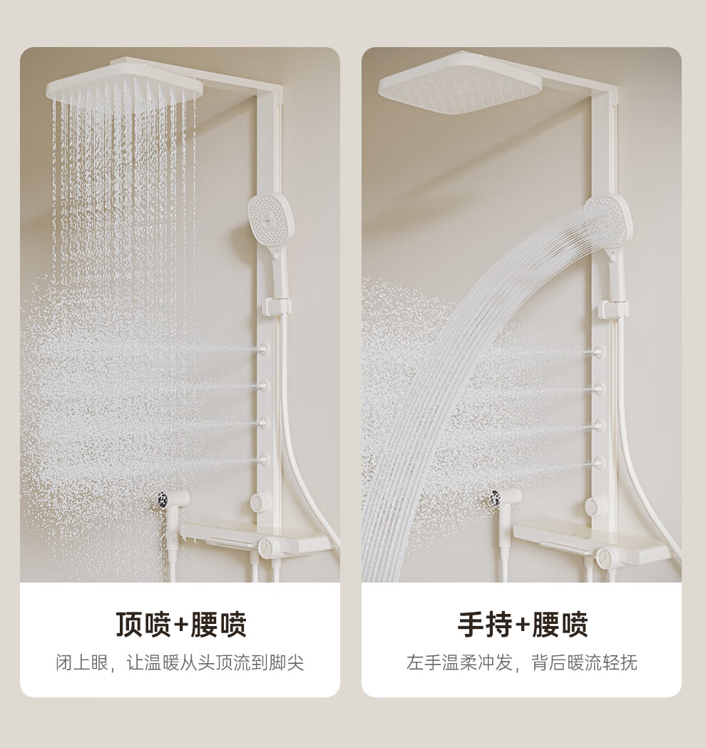 浪鲸(SSWW)卫浴淋浴花洒套装钢琴键浴室精铜冷热腰喷按摩增压喷头柔屿059 【舒压能手】奶白-背喷按摩 增压雨淋