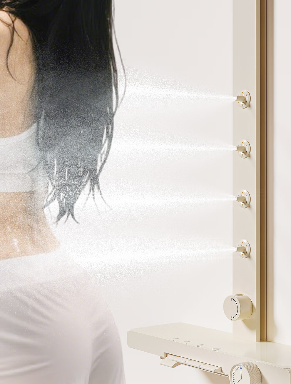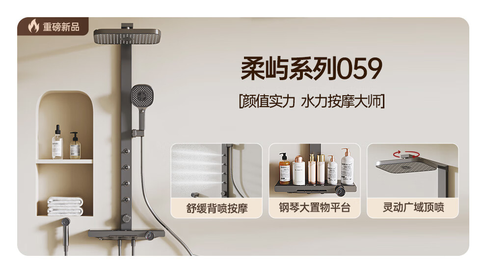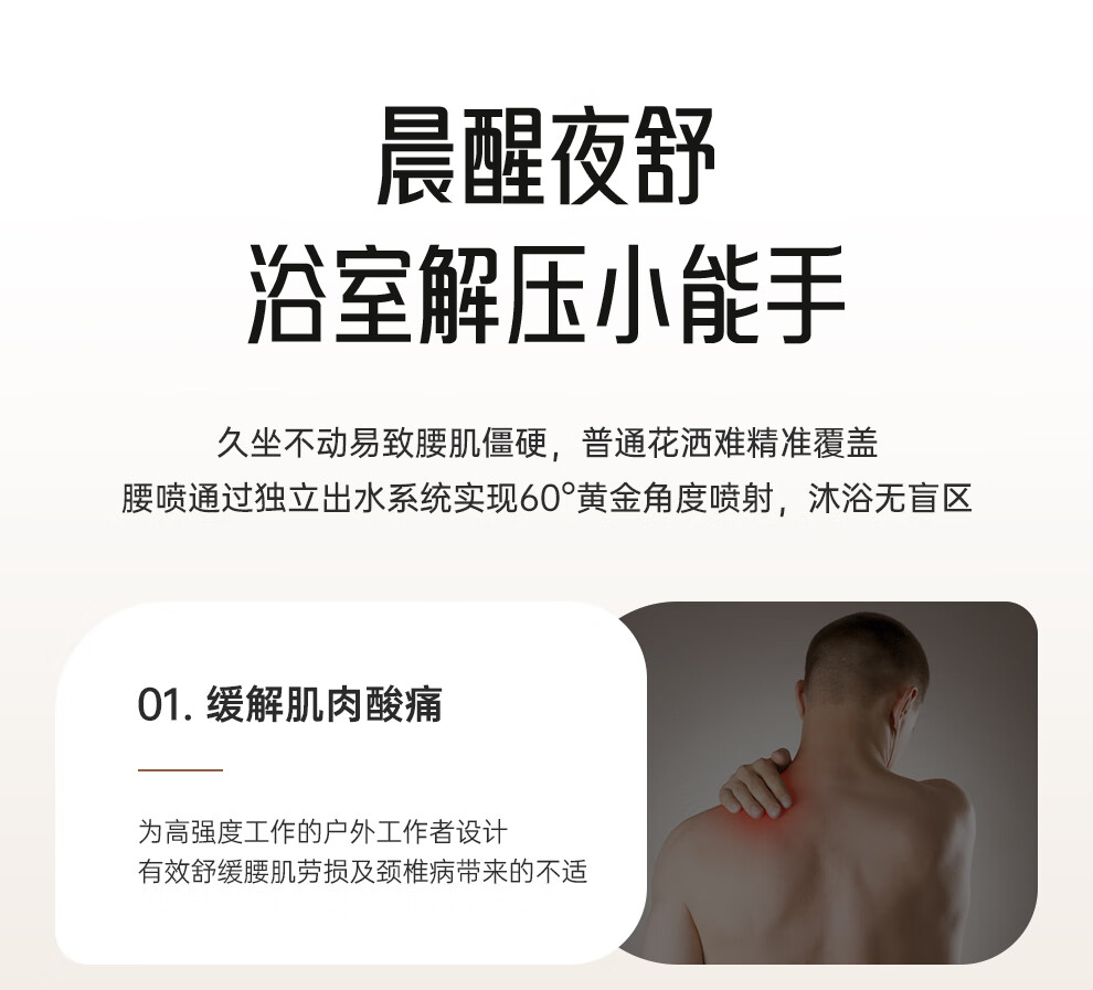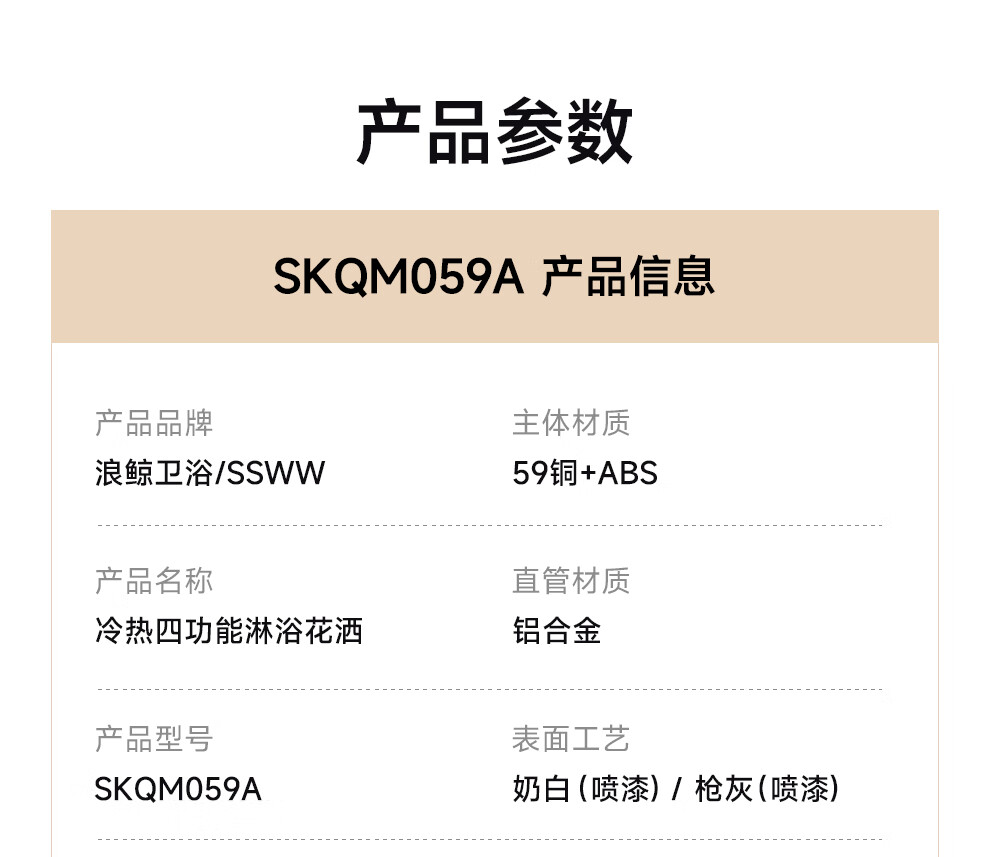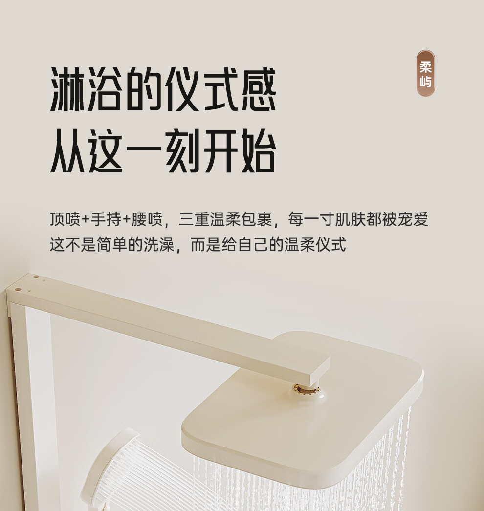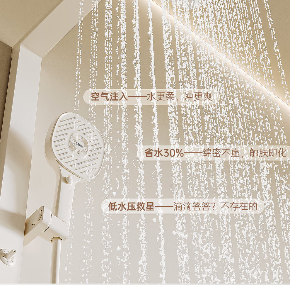 浪鲸(SSWW)卫浴淋浴花洒套装钢琴键浴室精铜冷热腰喷按摩增压喷头柔屿059 【舒压能手】奶白-背喷按摩 增压雨淋