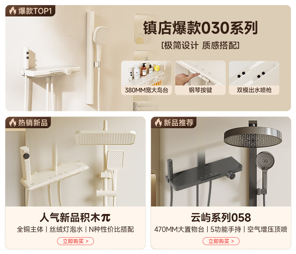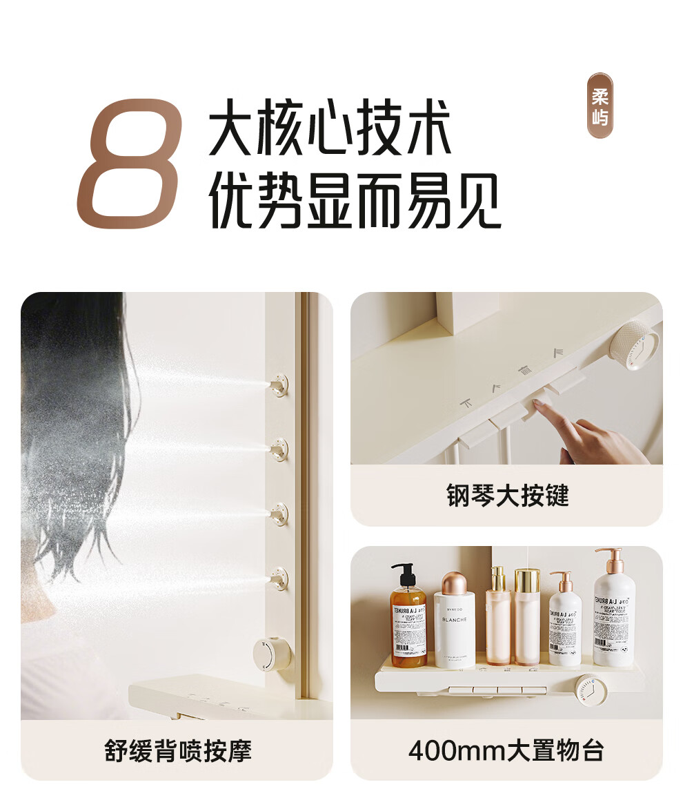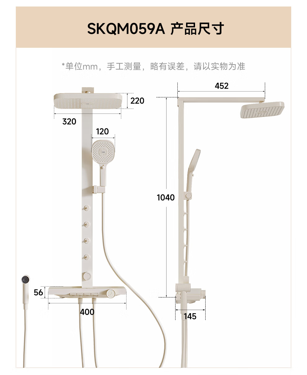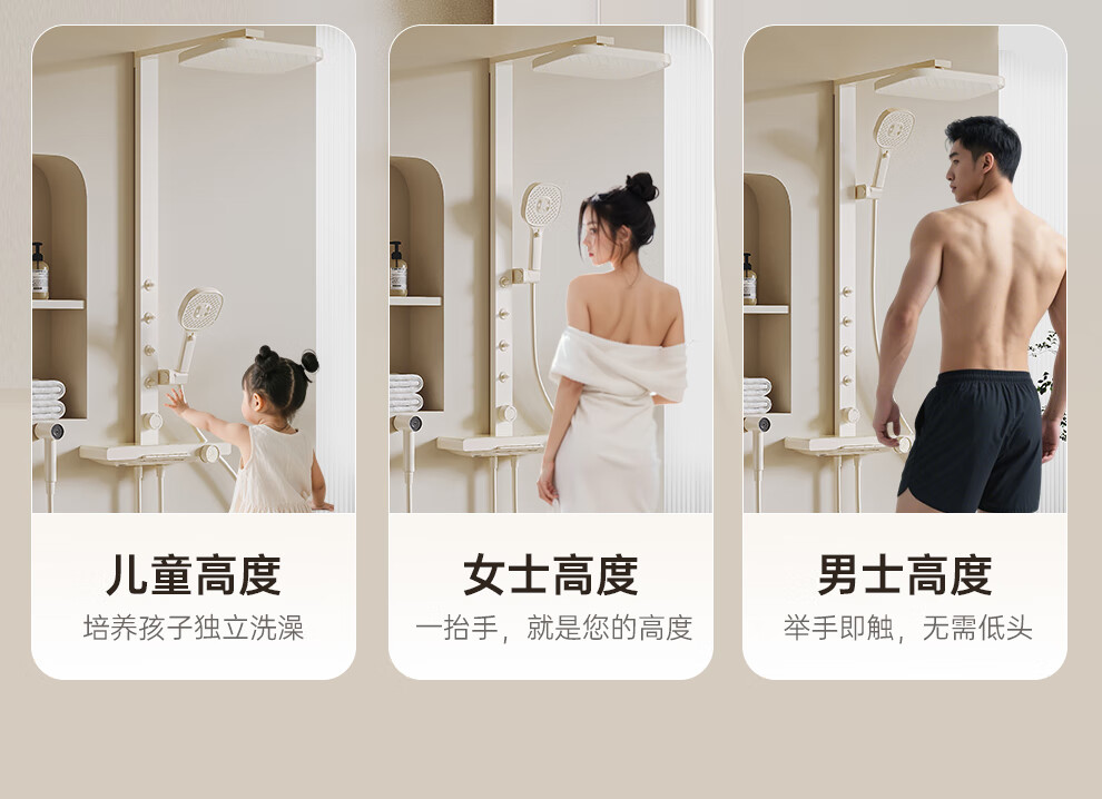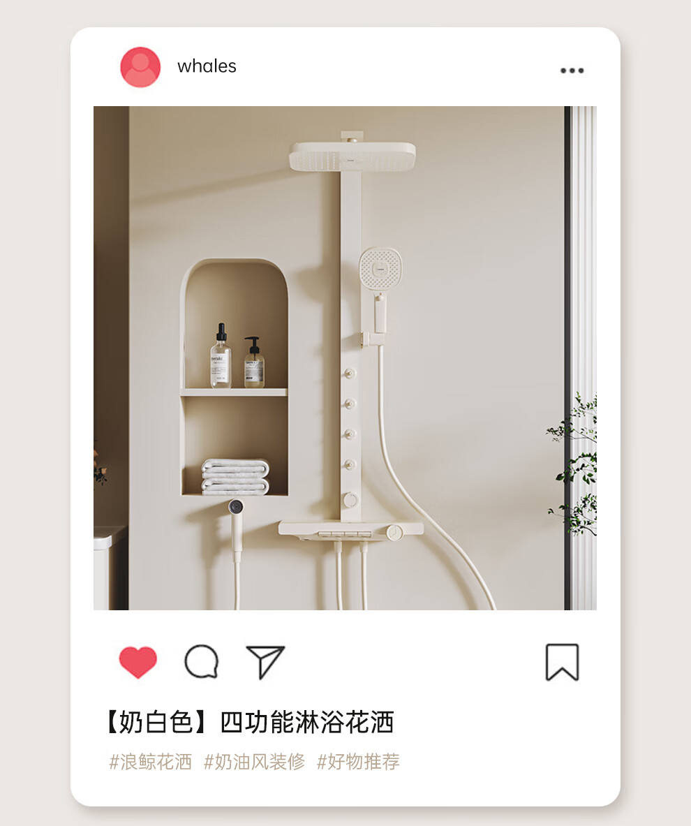 浪鲸(SSWW)卫浴淋浴花洒套装钢琴键浴室精铜冷热腰喷按摩增压喷头柔屿059 【舒压能手】奶白-背喷按摩 增压雨淋