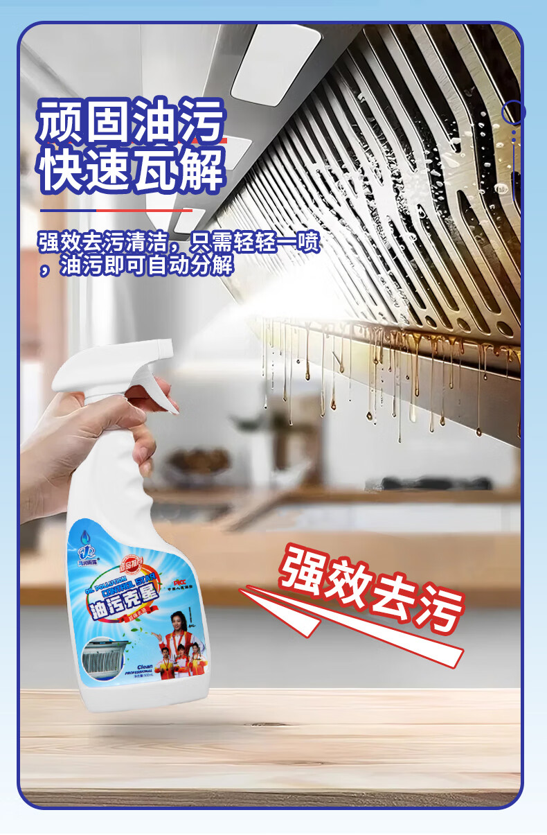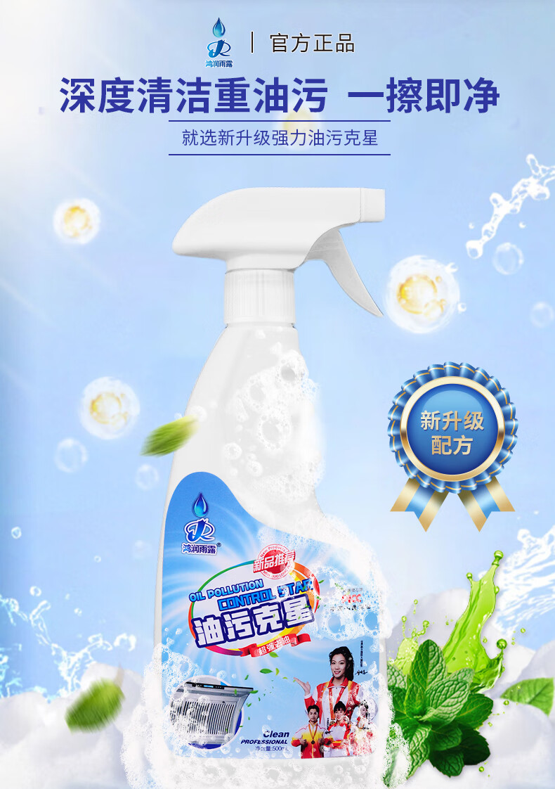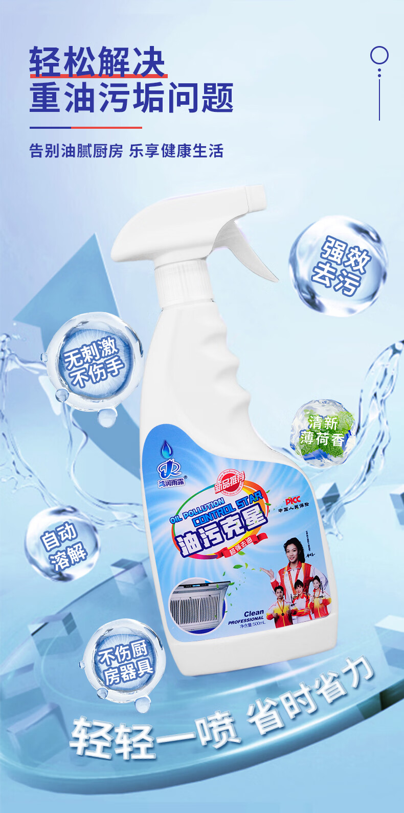 鸿润雨露油污净去重油清洁剂厨房强力家用油烟机灶台去油污清洁剂500ml 油污克星*1瓶装