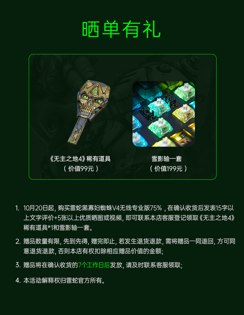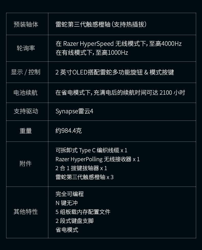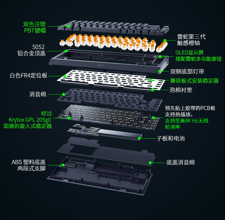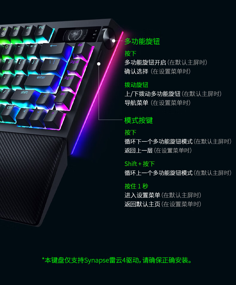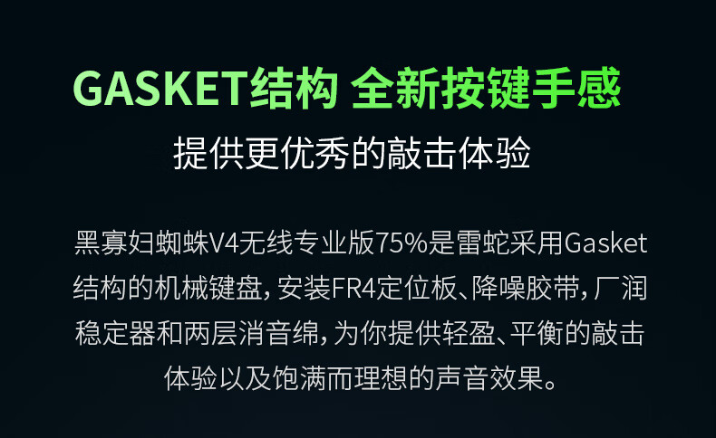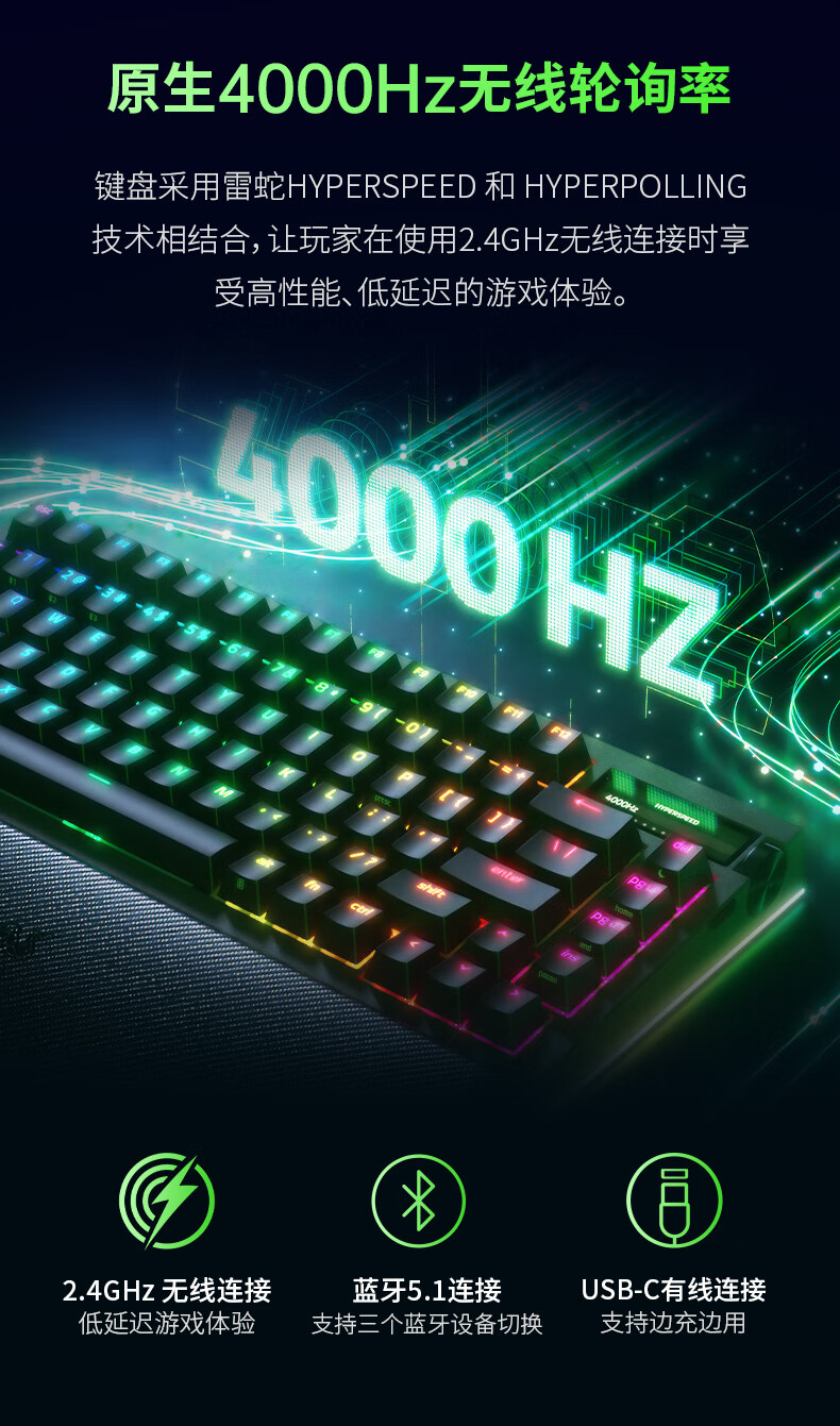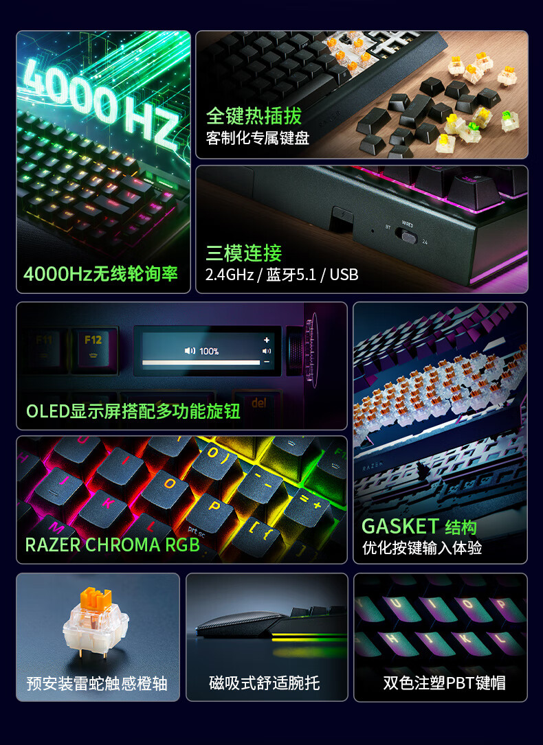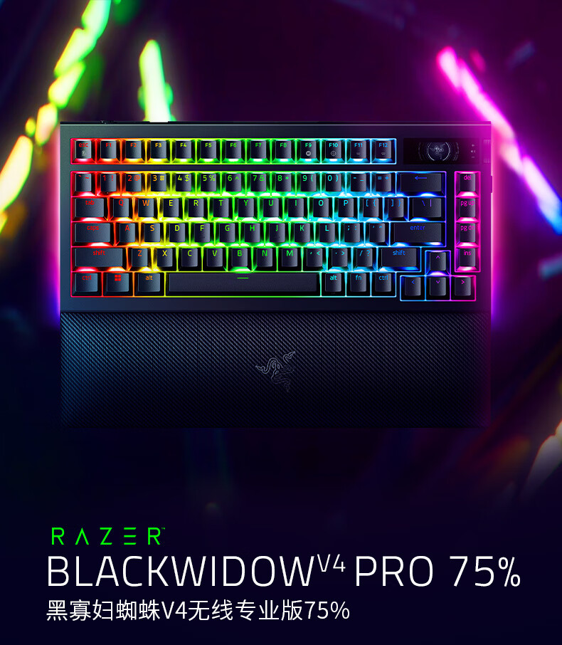 雷蛇(Razer)蛛皇 黑寡妇蜘蛛V4无线专业版75%机械游戏键盘 无线/蓝牙三模 热插拔客制化 OLED屏 GASKET结构