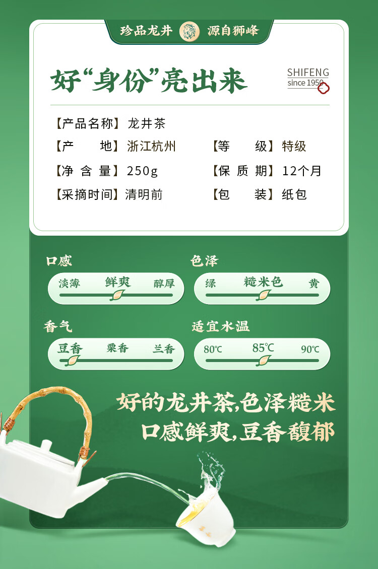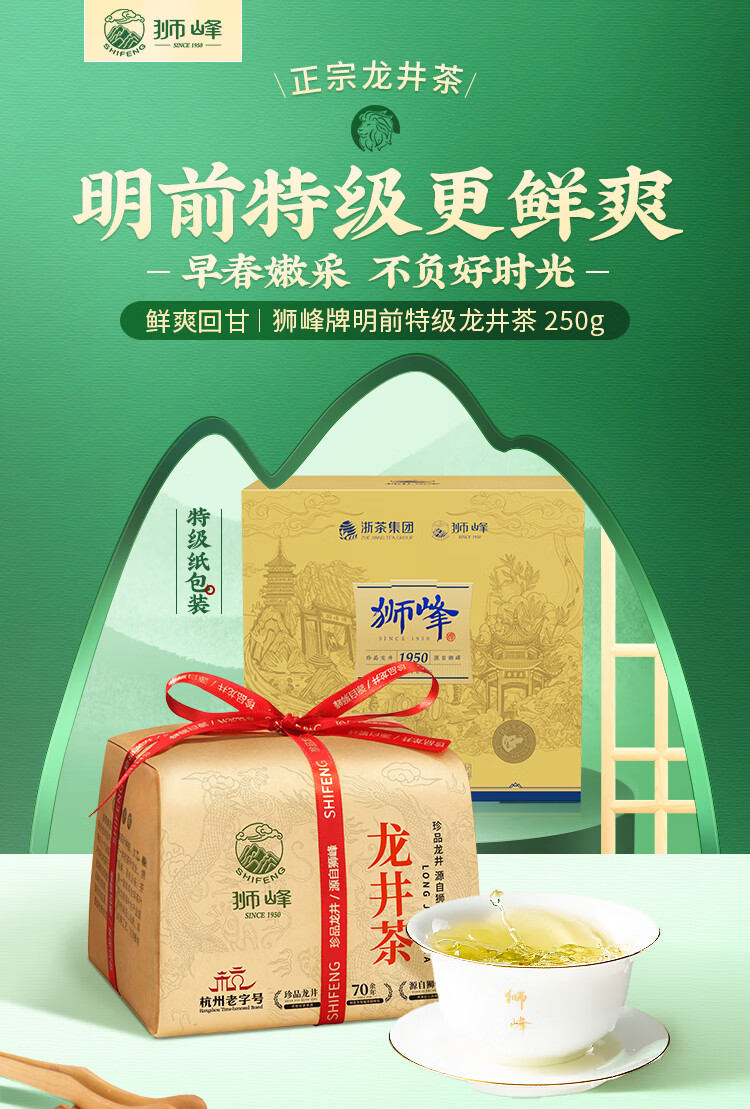 狮峰 2025新茶上市 明前龙井茶特级绿茶叶43号春茶250g