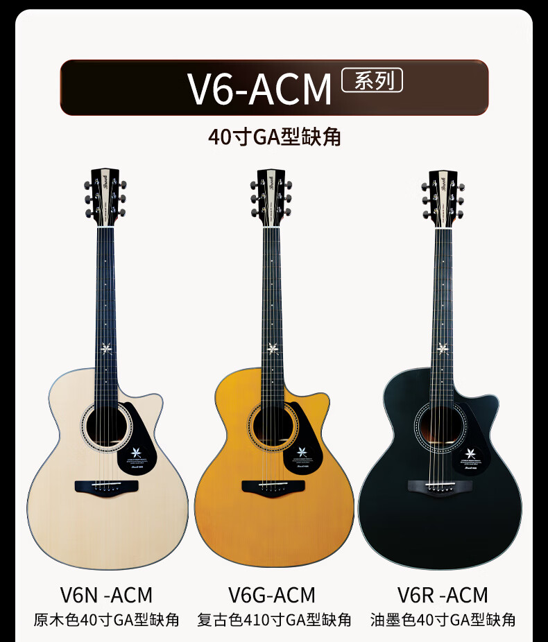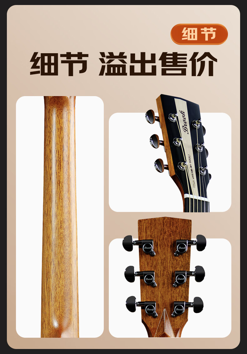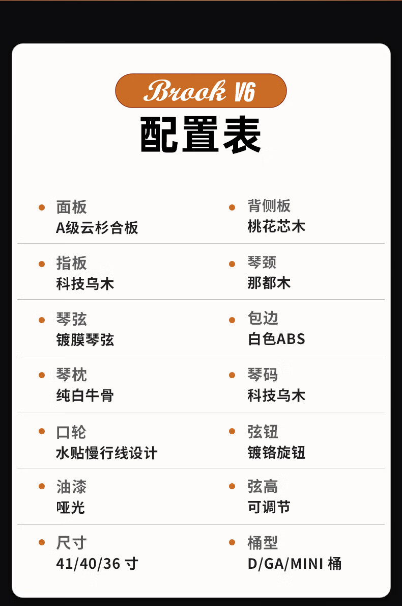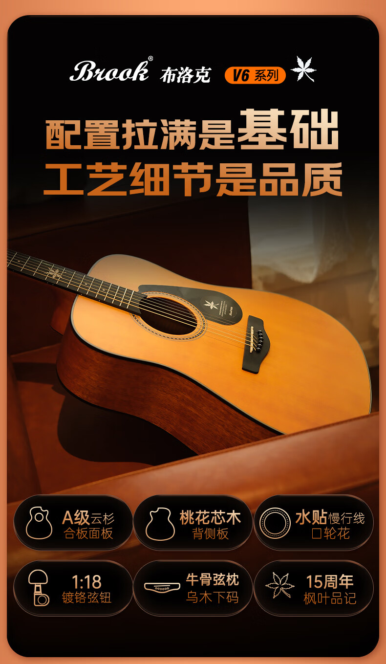 BROOK 布洛克布鲁克V6吉他初学者入门民谣合板木吉他 V6N-ACM40寸原木色【初学推荐】