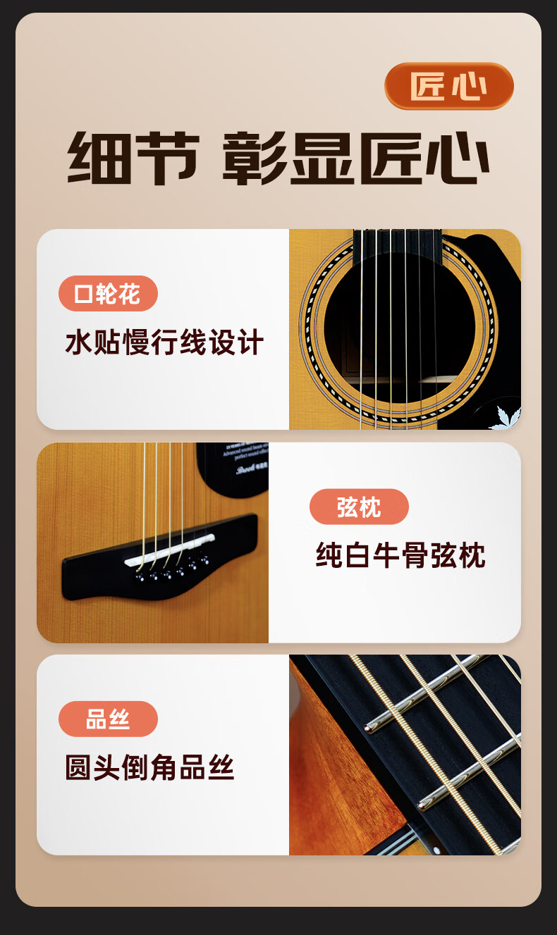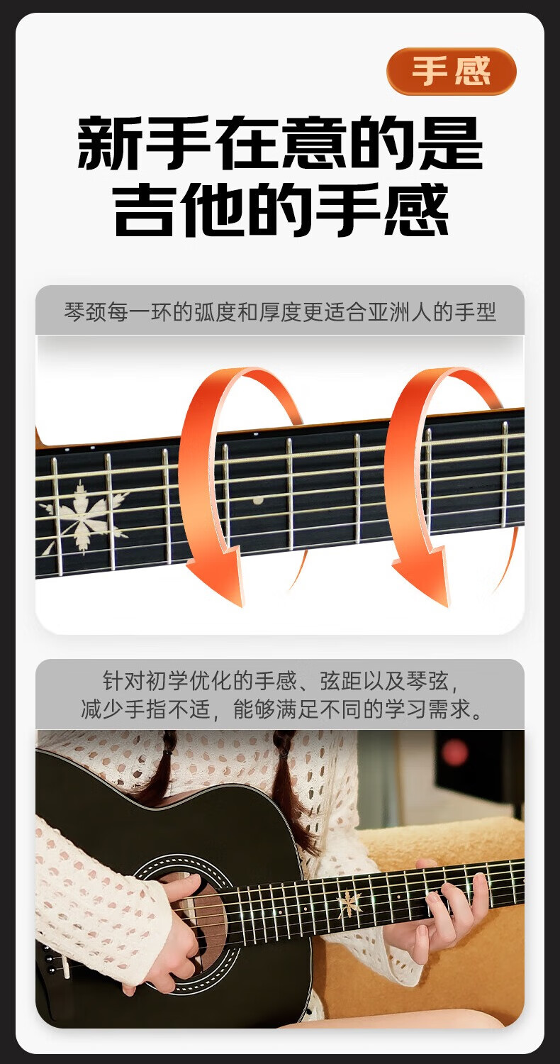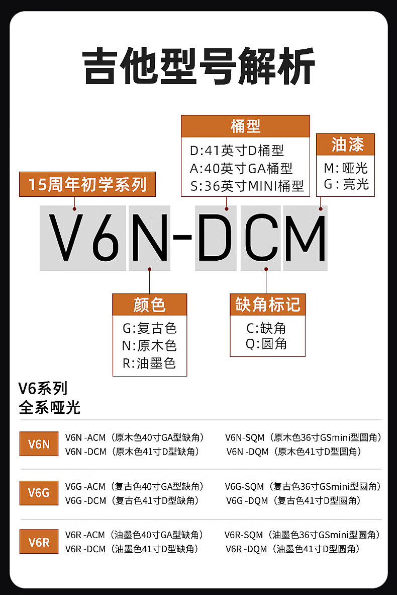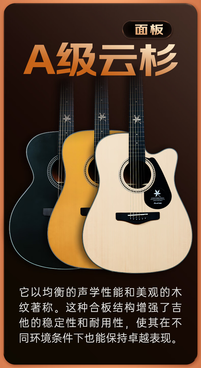 BROOK 布洛克布鲁克V6吉他初学者入门民谣合板木吉他 V6N-ACM40寸原木色【初学推荐】