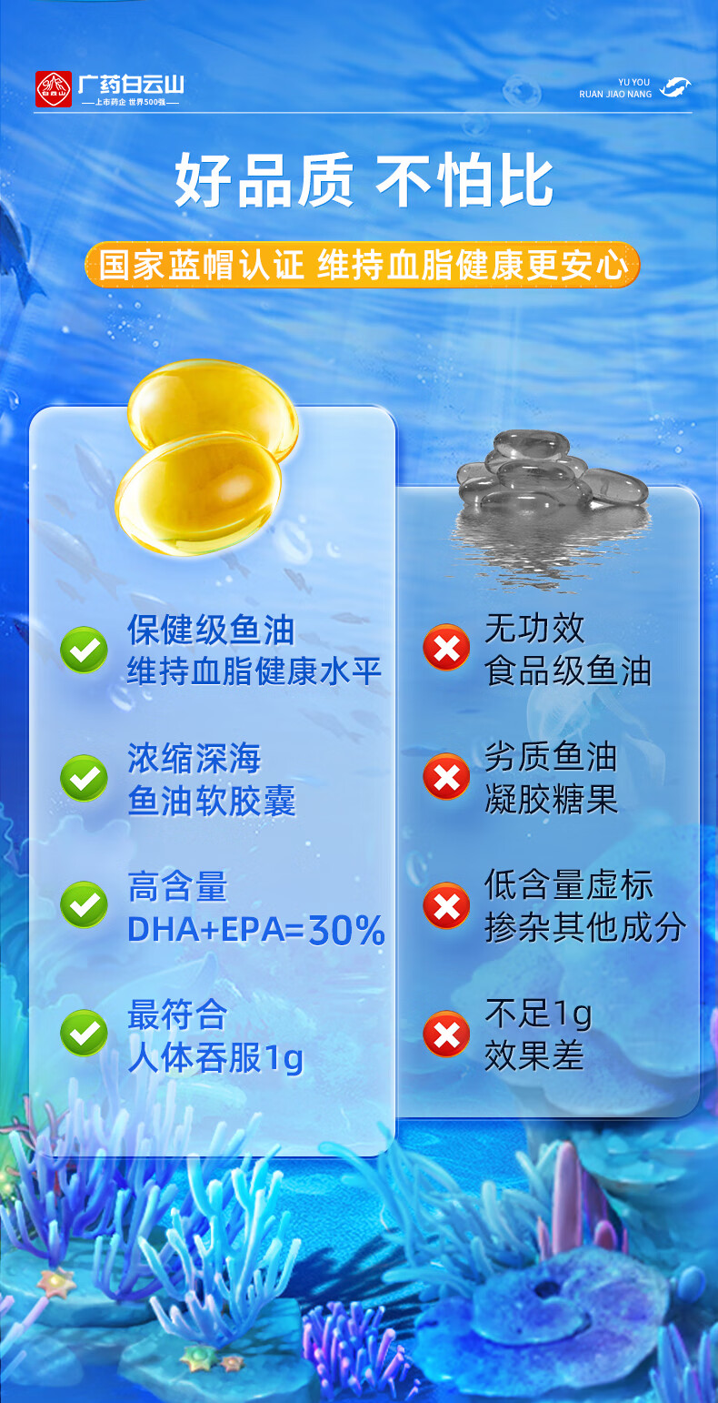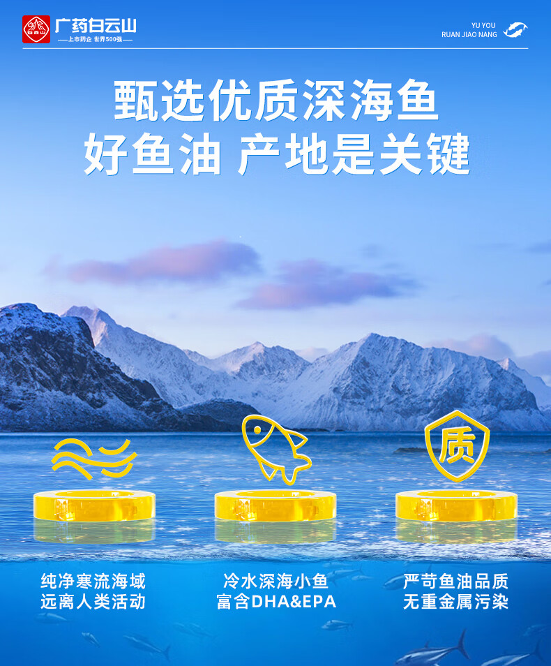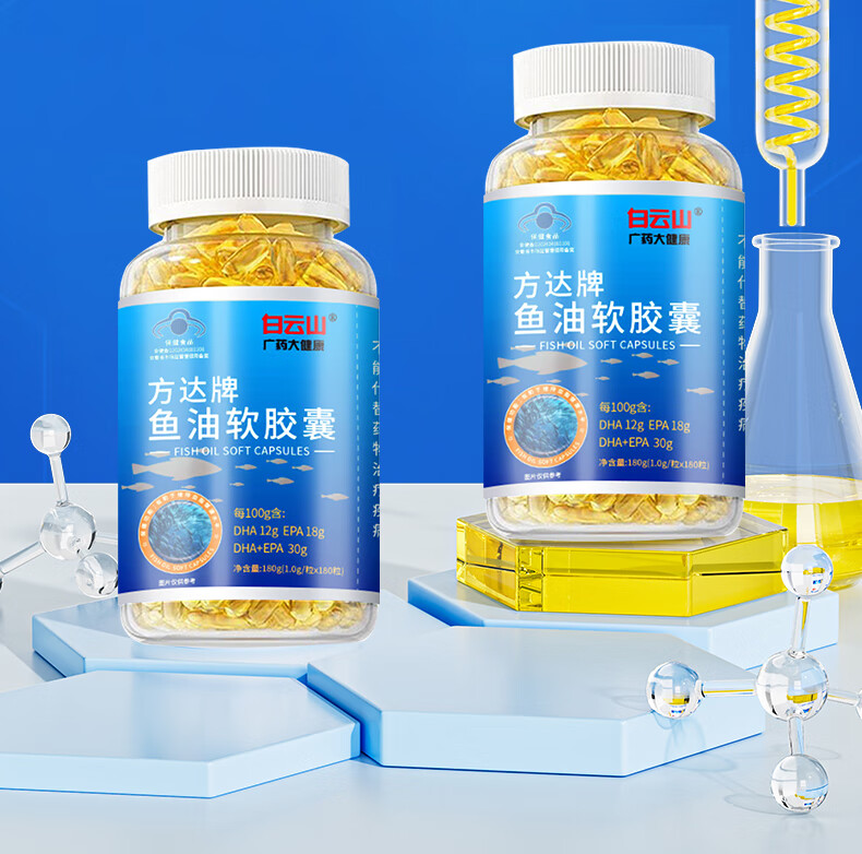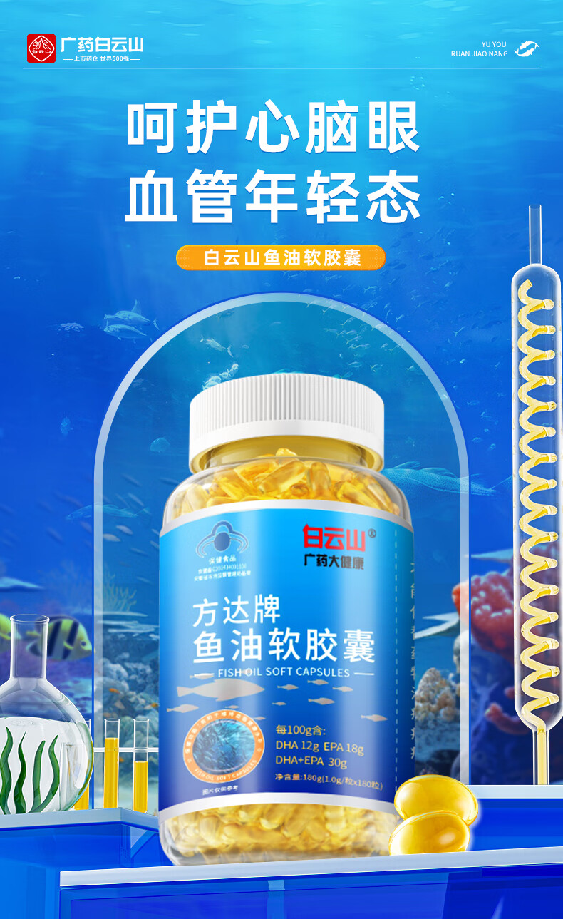 白云山鱼油 深海鱼油软胶囊 血管血脂omega-3鱼肝油中老年成人 180粒