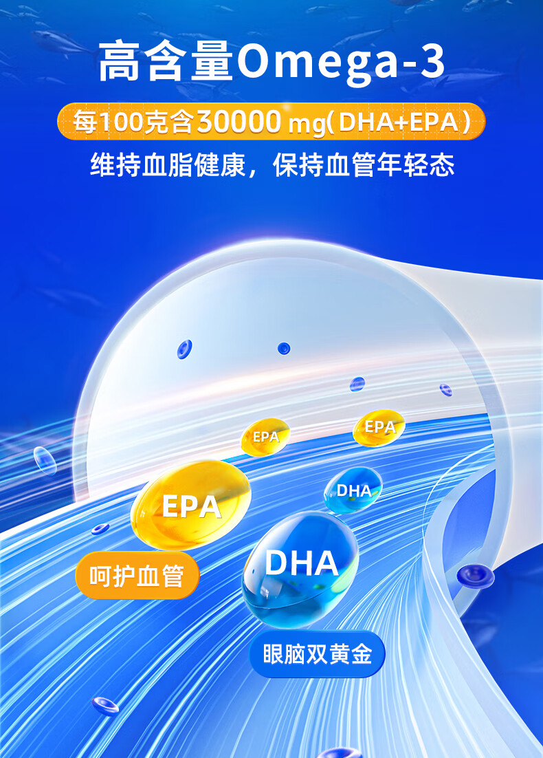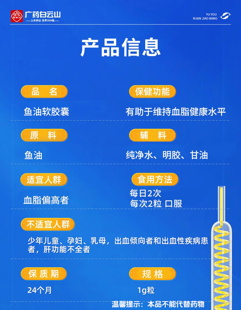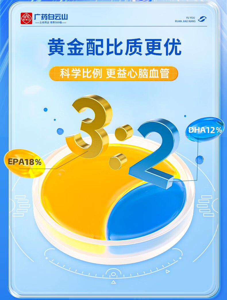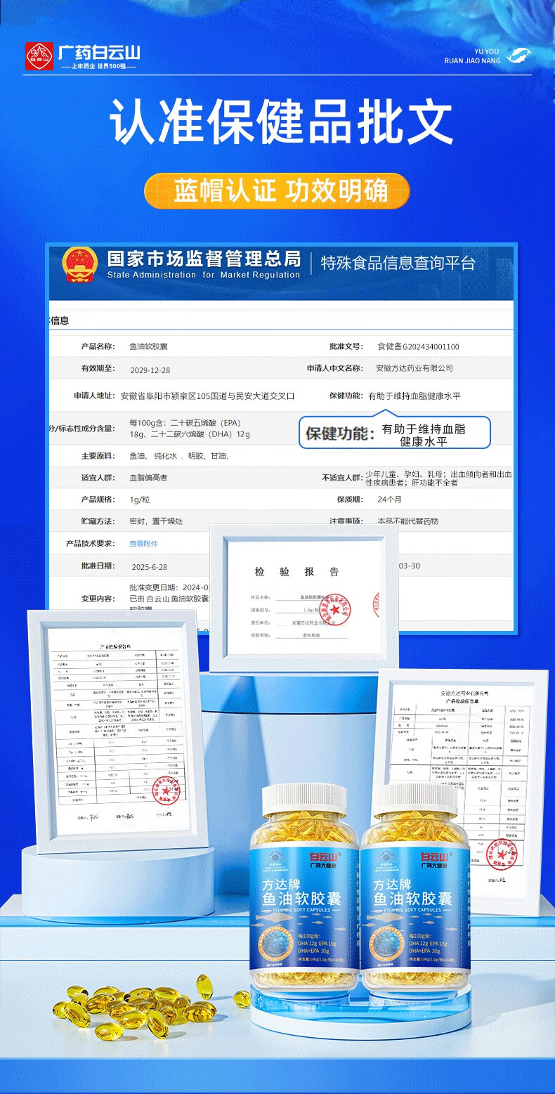 白云山鱼油 深海鱼油软胶囊 血管血脂omega-3鱼肝油中老年成人 180粒