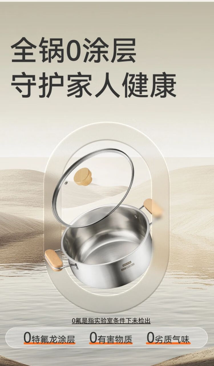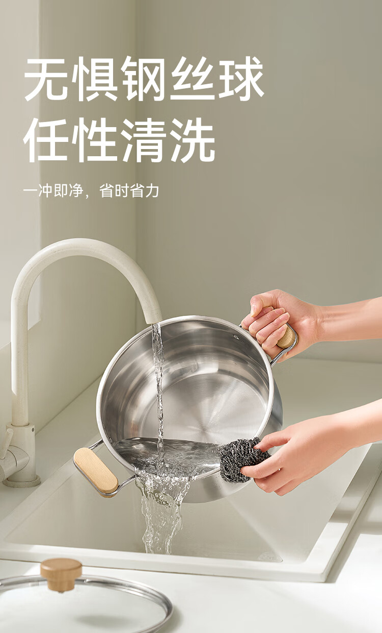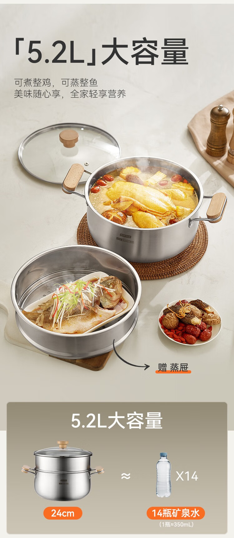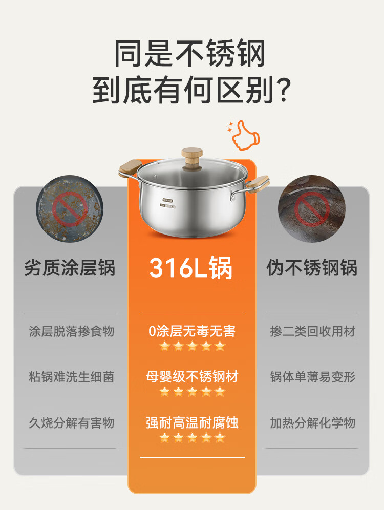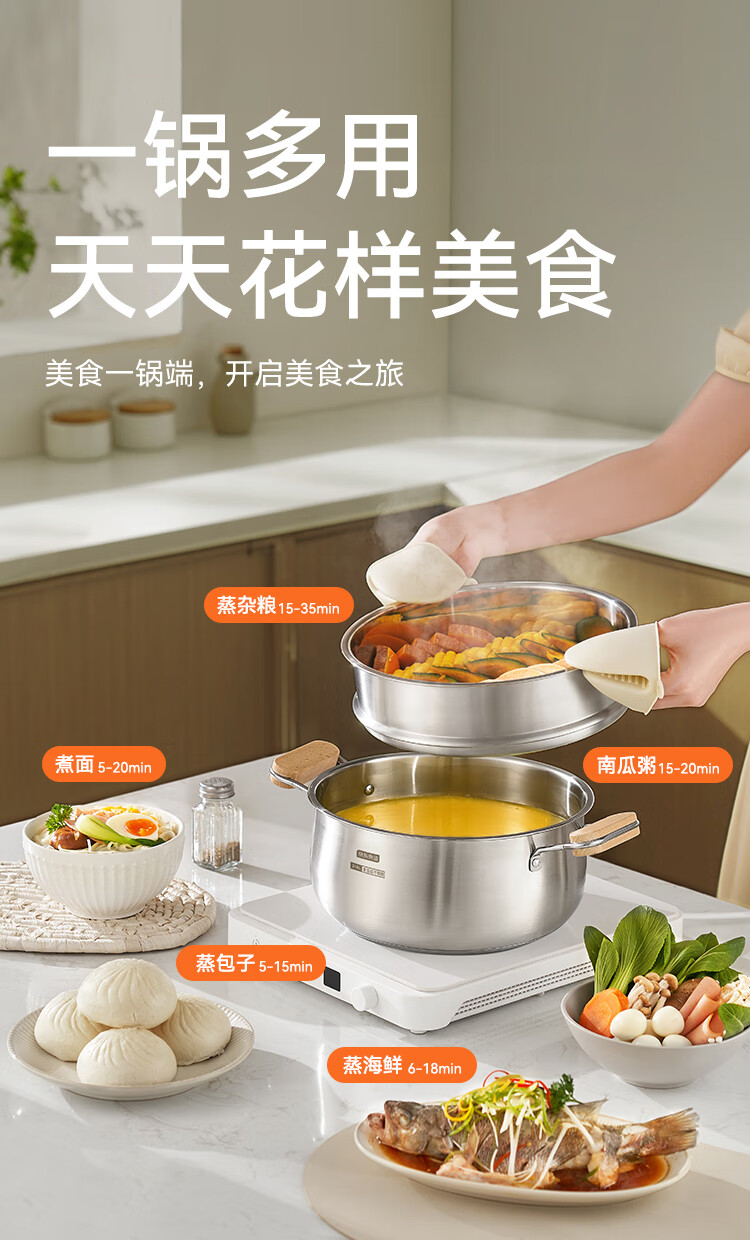 京东京造【316L不锈钢汤锅+蒸屉】无涂层家用双层多功能两用汤蒸锅24cm