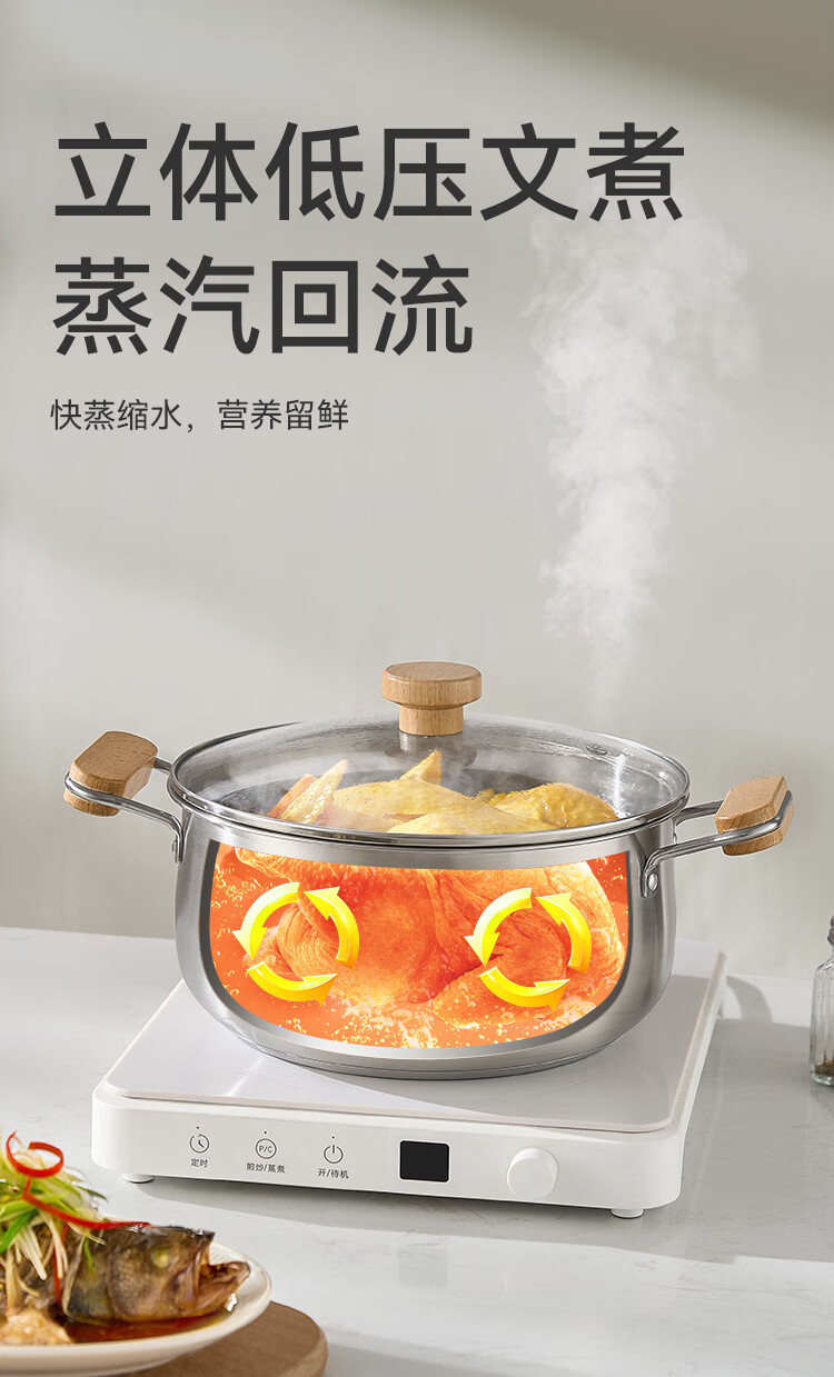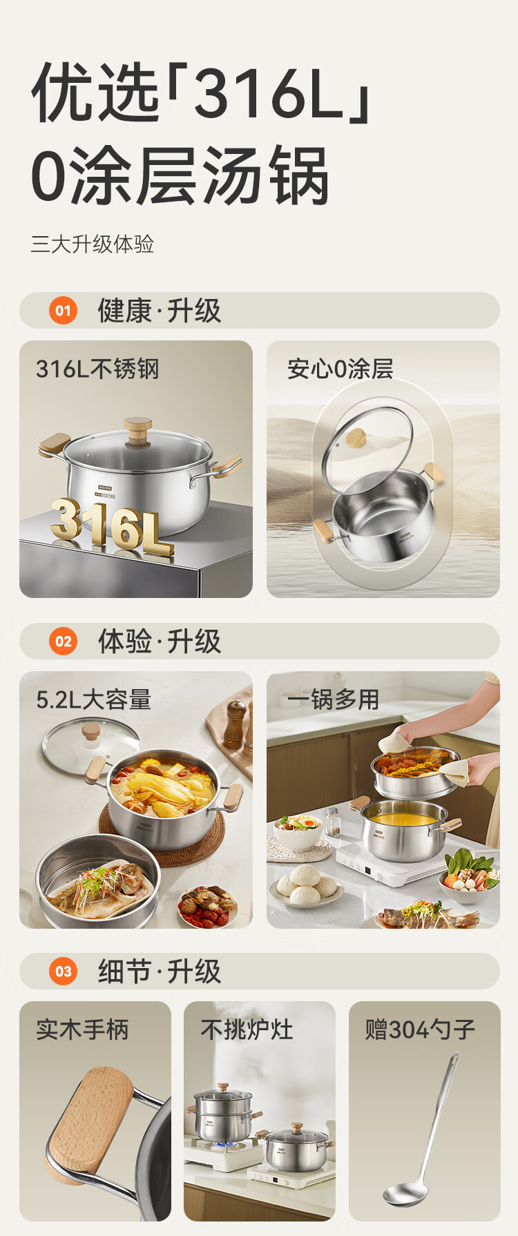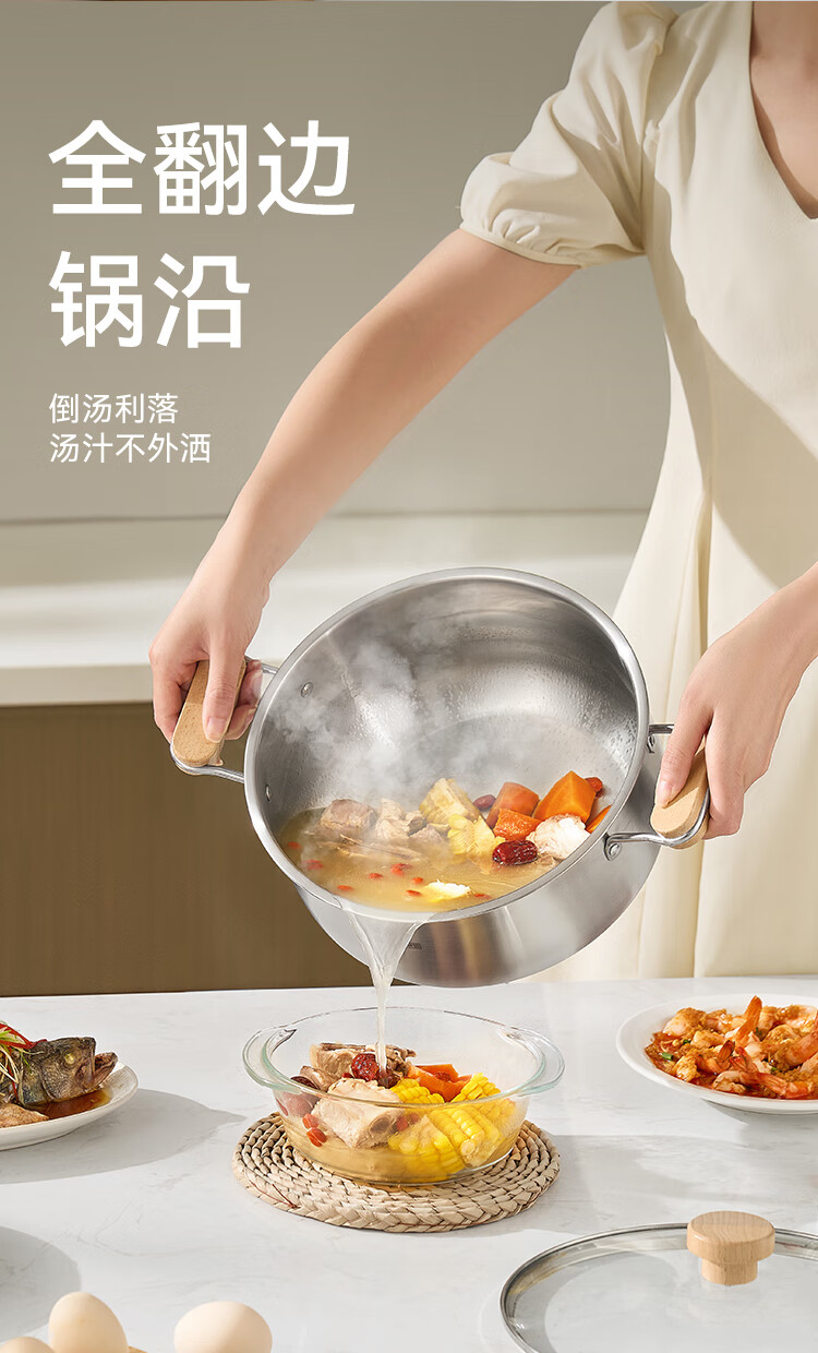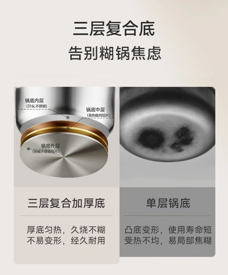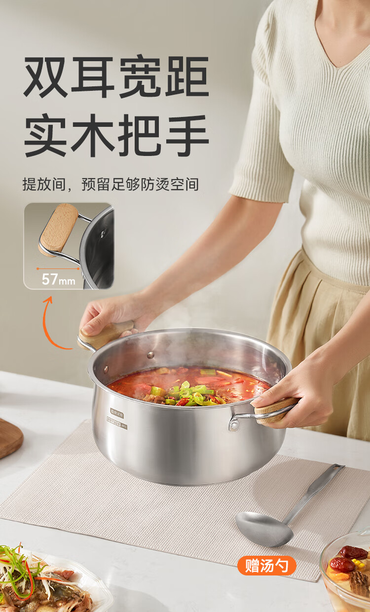京东京造【316L不锈钢汤锅+蒸屉】无涂层家用双层多功能两用汤蒸锅24cm