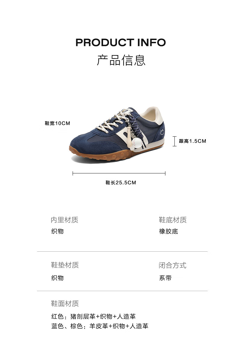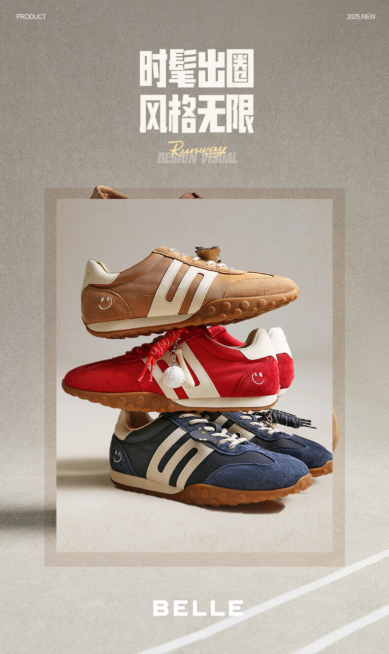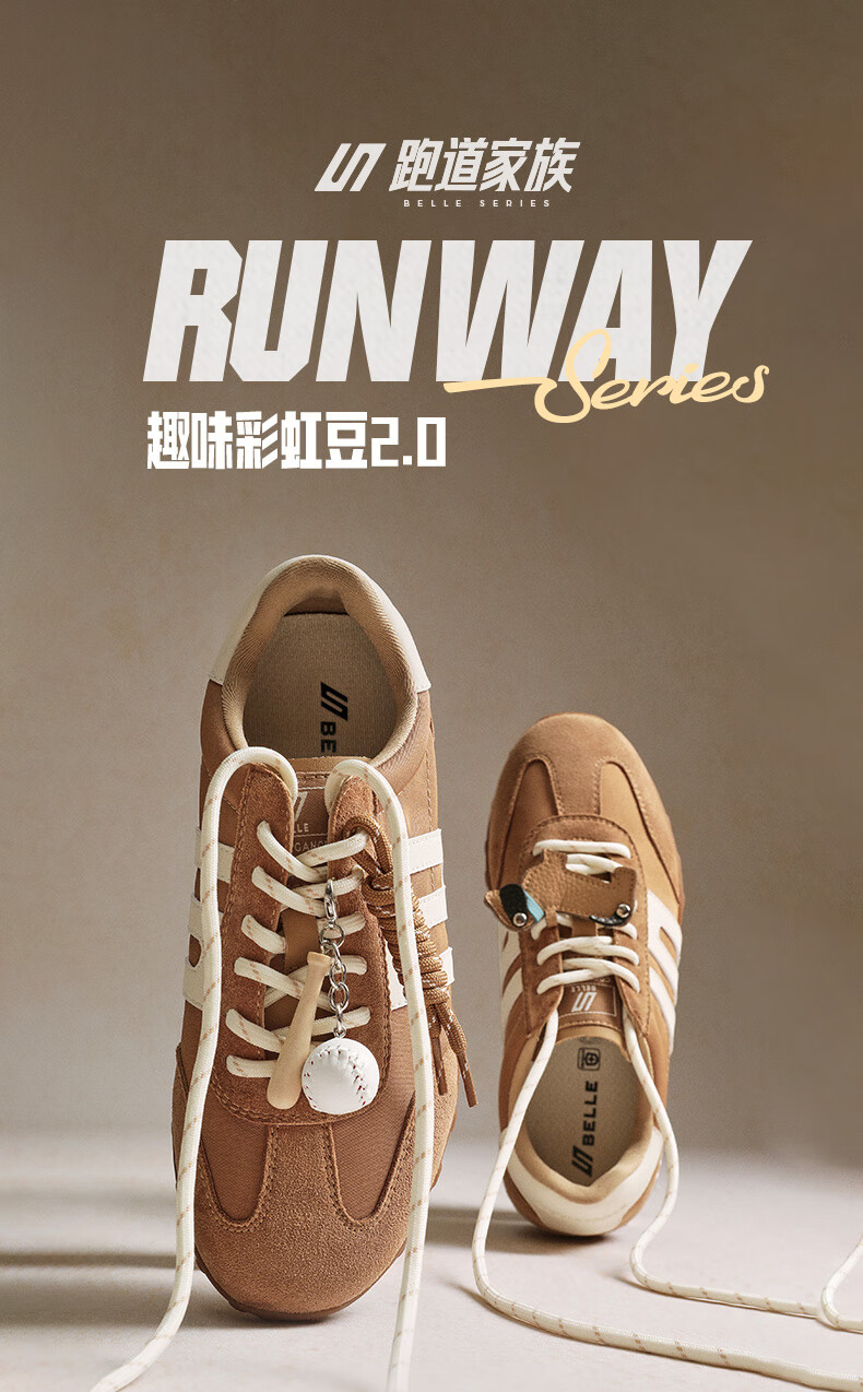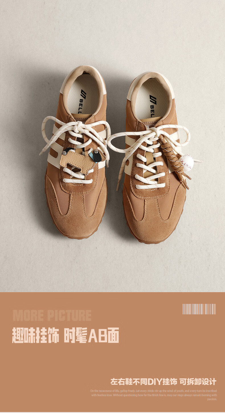 百丽(Belle)张凌赫同款女鞋彩虹豆德训鞋跑道阿甘鞋新款休闲鞋D5R2DAM6预售 棕色 37