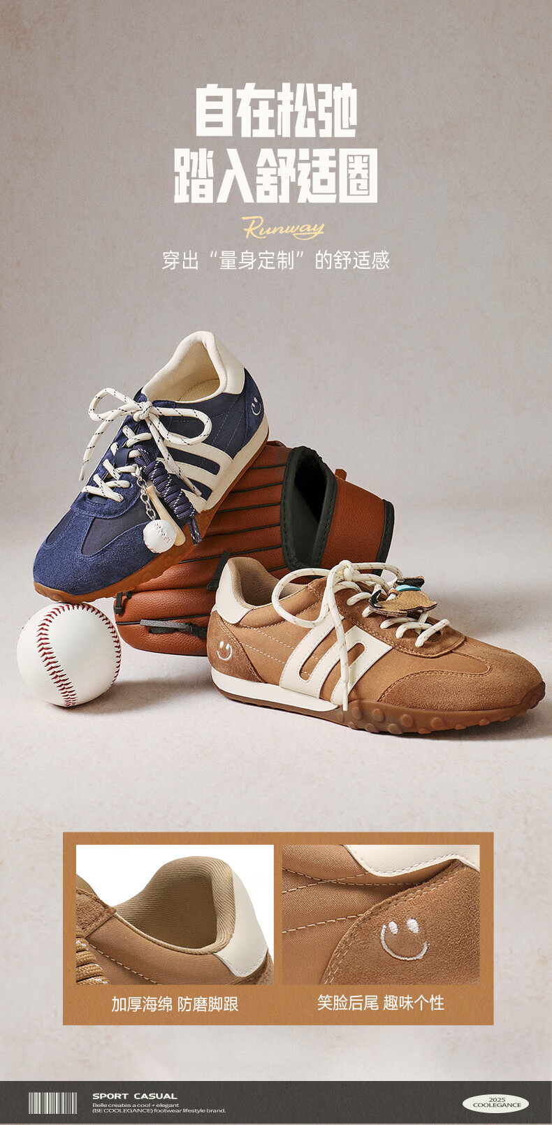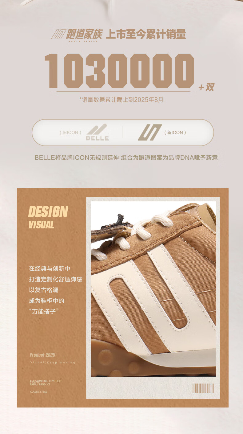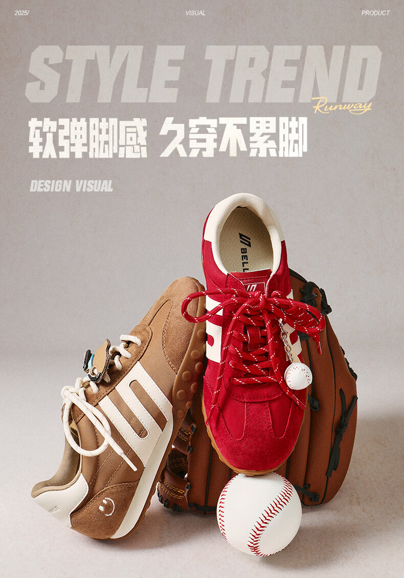 百丽(Belle)张凌赫同款女鞋彩虹豆德训鞋跑道阿甘鞋新款休闲鞋D5R2DAM6预售 棕色 37