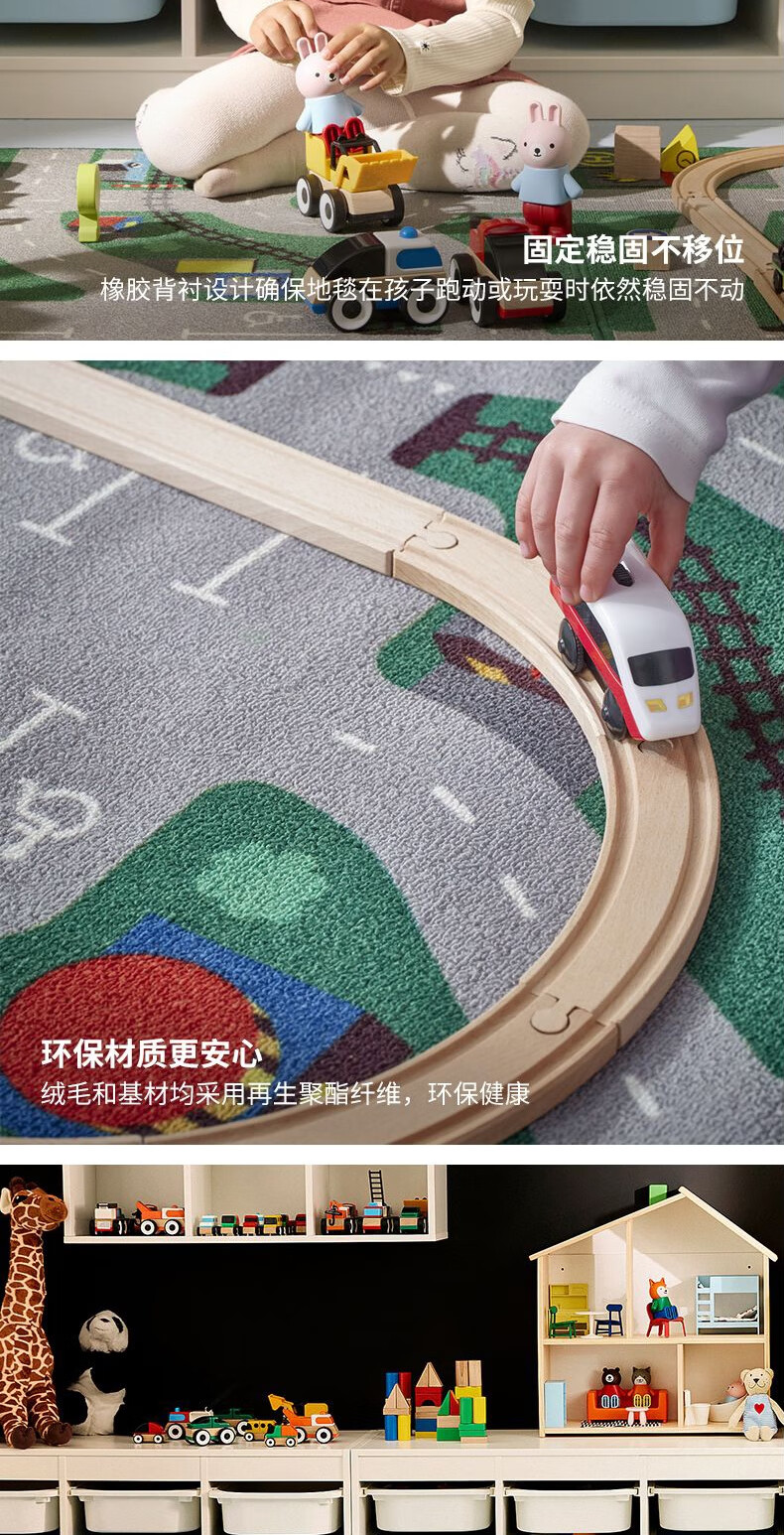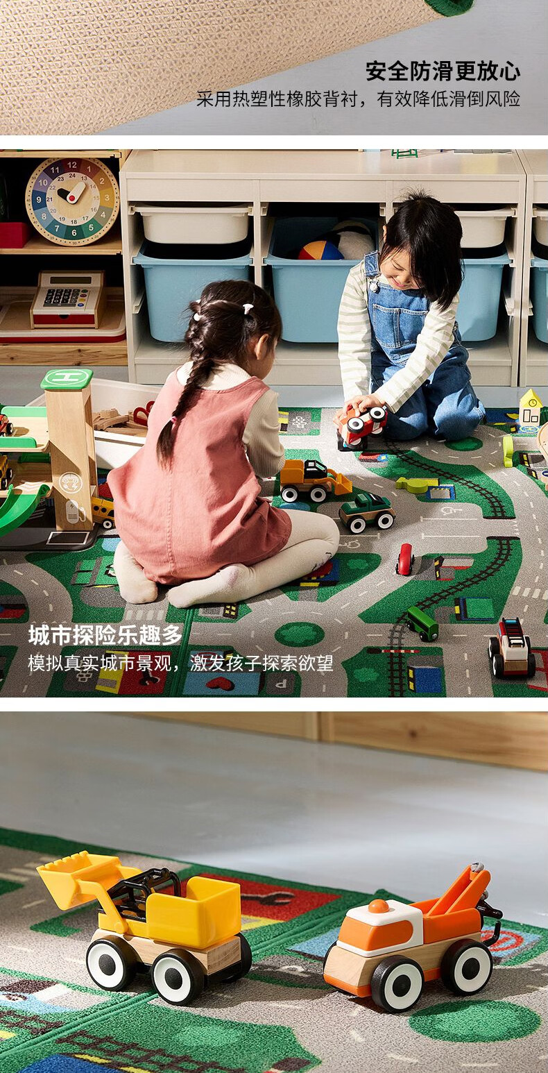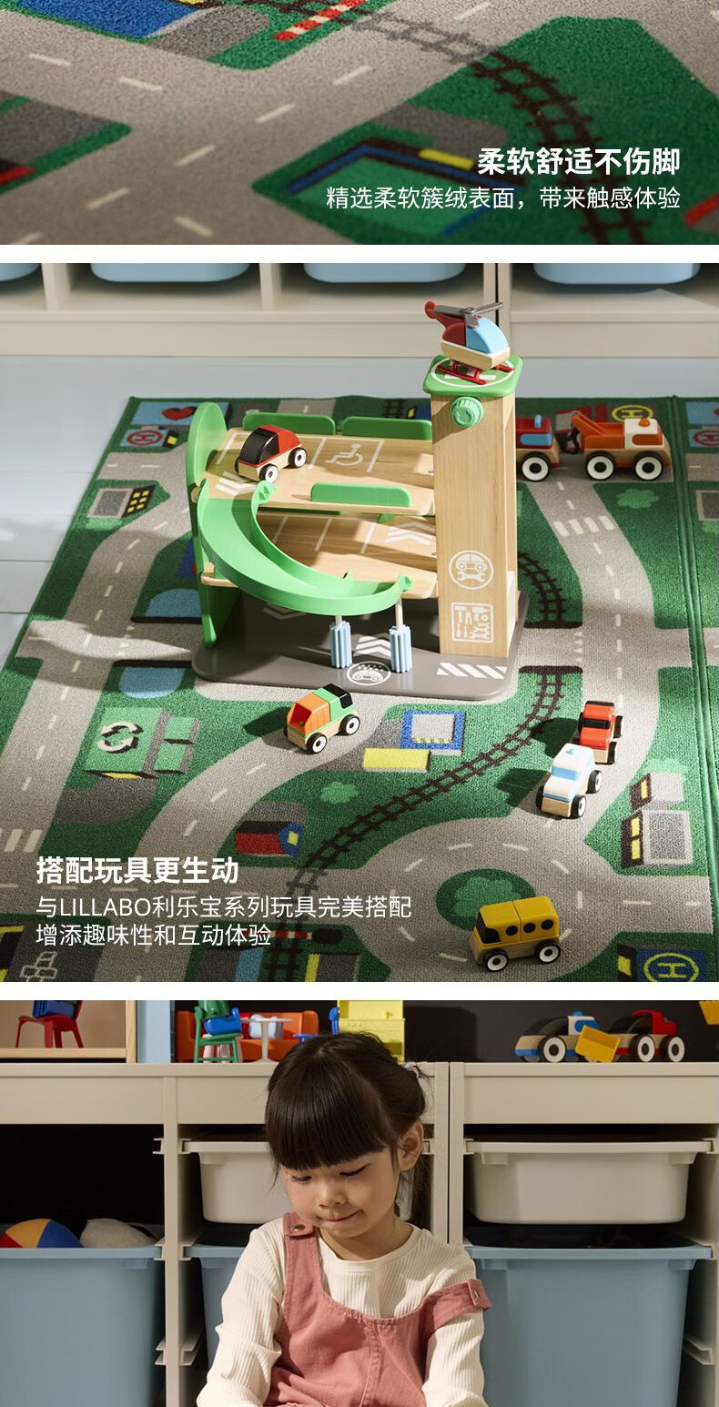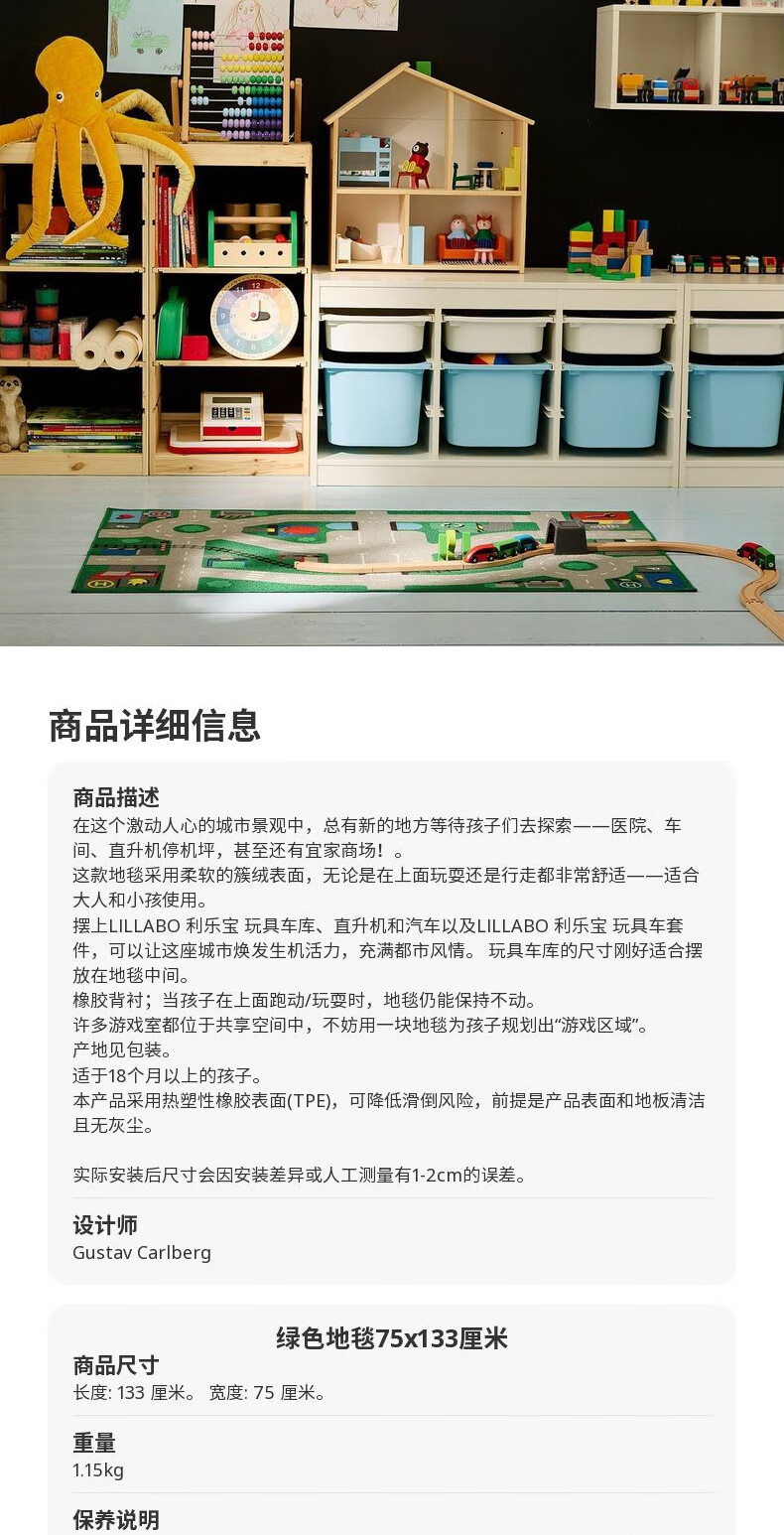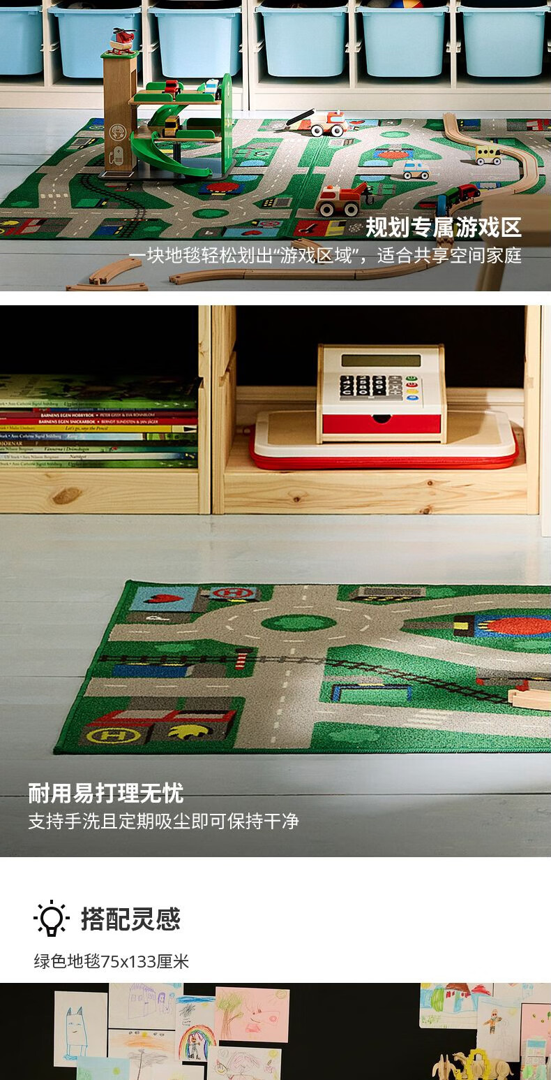 宜家(IKEA)【新品】LILLABO利乐宝地毯地垫停车场儿童爬行游戏交通 绿色地毯75x133cm
