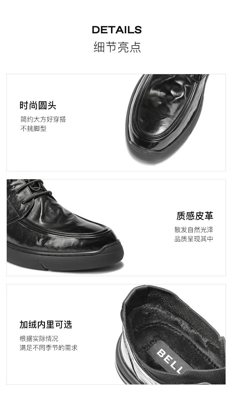 百丽(Belle)男鞋高帮加绒休闲皮鞋2025冬季新商场同款真牛皮商务短靴8VW01DD5 黑单里 38 (240mm)