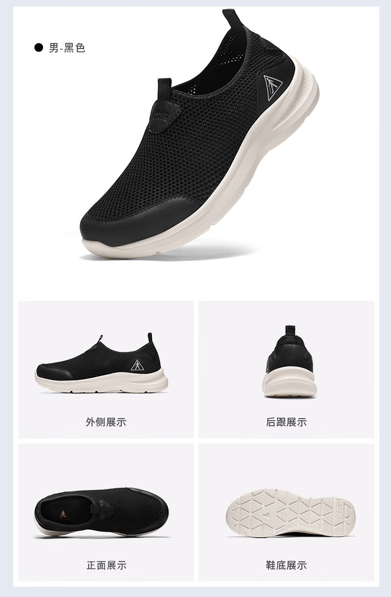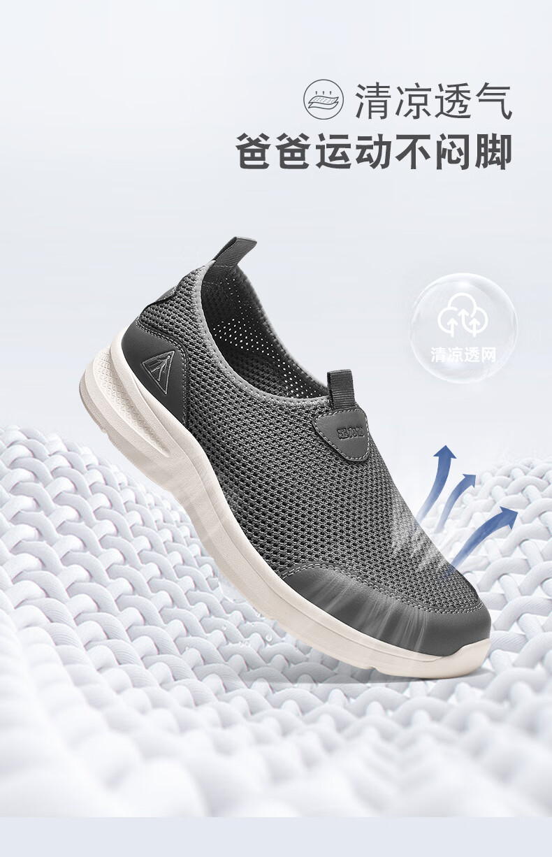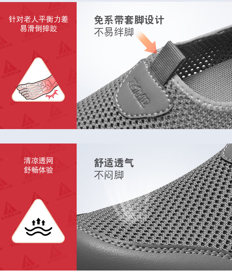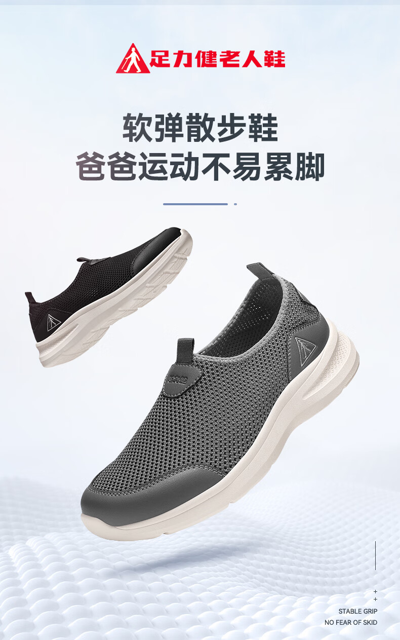 足力健正品老人鞋轻便软底防滑鞋飞织鞋网面舒适一脚蹬送长辈男士休闲鞋 黑色 39