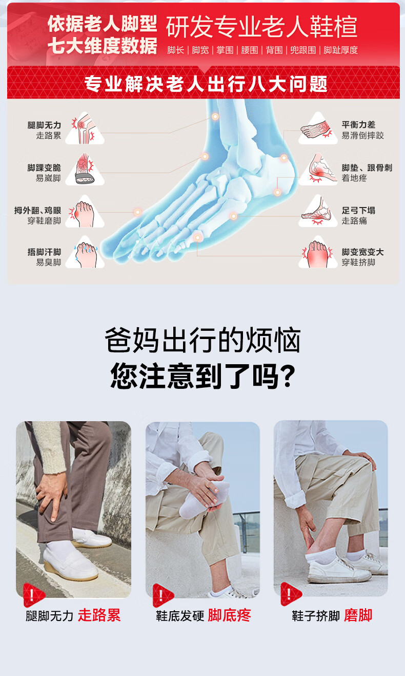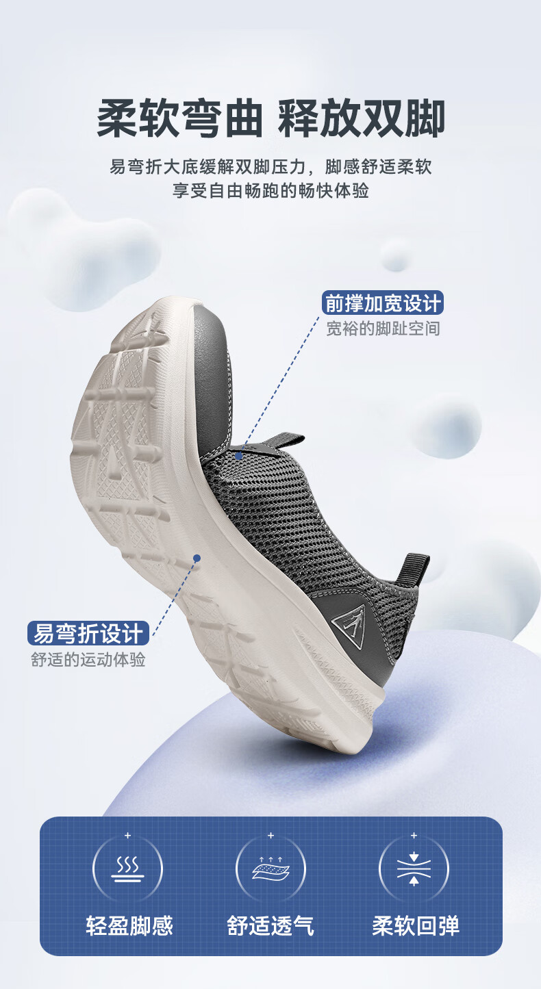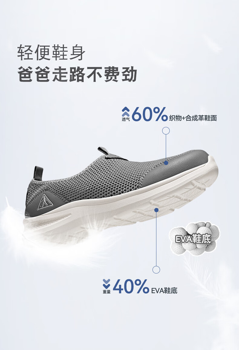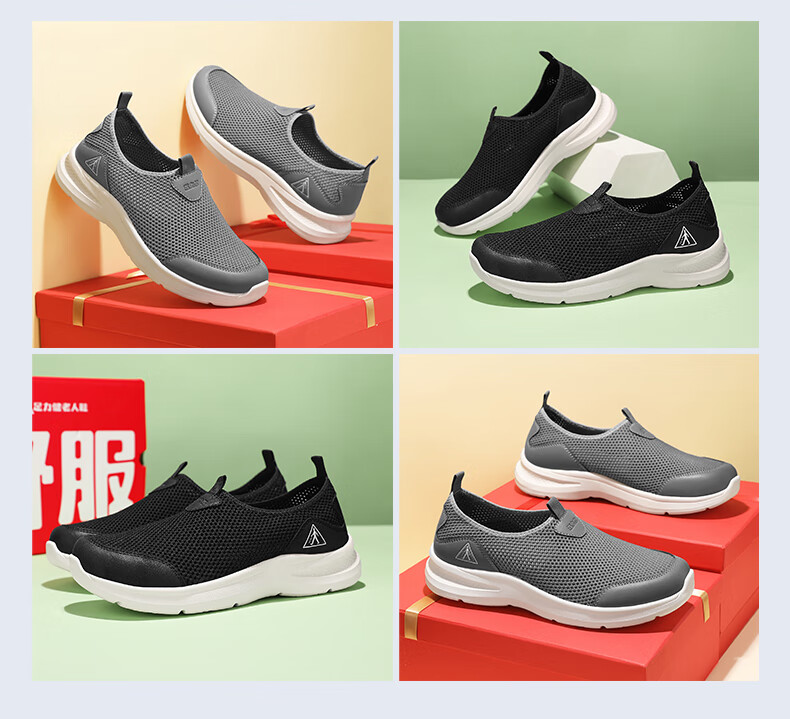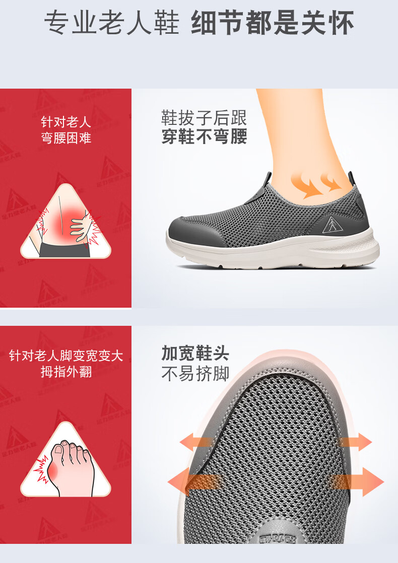 足力健正品老人鞋轻便软底防滑鞋飞织鞋网面舒适一脚蹬送长辈男士休闲鞋 黑色 39