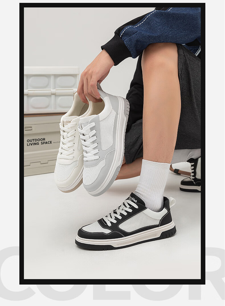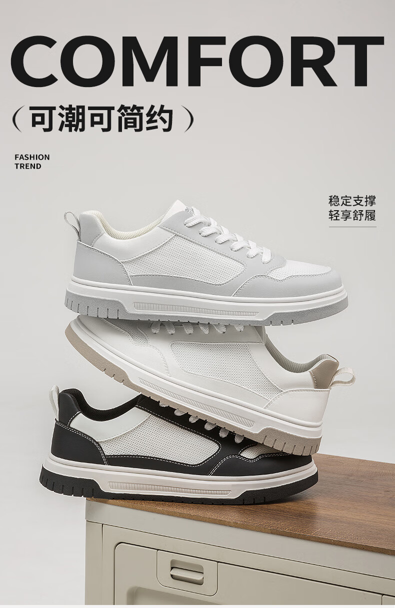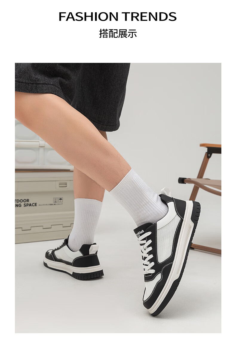 大东板鞋男鞋2025年秋季新款时尚舒适圆头透气休闲鞋0132 白黑色 39