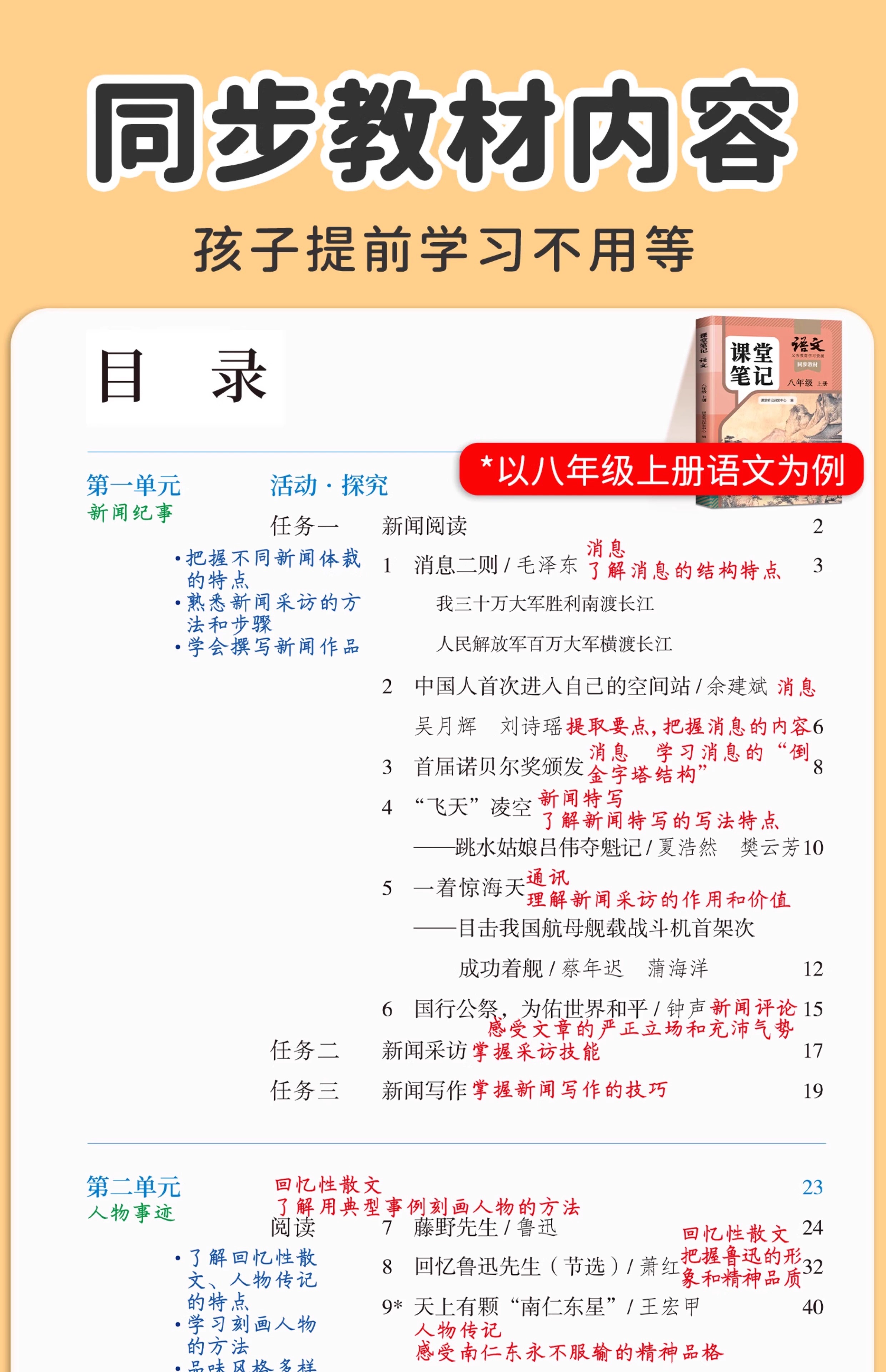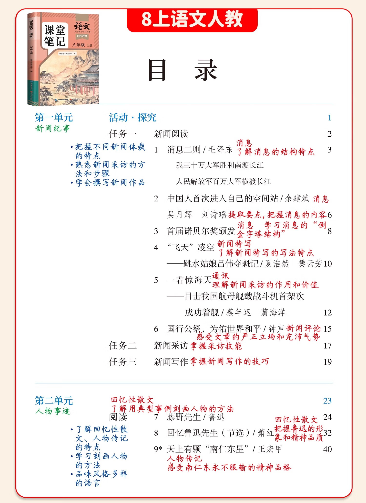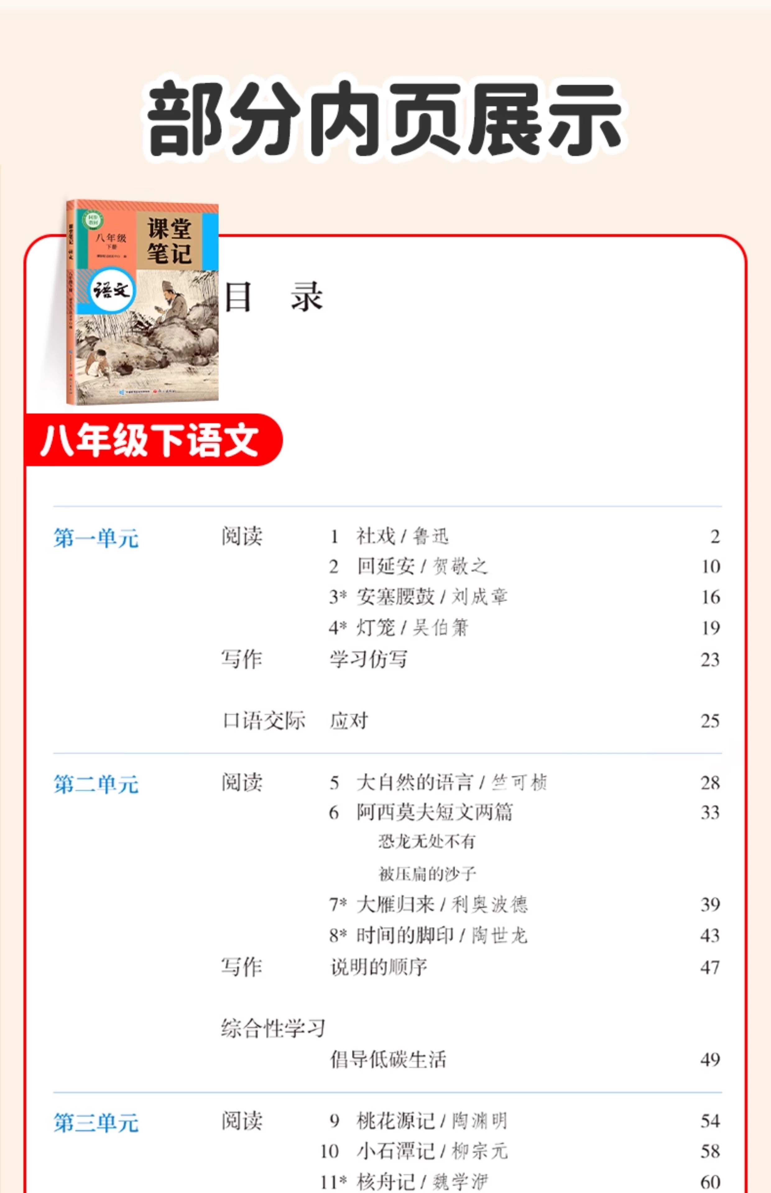 斗半匠语文课堂笔记八年级上册人教版初二同步教材初中学霸随堂笔记初中二年级课堂笔记语文预习复习辅导书