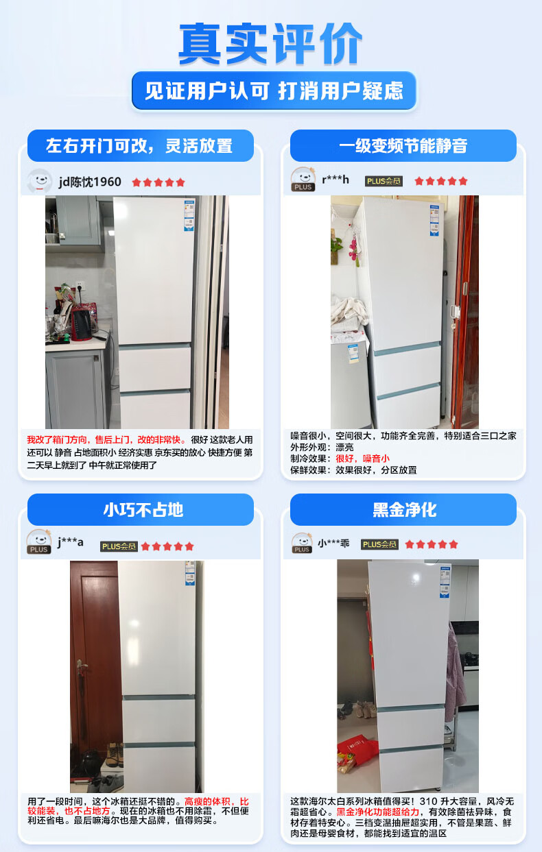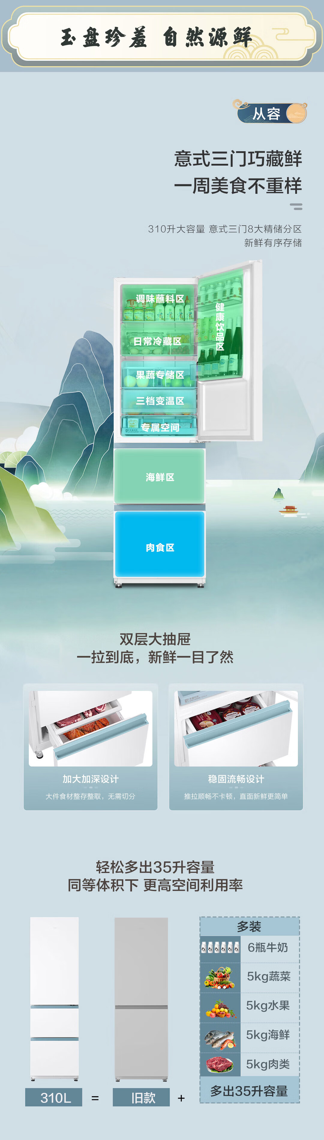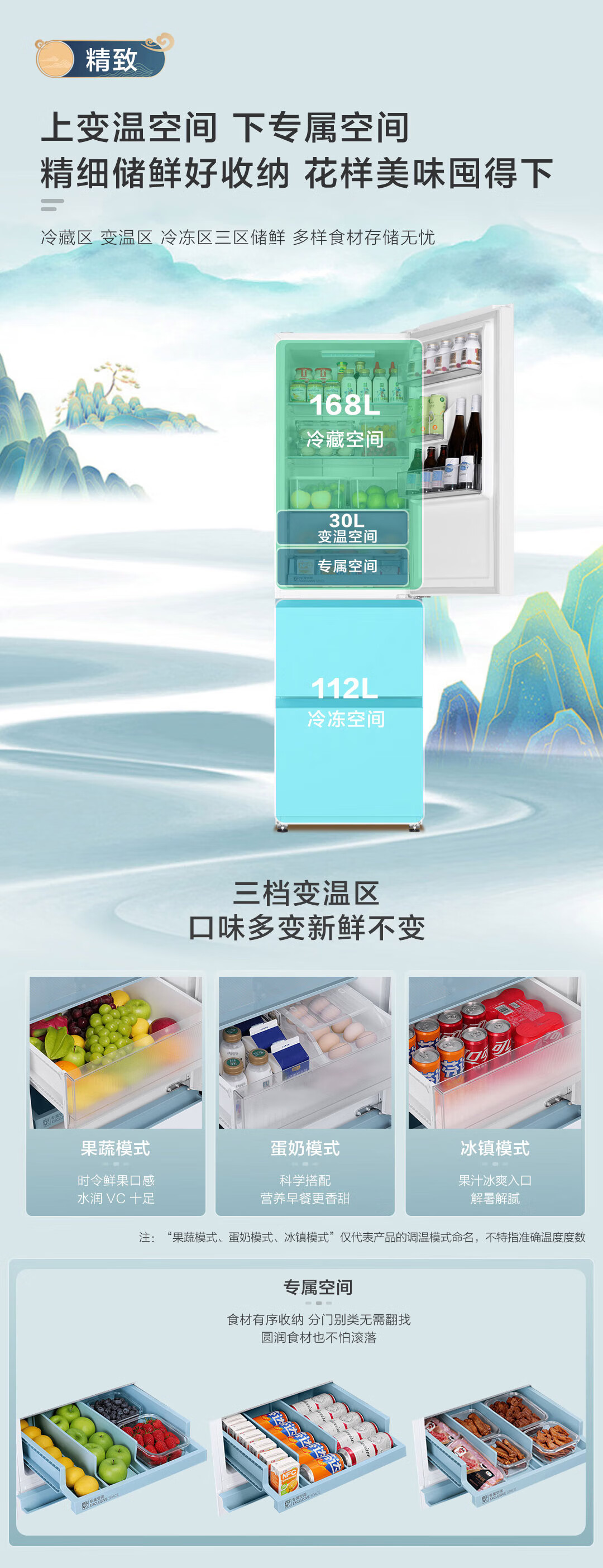 海尔(Haier)国家补贴20%太白310升风冷无霜黑金净化三档变温抽屉式三开门家用电冰箱一级能效节能变温以旧换新 【咨询领补贴】BCD-310WGHD3E7WV