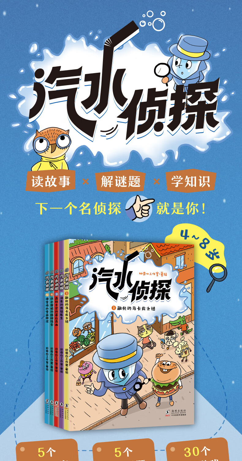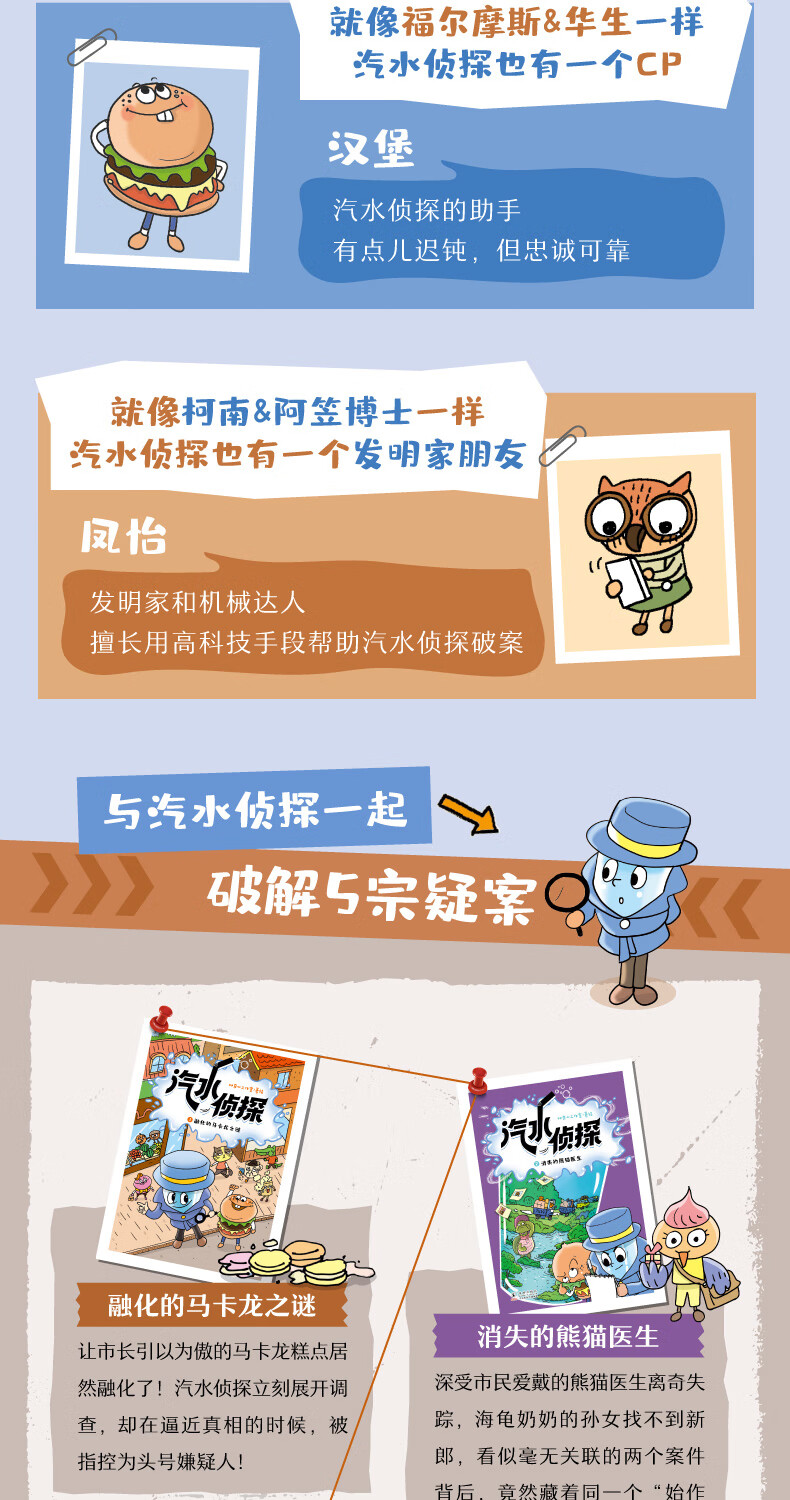 新东方旗舰店 汽水侦探(全5册)5个谜案 4-8岁孩子侦探故事绘本书 少儿趣味科普 锻炼观察力和逻辑推理能力儿童文学 汽水侦探(全5册)