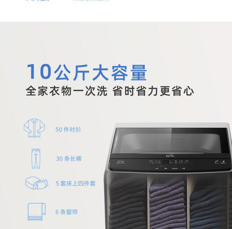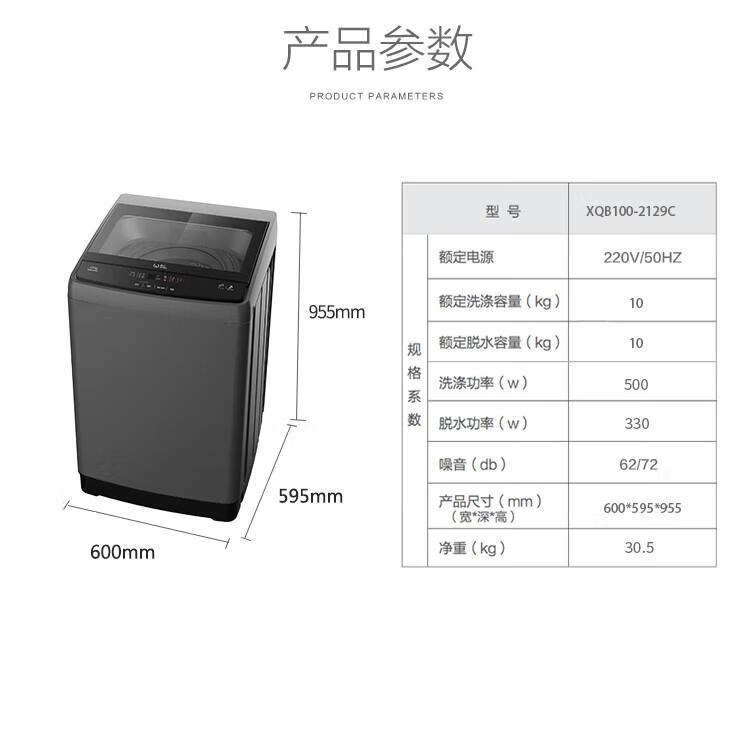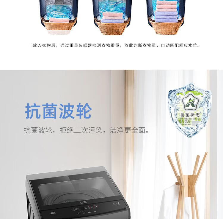 威力(WEILI)【威力】双动力防缠绕10公斤全自动波轮洗衣机智能量衣进水手搓洗桶自洁XQB100-2129C XQB100-2129C